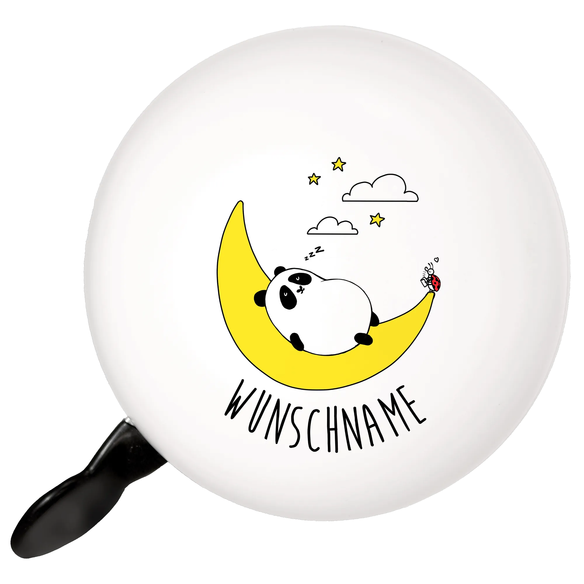 Die personalisierte Fahrradklingel "Easy & Peasy Take it Easy" von Mr. & Mrs. Panda ist das perfekte Geschenk für alle Radfans und Fahrradliebhaber! Mit ihrem strahlenden Druck und dem niedlichen Design mit einem schlafenden Panda auf einer Mondsichel bringt sie nicht nur Freude, sondern auch etwas Persönlichkeit auf dein Fahrrad.
