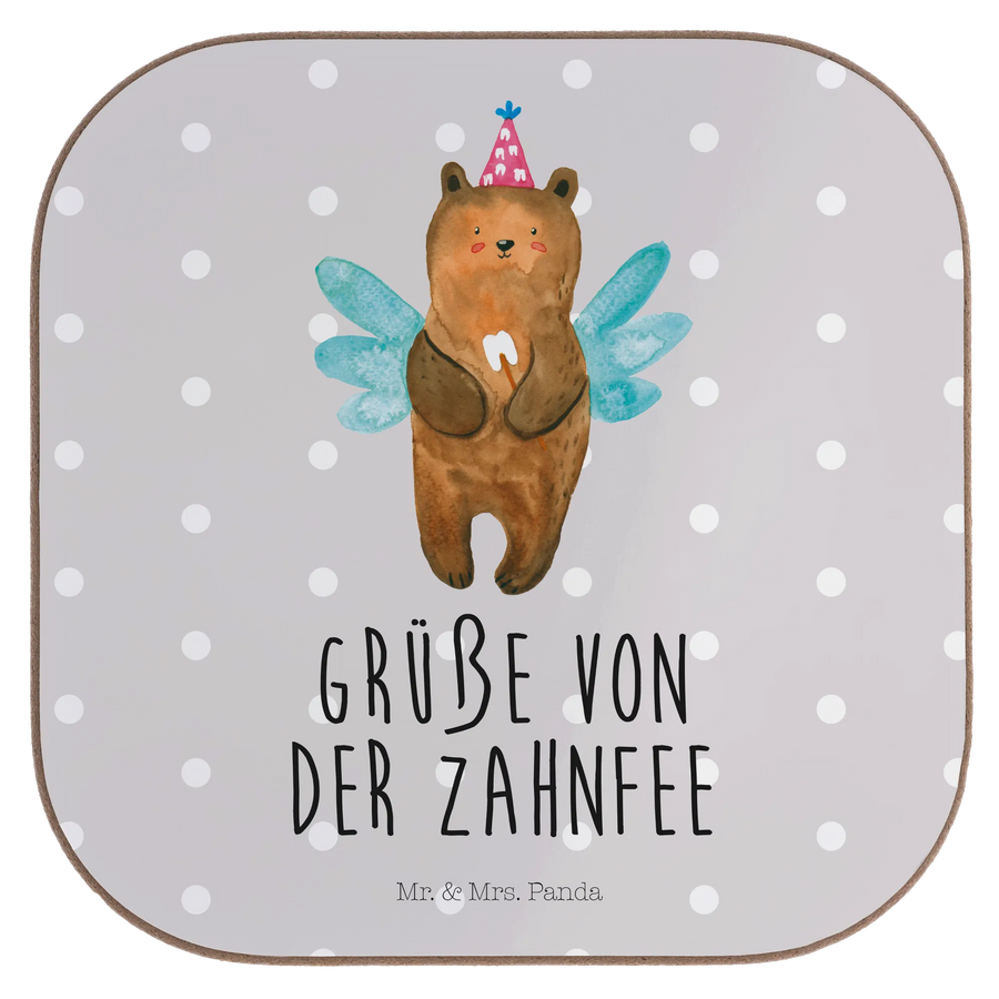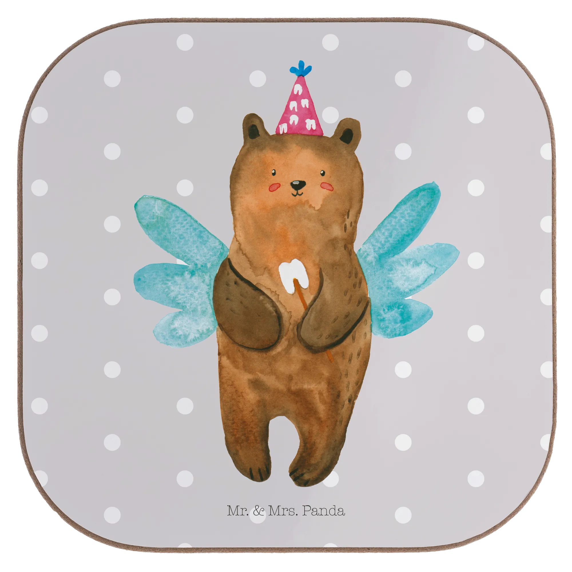 Square coaster bear tooth fairy - with saying - Pastel Gray