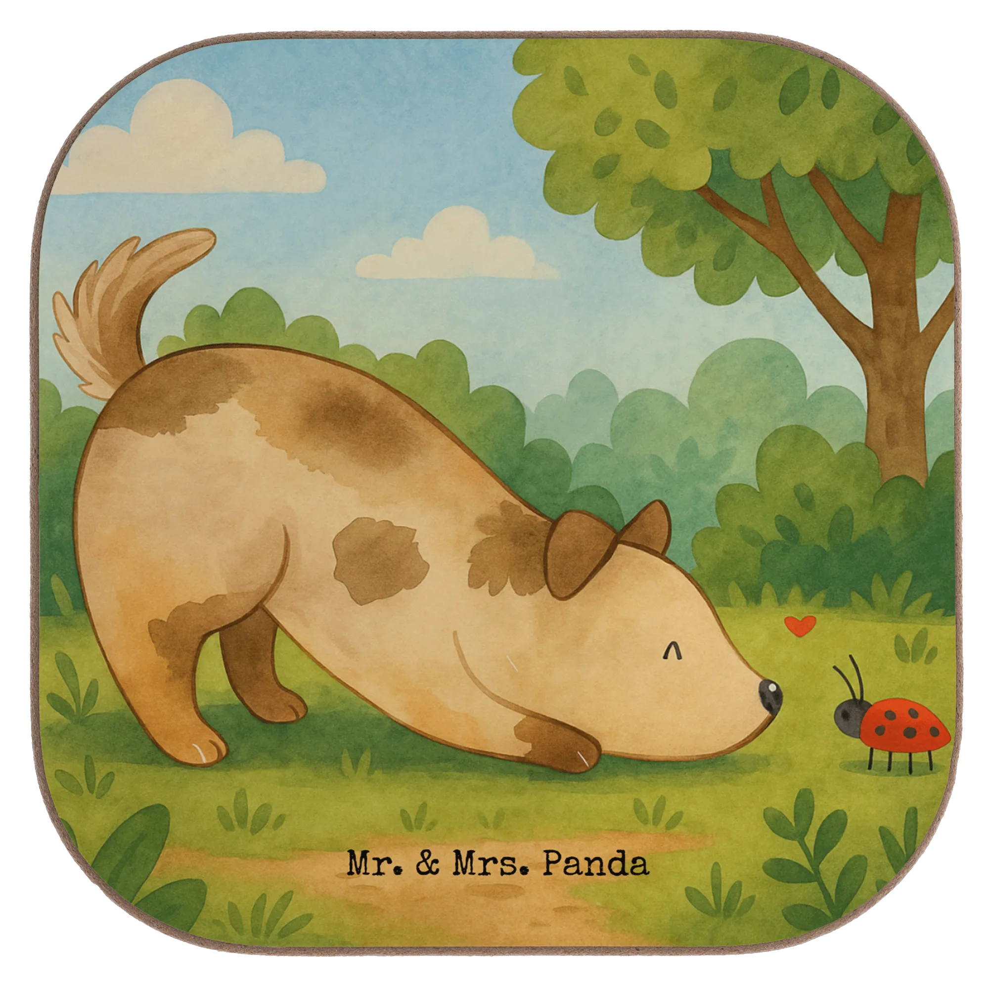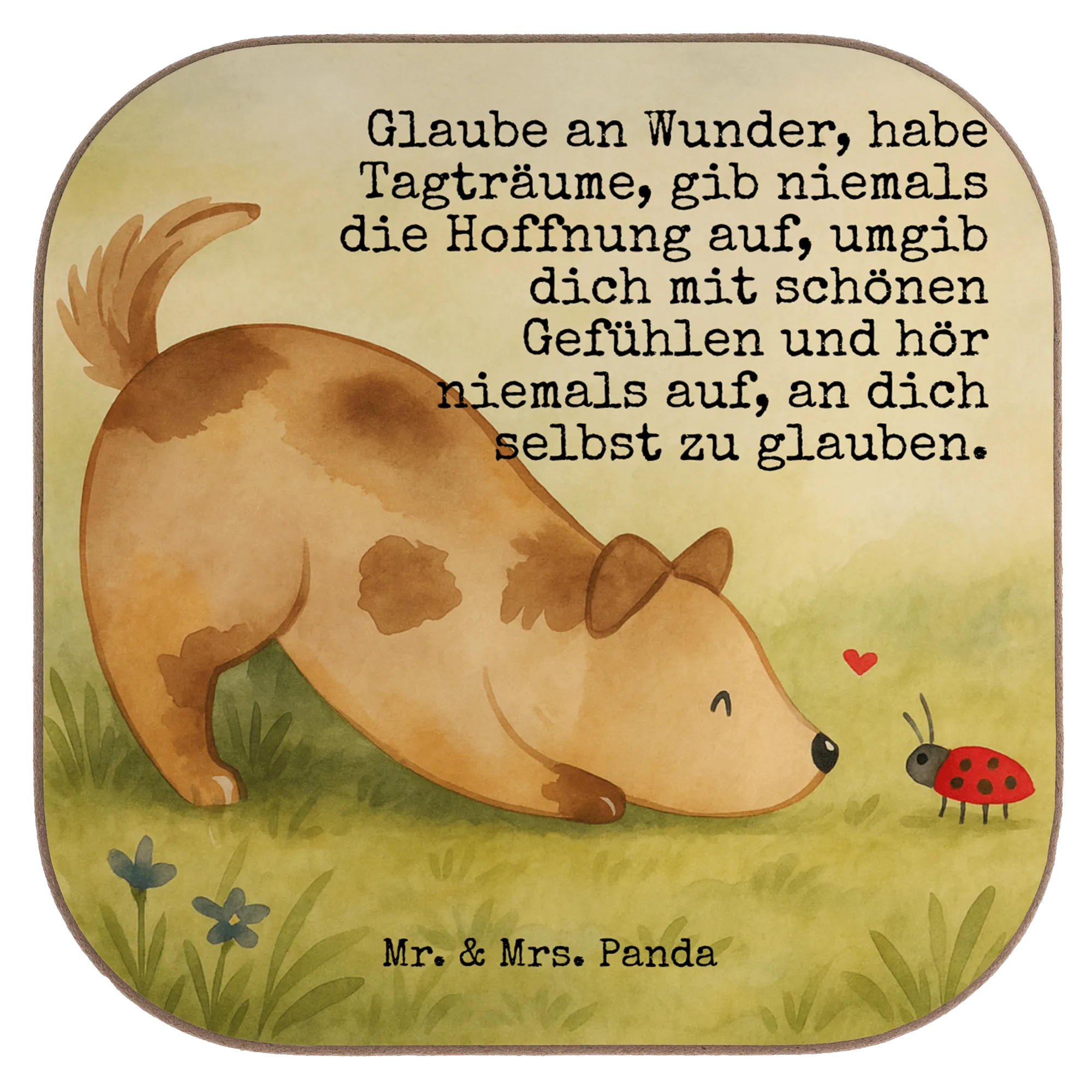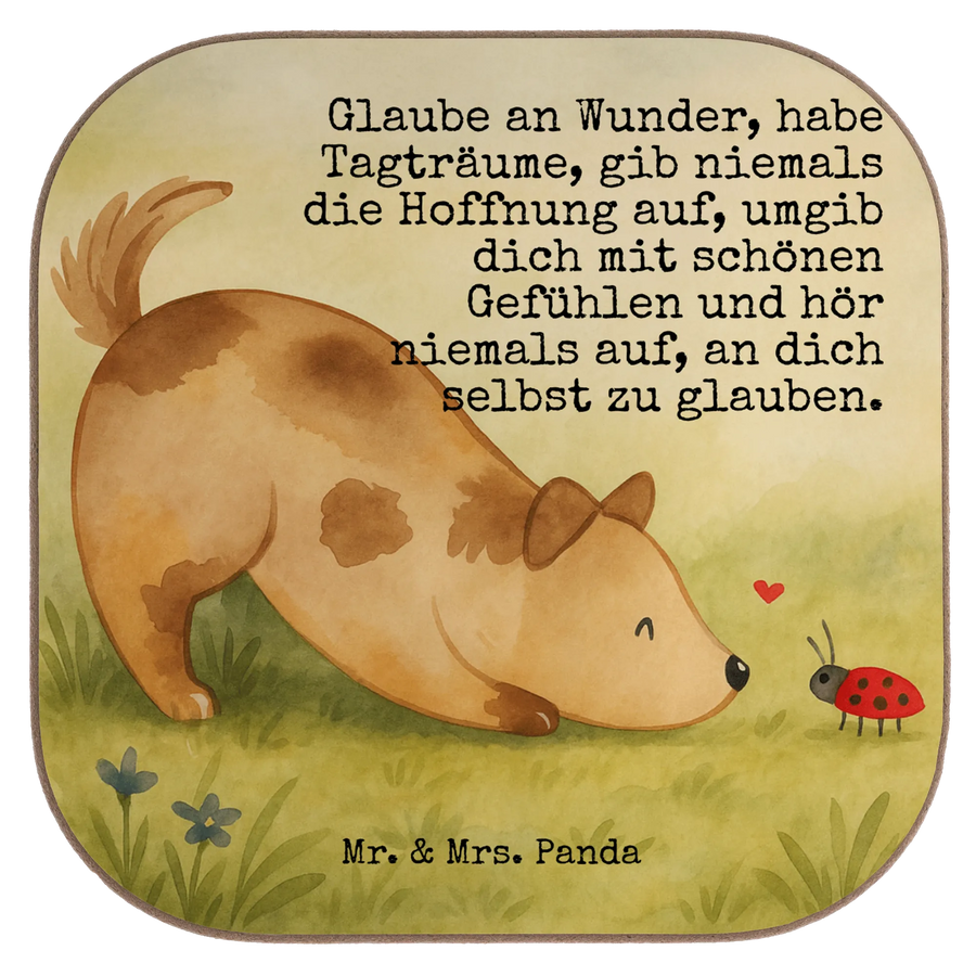 Square coaster Dog ladybug Design - with a saying