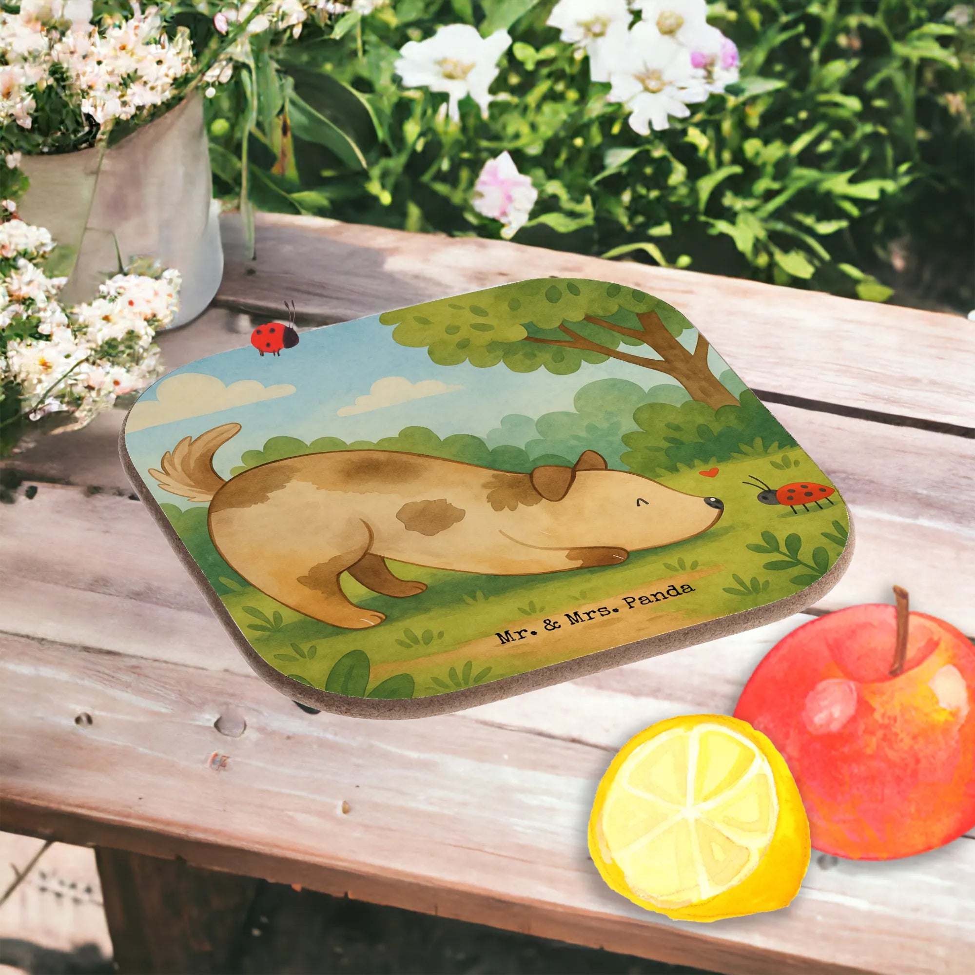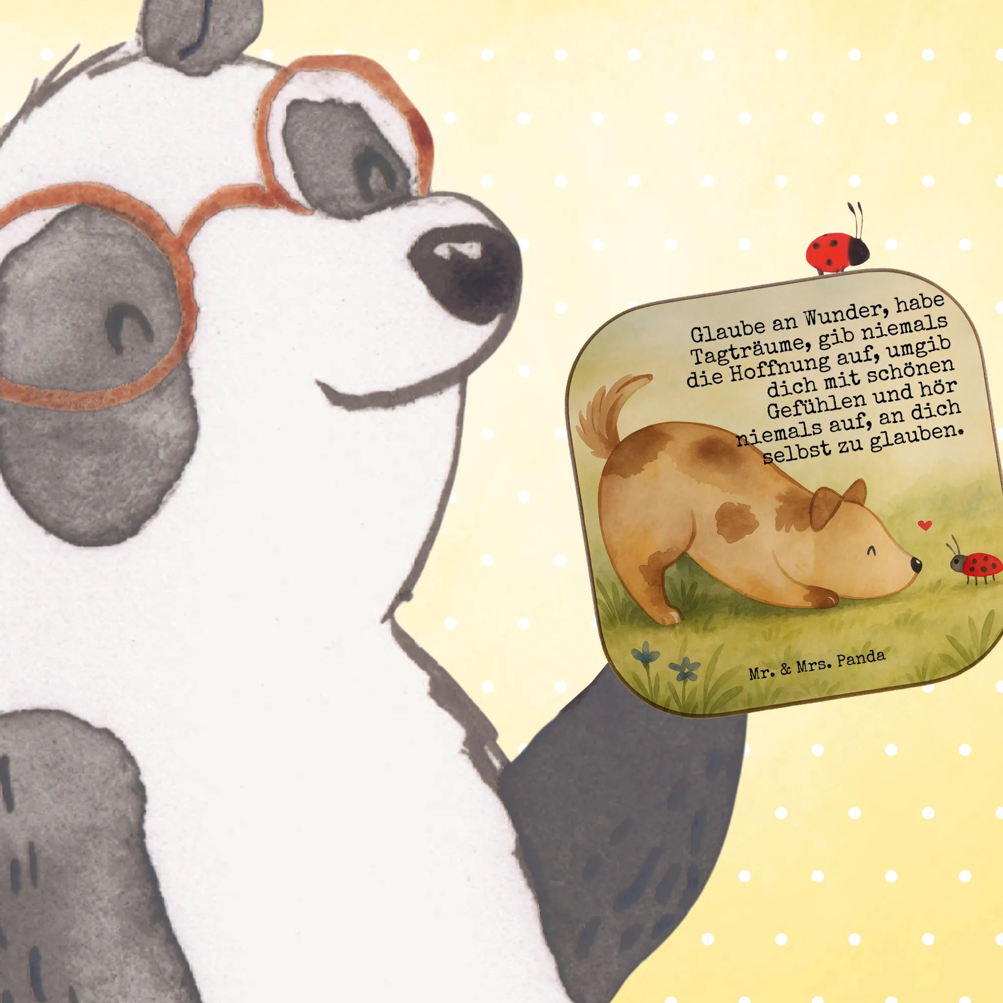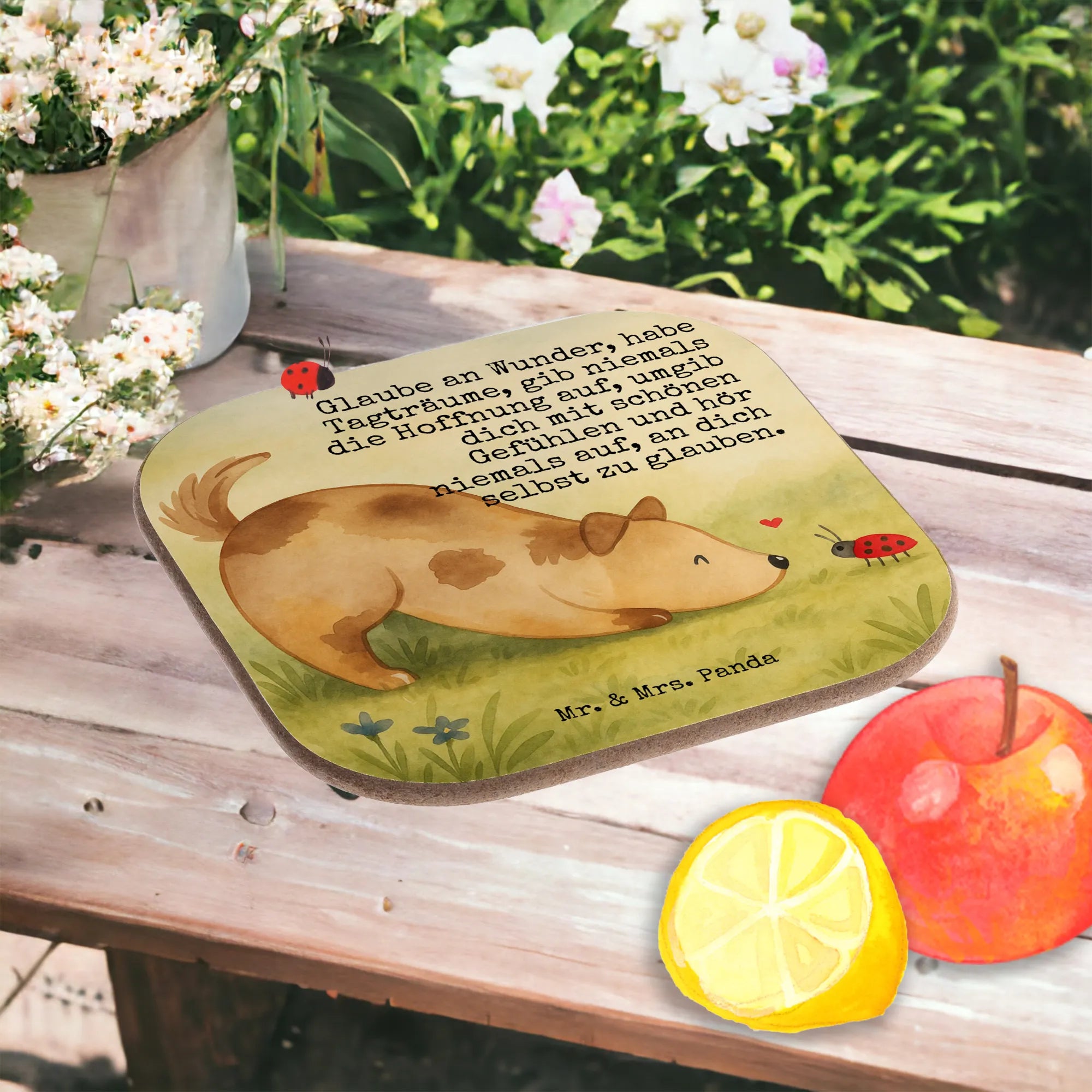 Square coaster Dog ladybug Design - with a saying