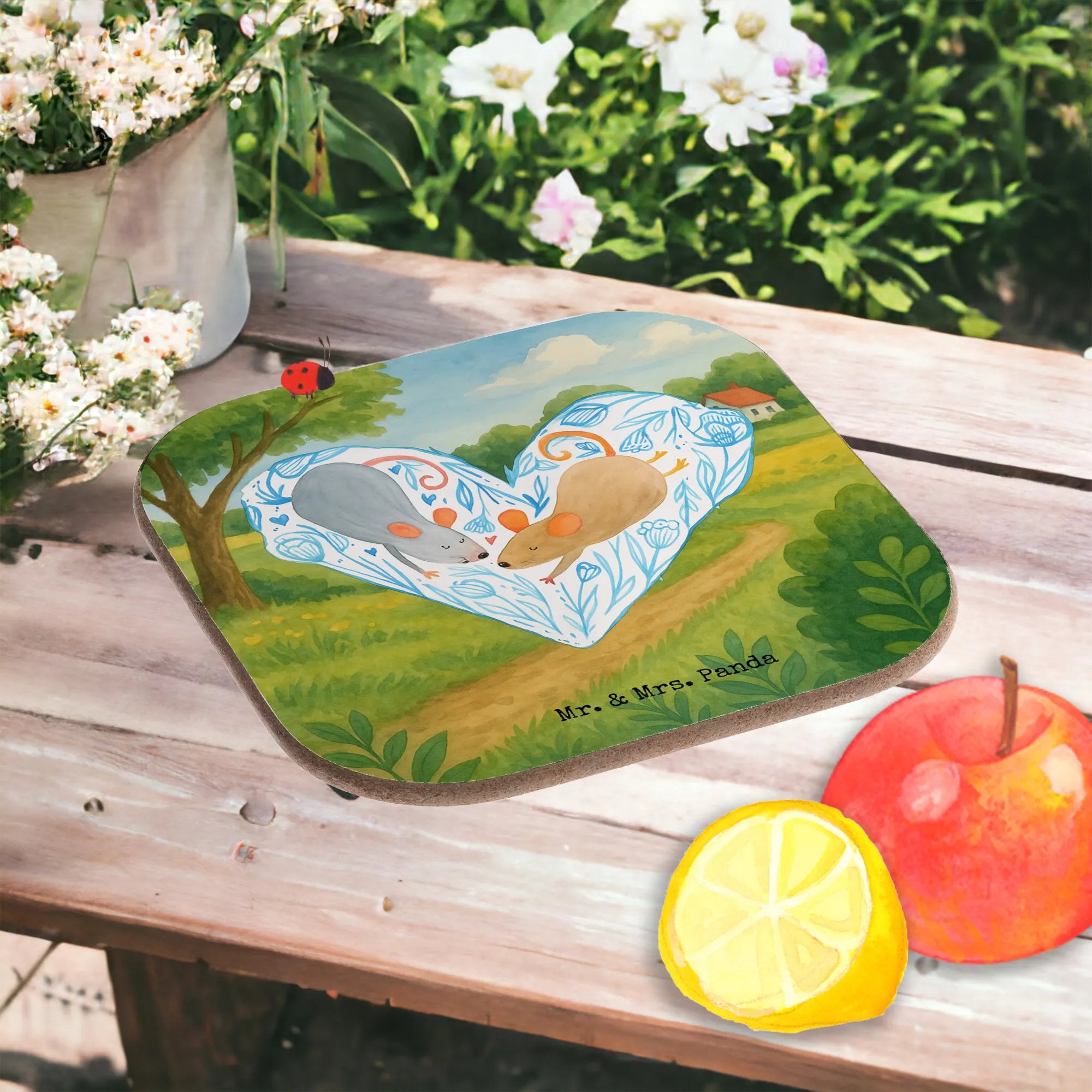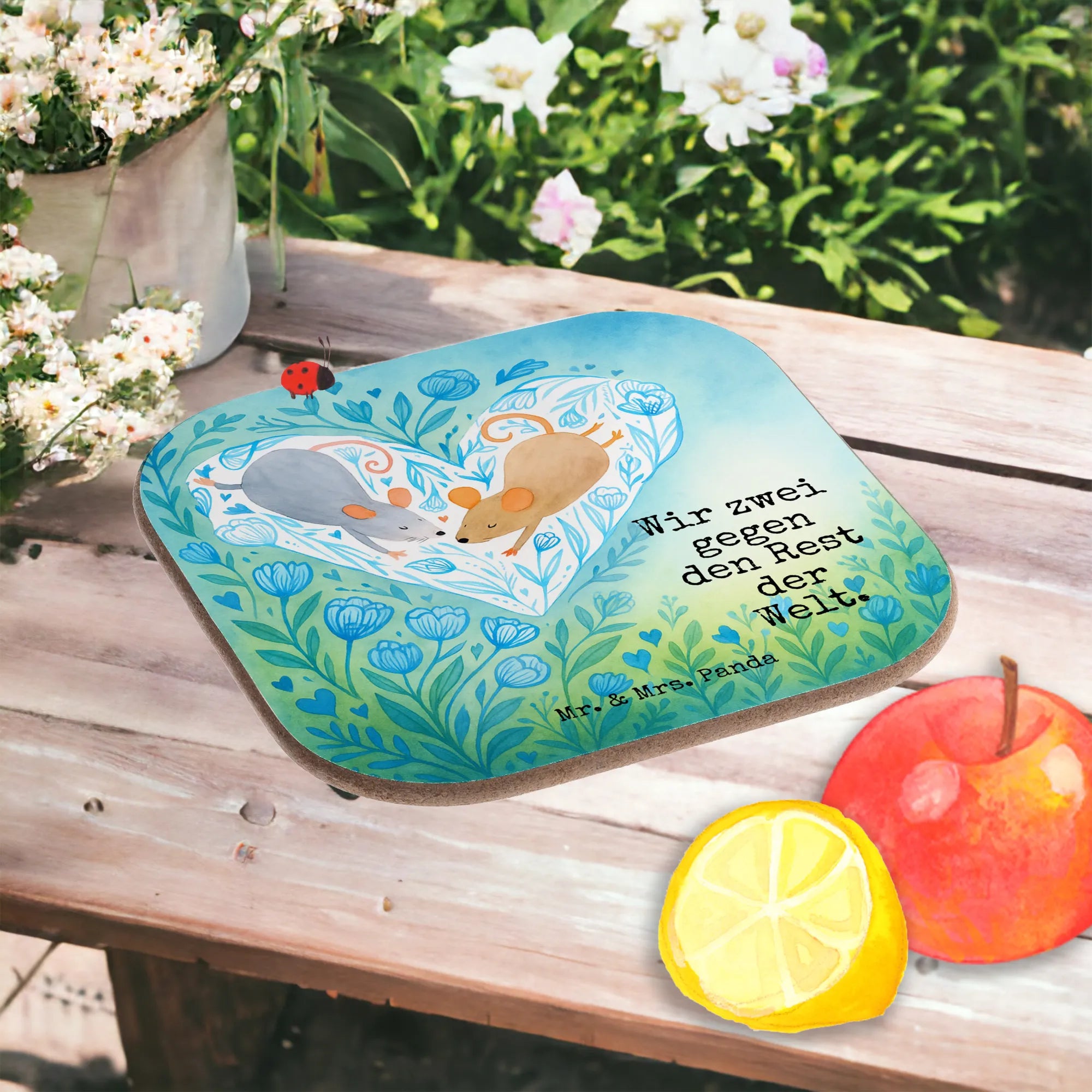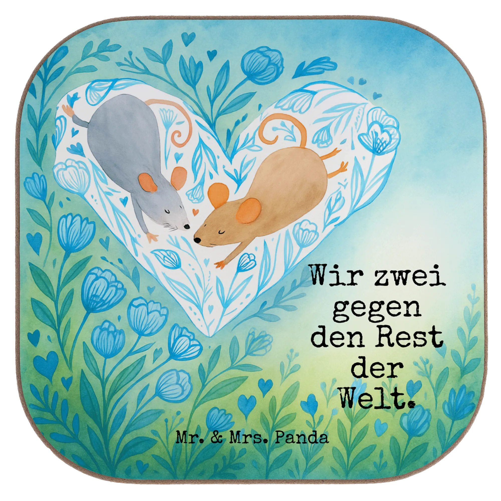 Square coaster Mice heart Design - with a saying