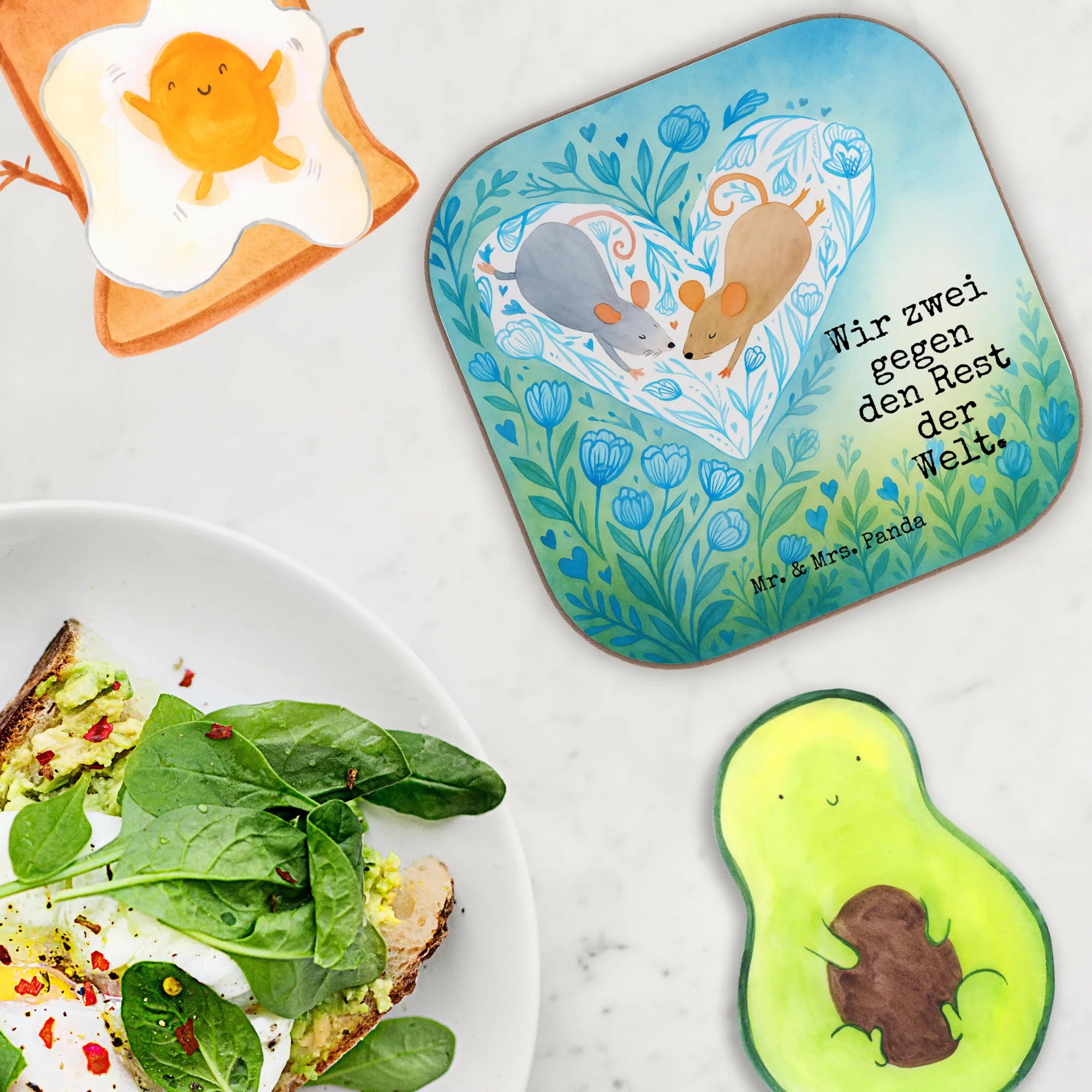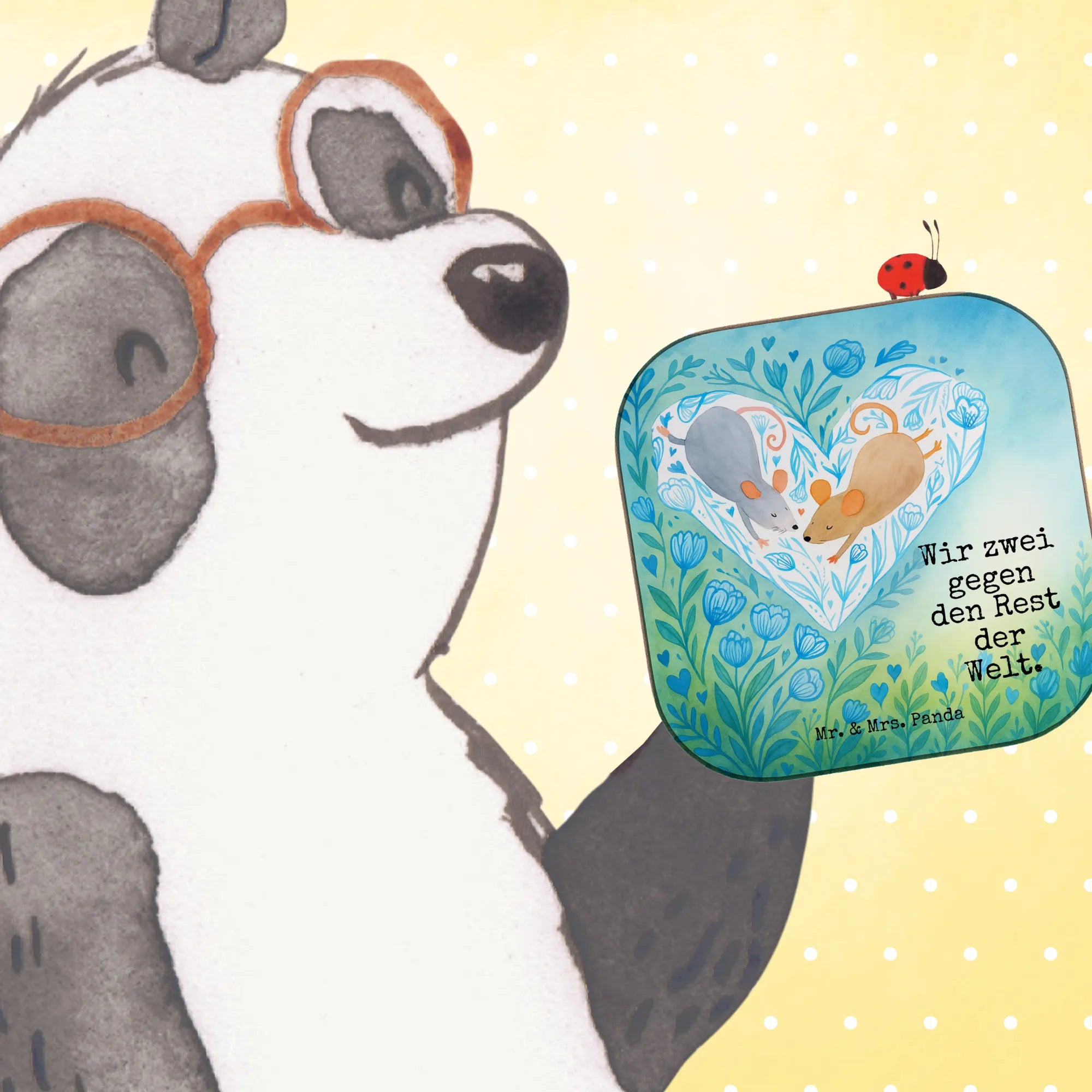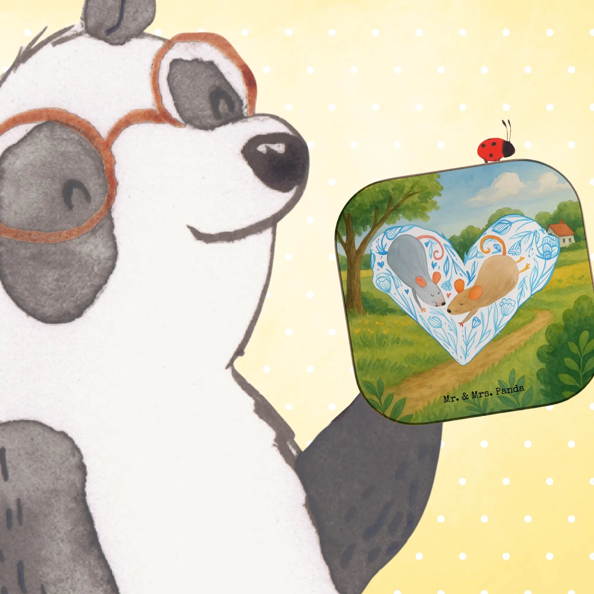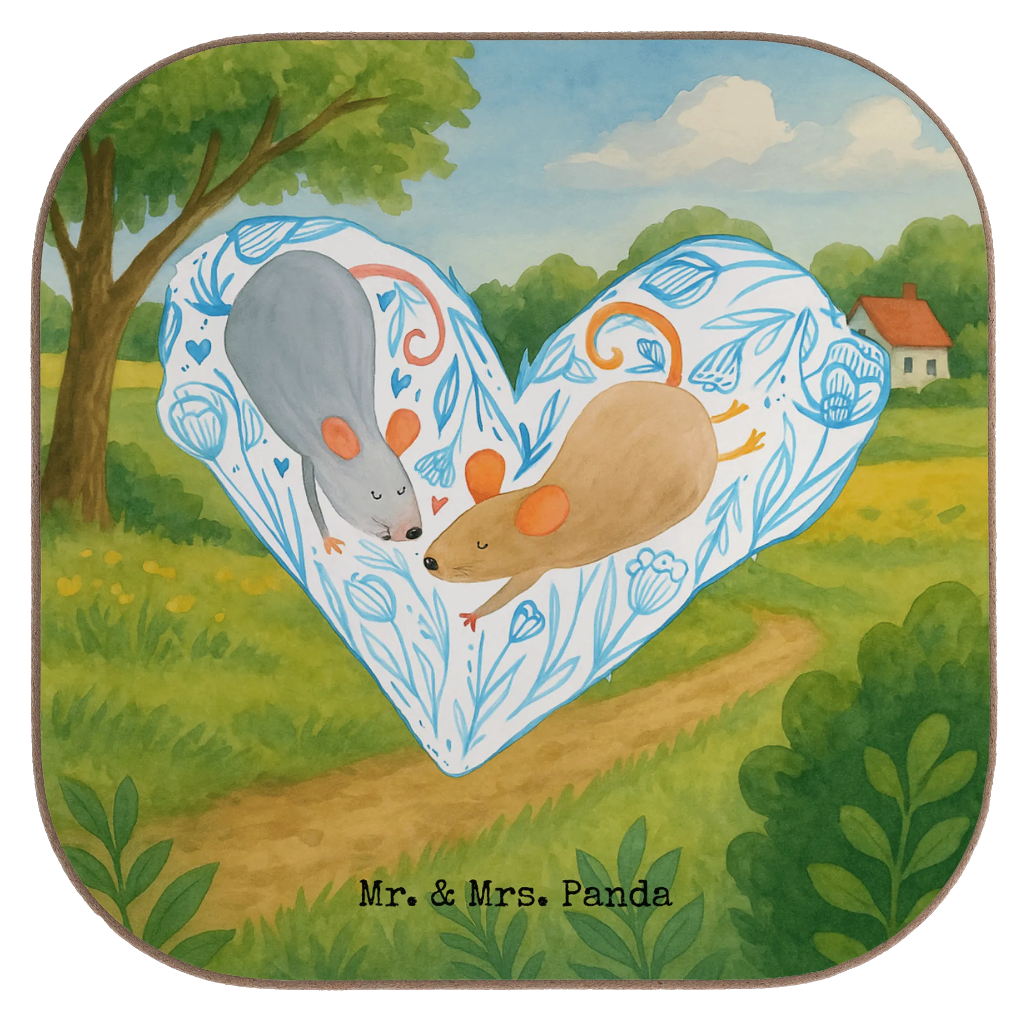 Square coaster Mice heart Design - with a saying