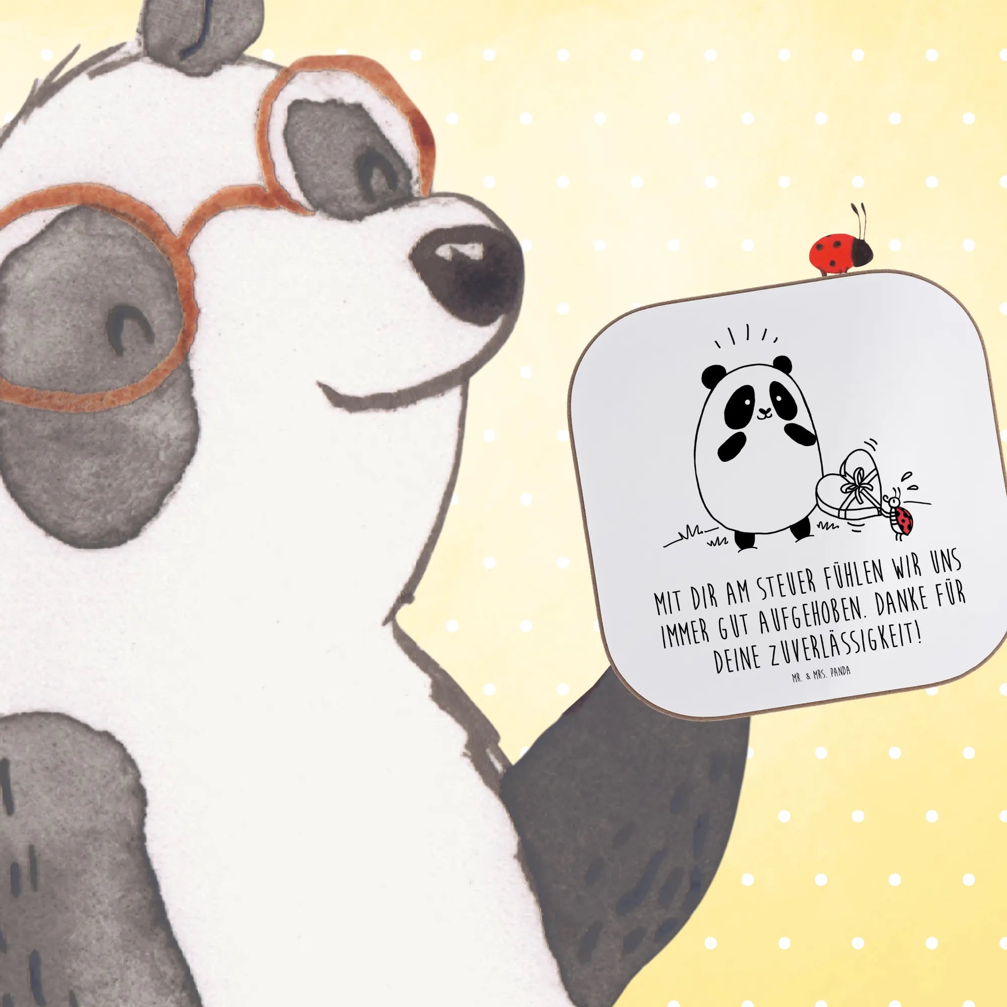 Square coaster Mit dir am Steuer fühlen wir uns immer gut aufgehoben. Danke für deine Zuverlässigkeit!