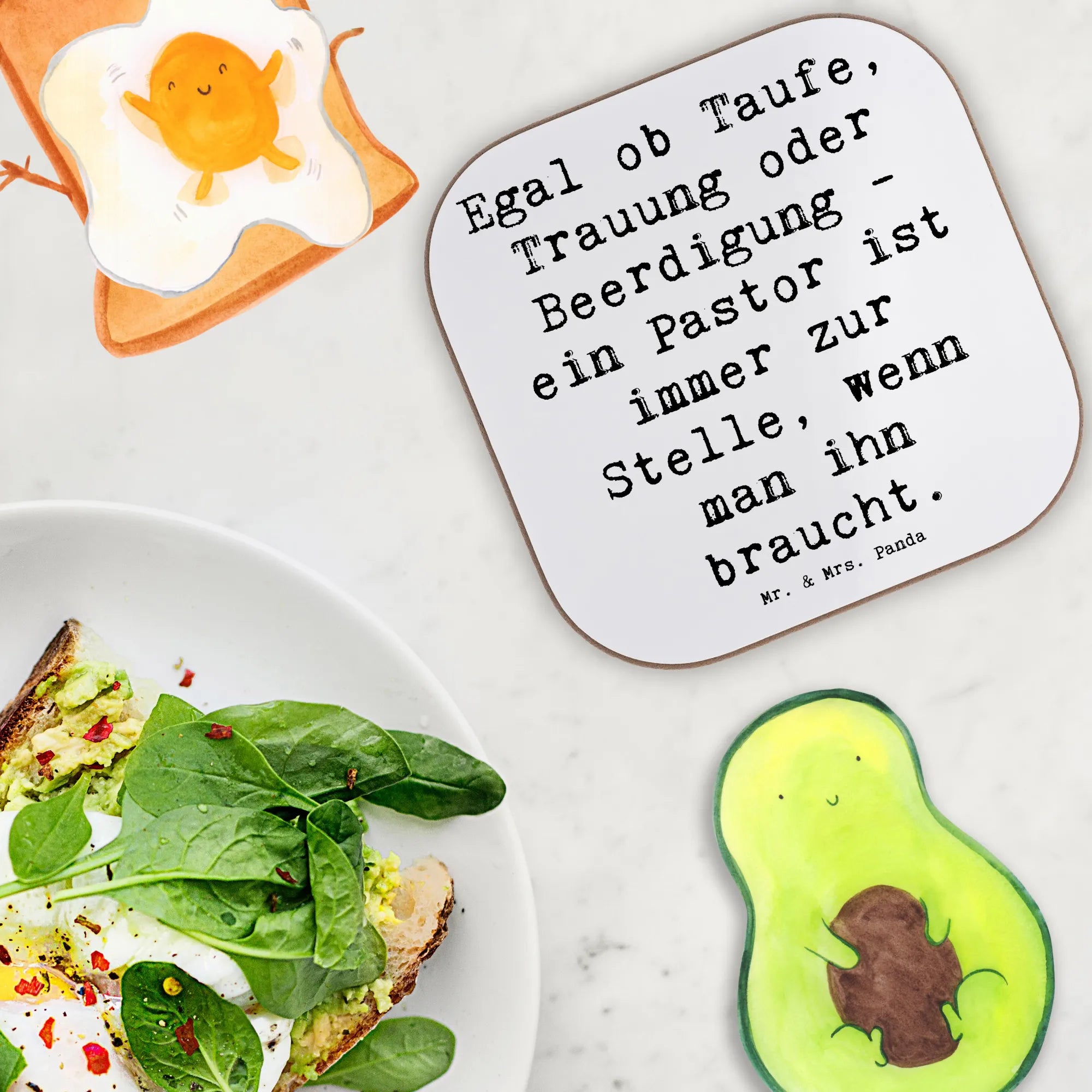 Square coaster Saying Egal ob Taufe, Trauung oder Beerdigung - ein Pastor ist immer zur Stelle, wenn man ihn braucht. - Sea Breeze