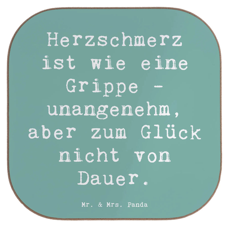 Square coaster Saying Herzschmerz ist wie eine Grippe - unangenehm, aber zum Glück nicht von Dauer. - Carton 300 grams - Sea Breeze