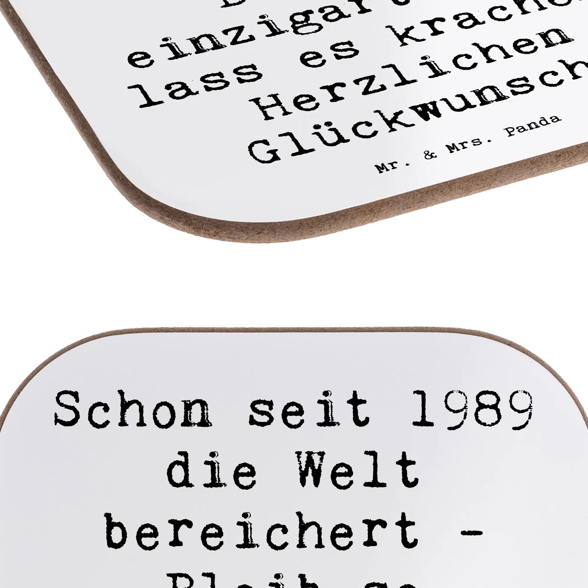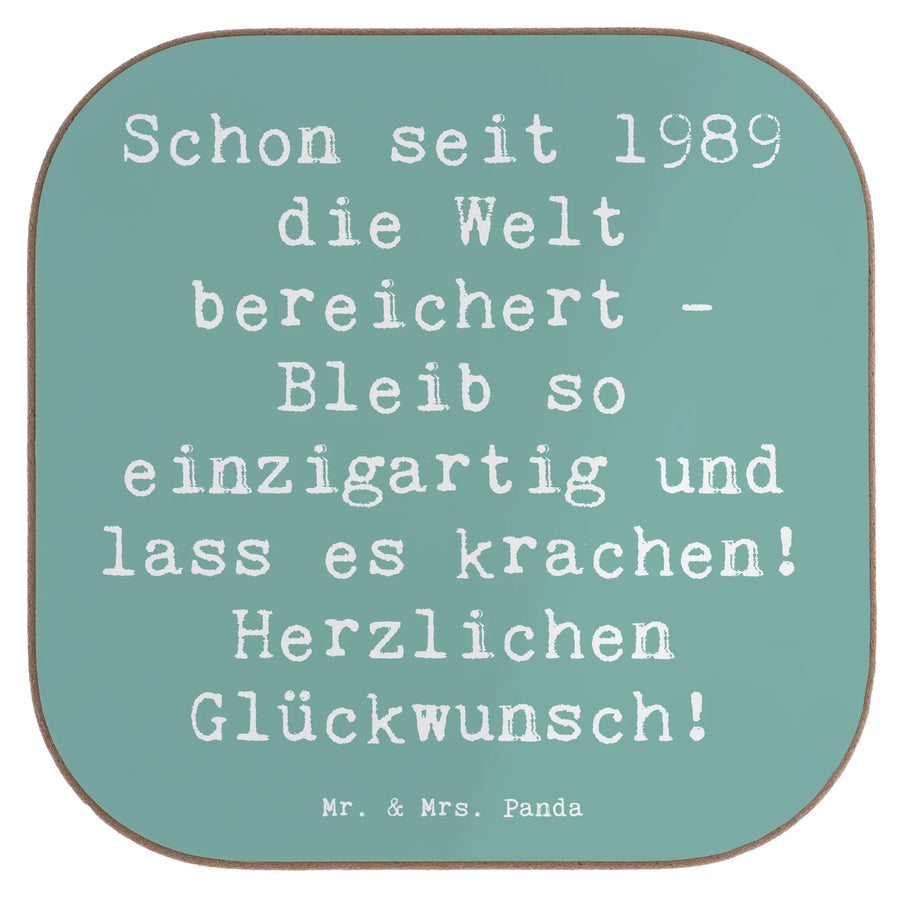 Square coaster Saying Schon seit 1989 die Welt bereichert - Bleib so einzigartig und lass es krachen! Herzlichen Glückwunsch! - Sea Breeze