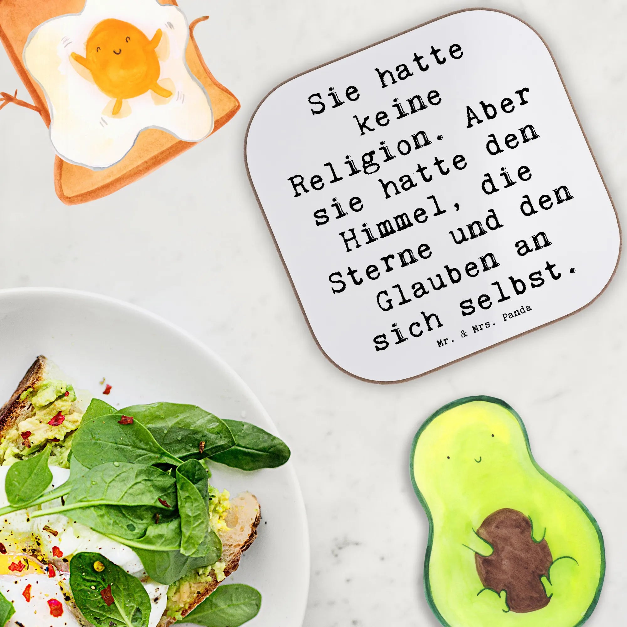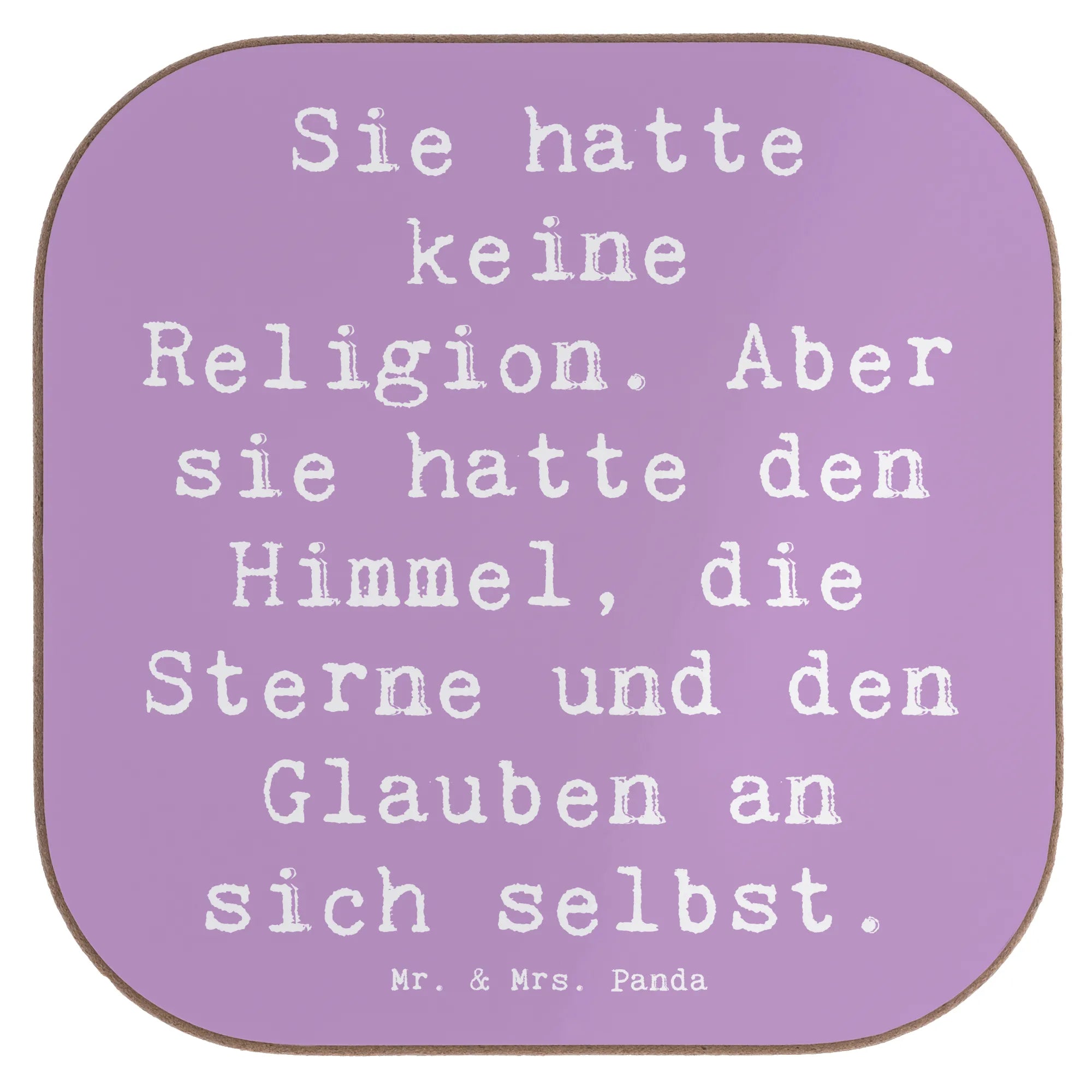 Square coaster Saying Sie hatte keine Religion. Aber sie hatte den Himmel, die Sterne und den Glauben an sich selbst. - Carton 300 grams - Sea Breeze