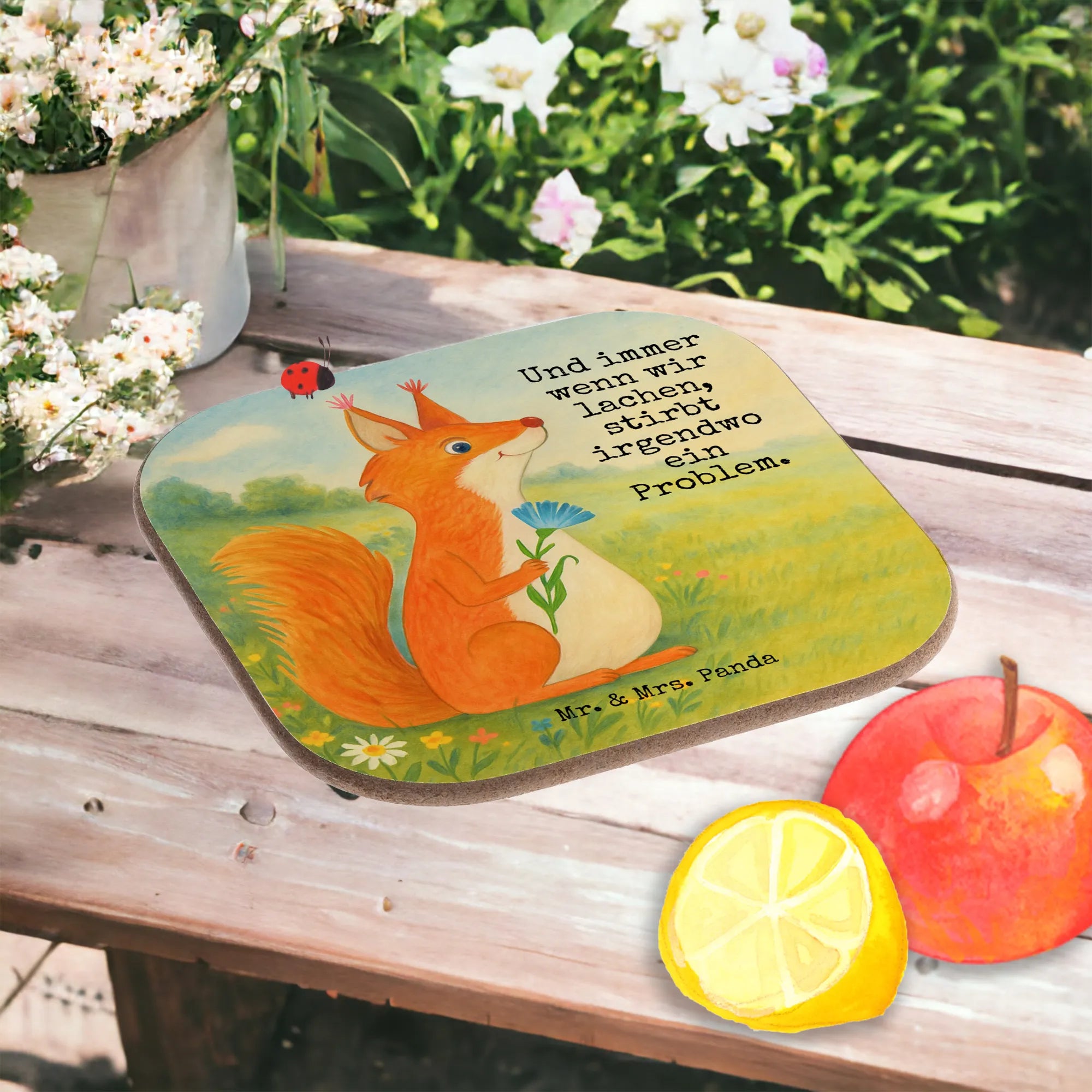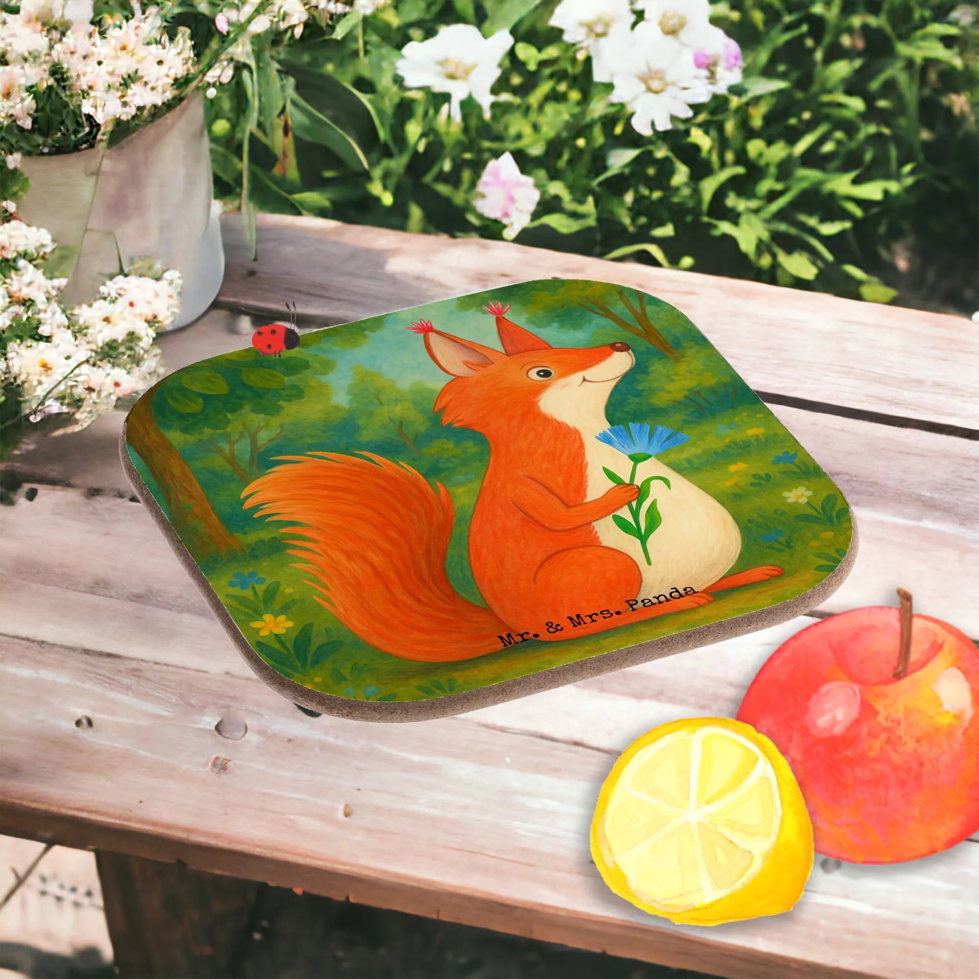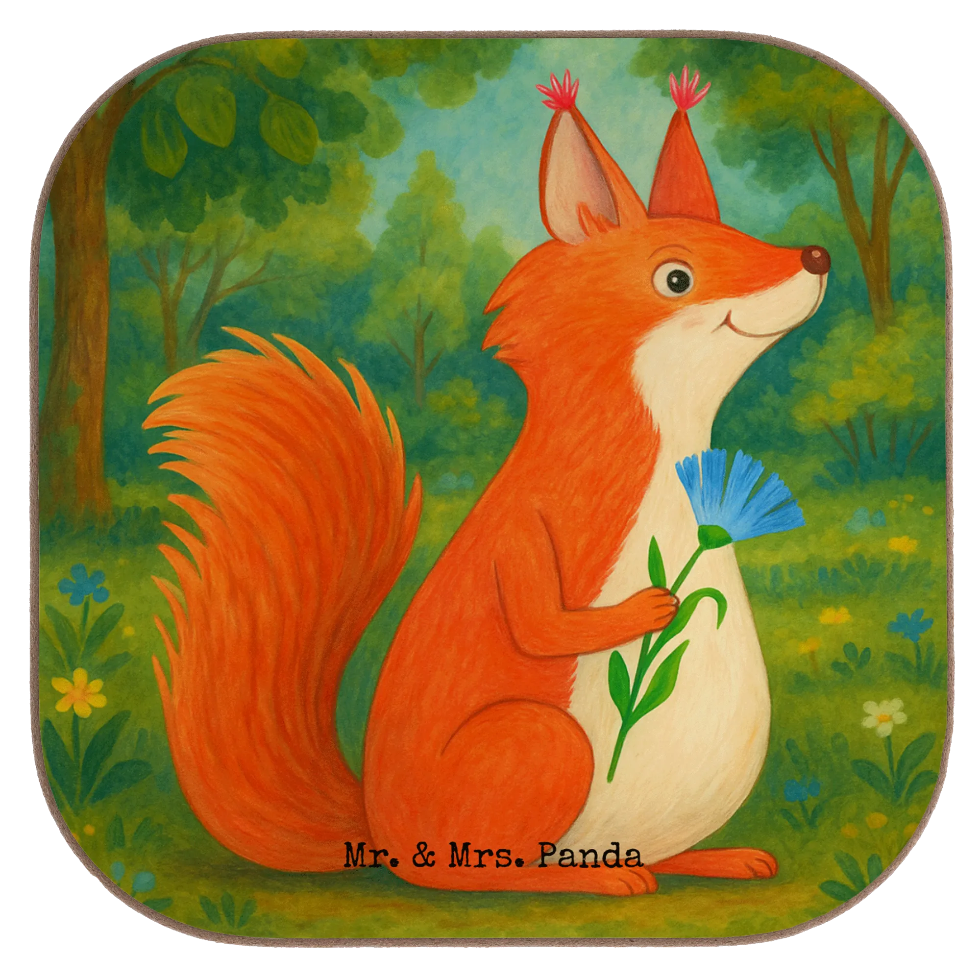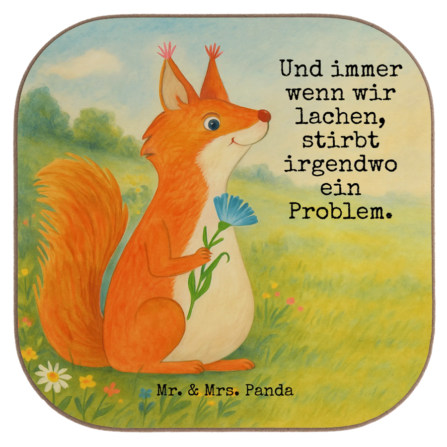 Square coaster Squirrel flower Design - with a saying