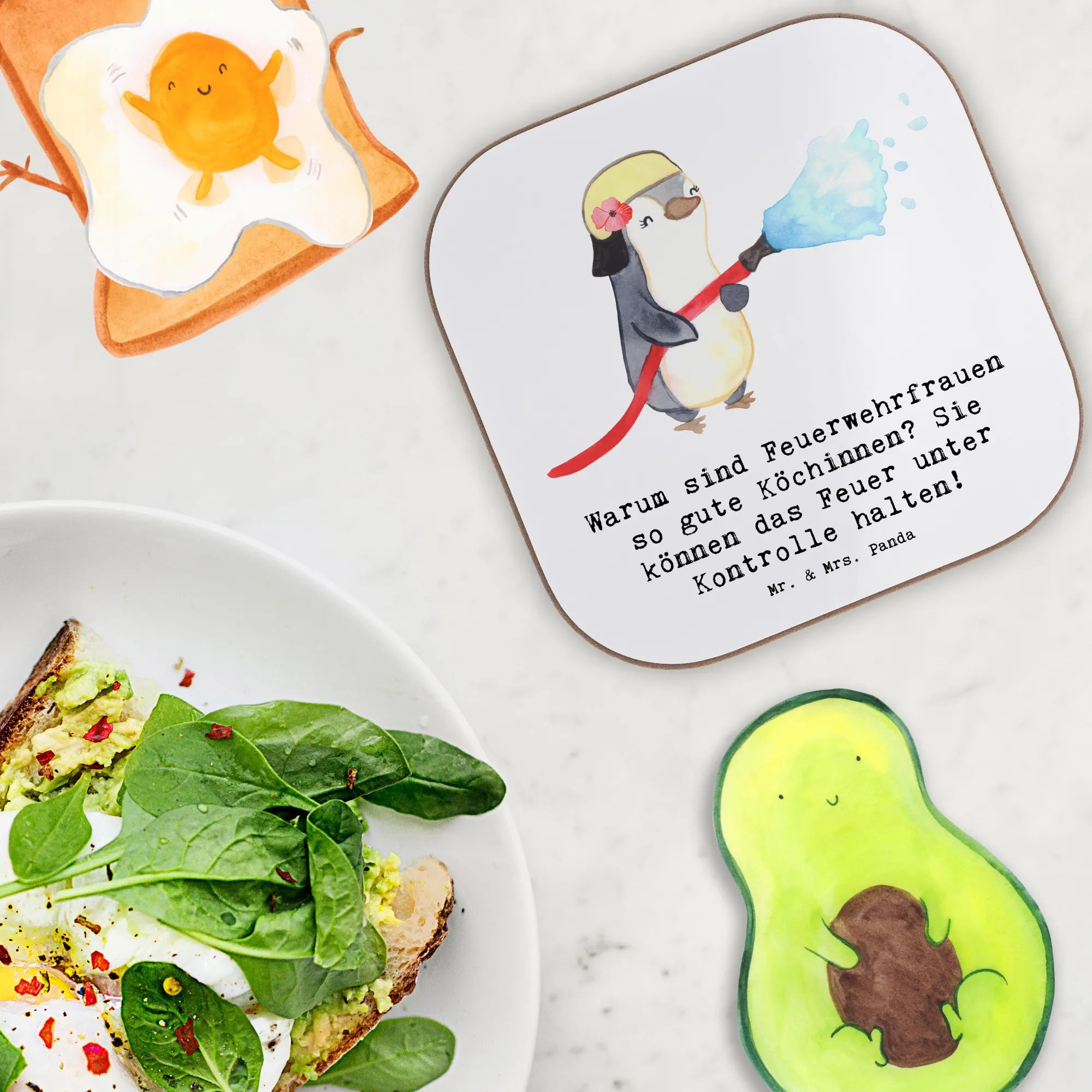 Square coaster Warum sind Feuerwehrfrauen so gute Köchinnen? Sie können das Feuer unter Kontrolle halten! - Sea Breeze