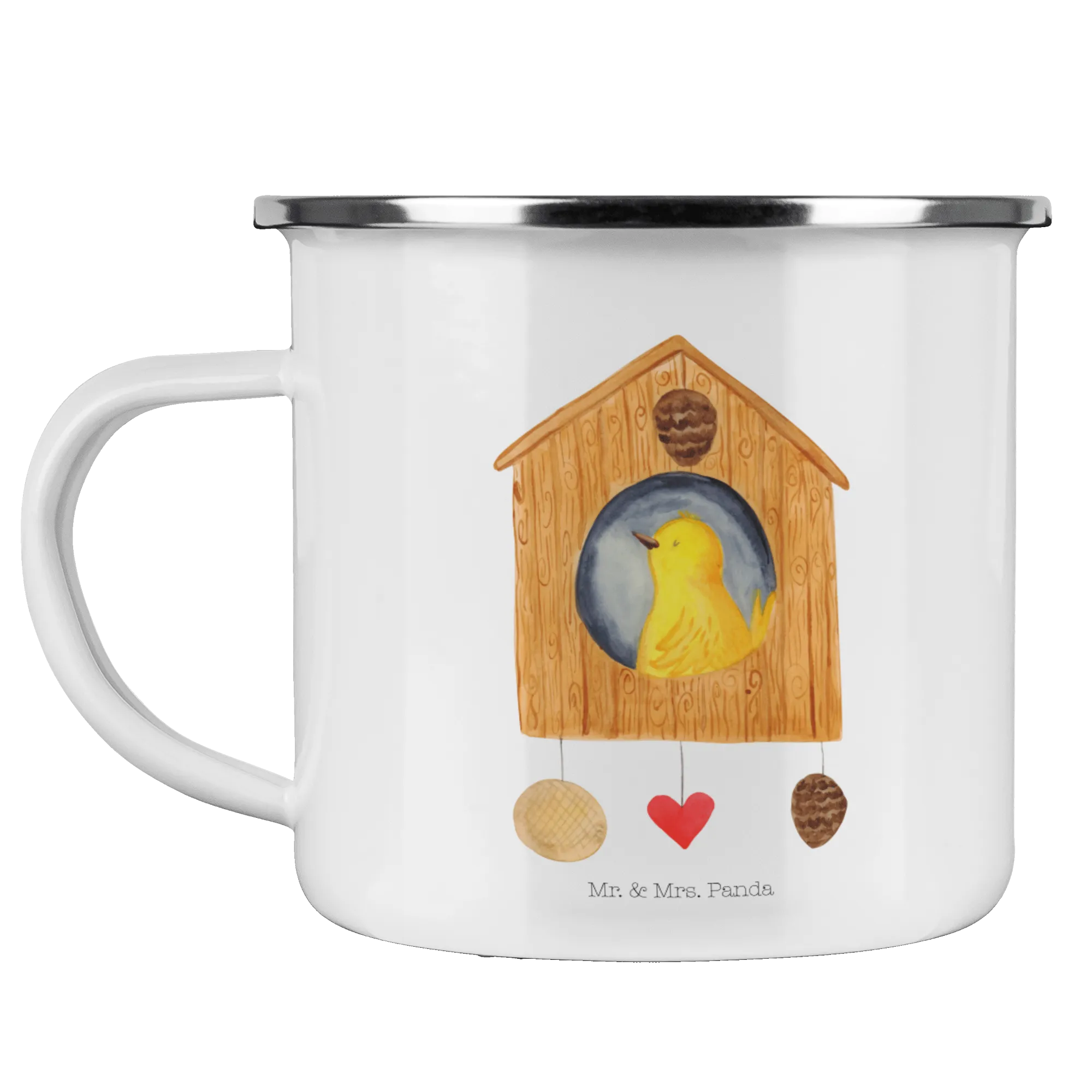 Looking for the perfect gift that brings joy to the outdoorsy soul in your life? Look no further than the charming Enamel Camping Mug featuring a delightful Birdhouse motif from the beloved Small World collection by Mr. & Mrs. Panda! This is not just any camping mug; it's a lovely piece of art, hand-painted by Mrs. Panda in watercolor, showcasing a cute yellow bird contentedly perched in its home, making it a perfect blend of functionality and beauty.