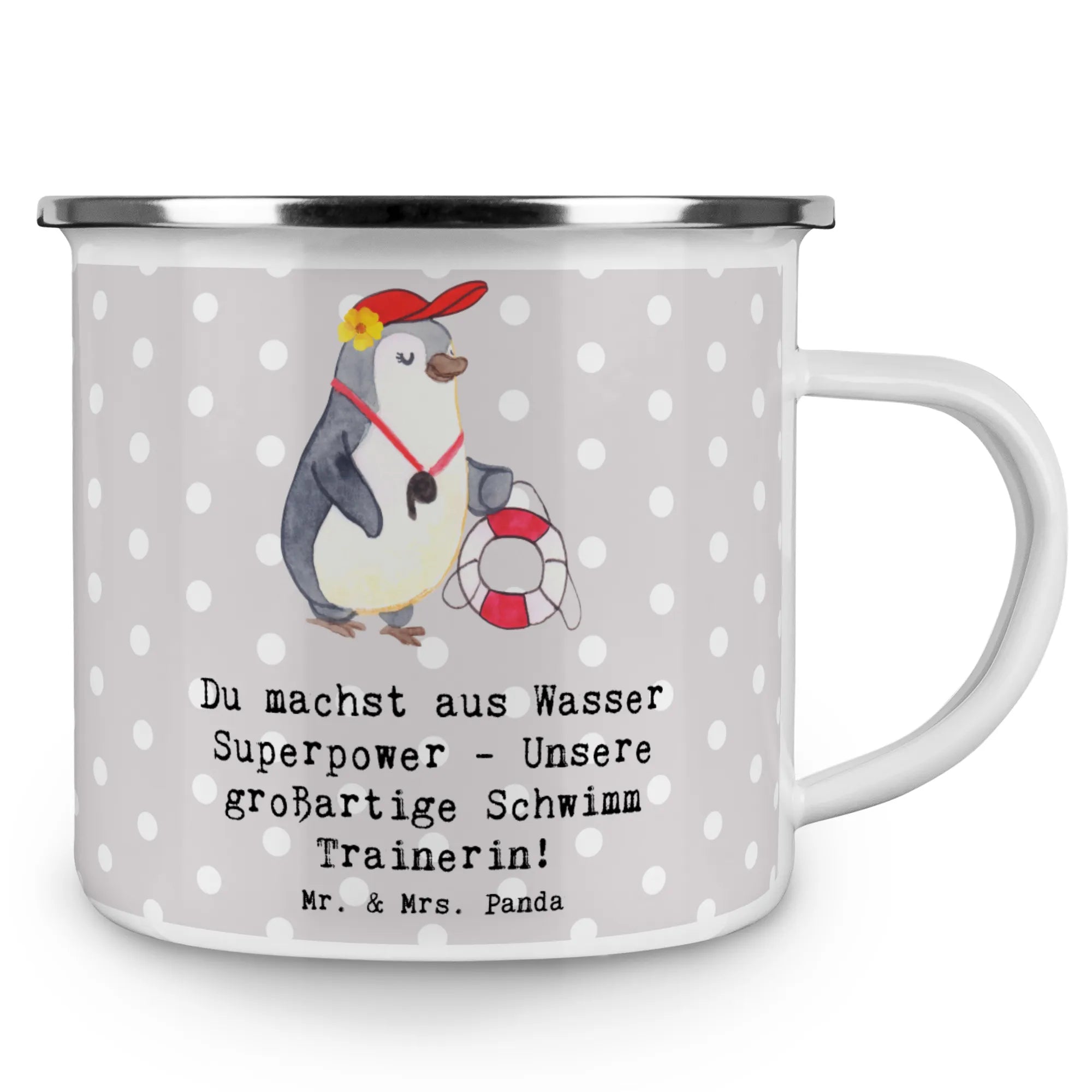 Enamel camping mug Du machst aus Wasser Superpower - Unsere großartige Schwimm Trainerin! - White