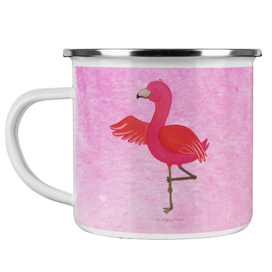 Enamel camping mug flamingo yoga - No saying - Aquarell Pink