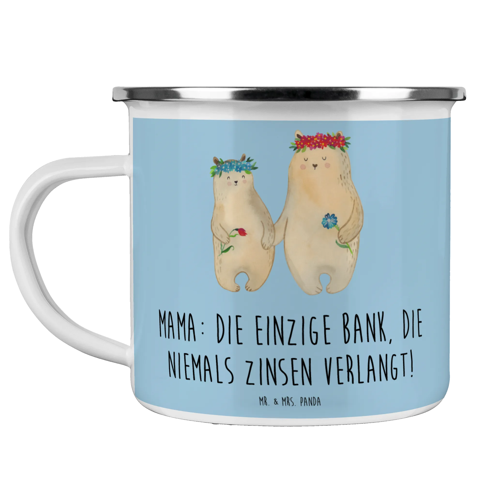 Enamel camping mug Mama: Die einzige Bank, die niemals Zinsen verlangt! - Yellow Pastel