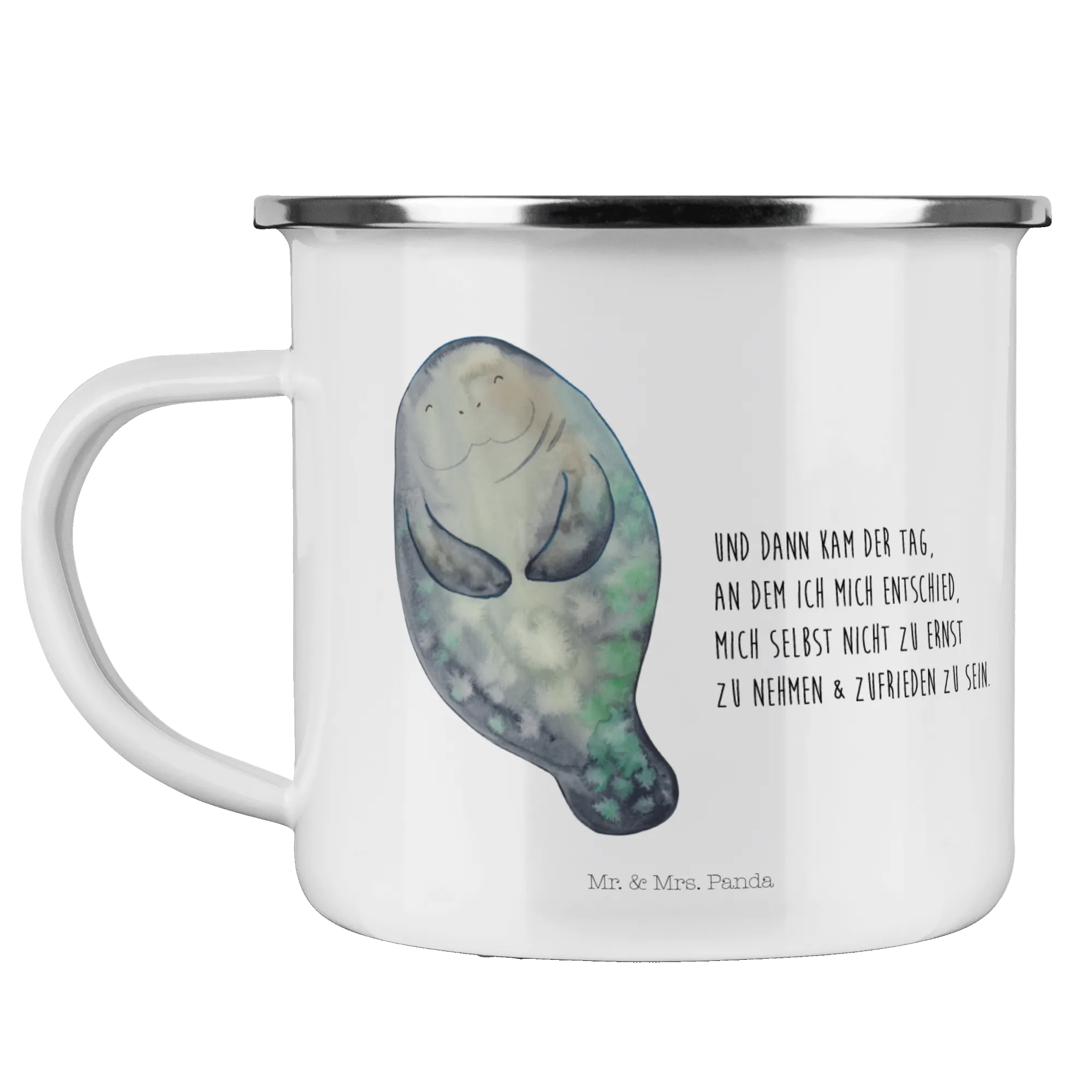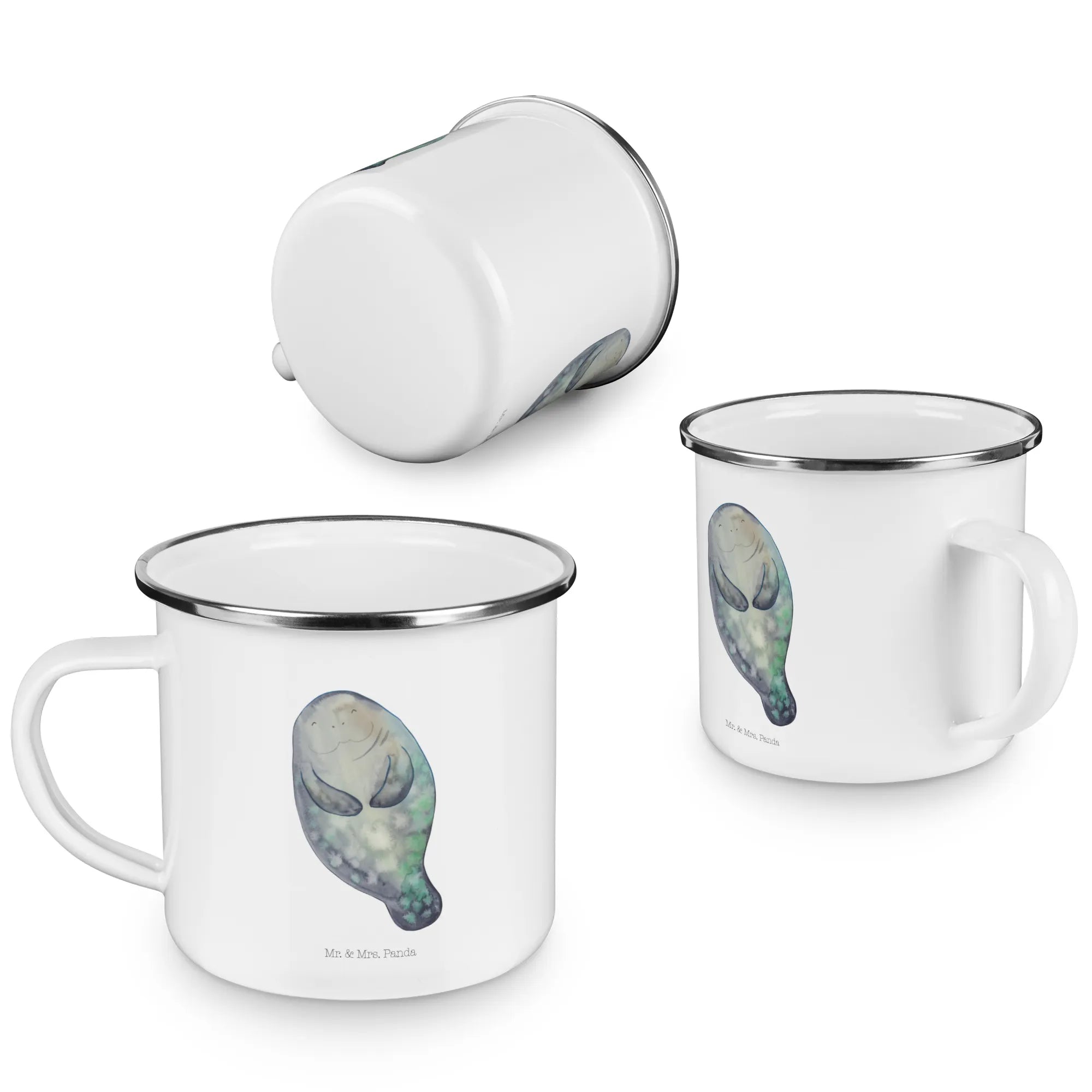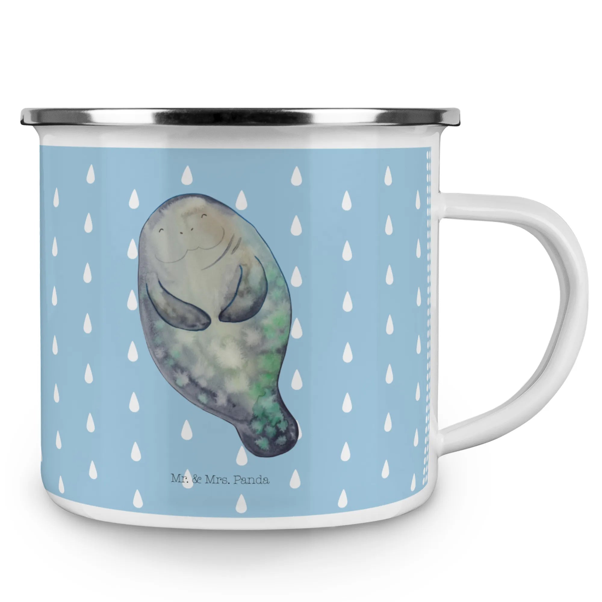 Introducing the Manatee Happy Enamel Camping Mug from Mr. & Mrs. Panda, a charming addition to your camping gear or a thoughtful gift for that special seafood lover in your life. Imagine sipping your favorite hot beverage by the campfire or on a serene hike, with this beautifully designed enamel mug bringing a smile to your face.