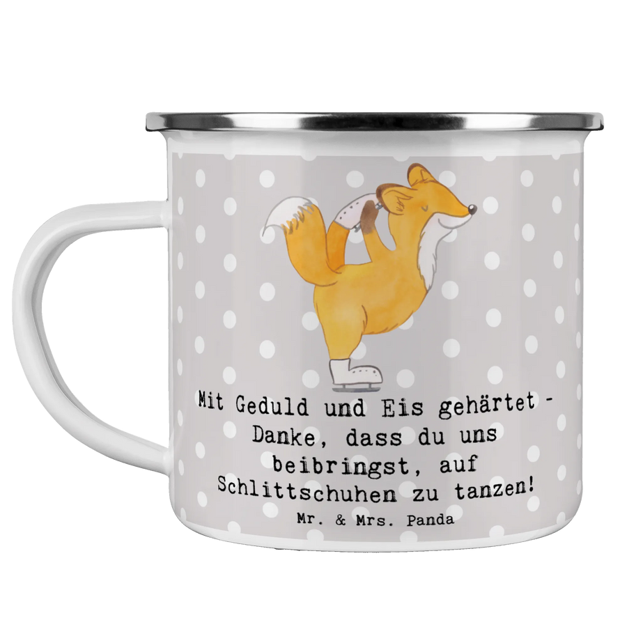 Enamel camping mug Mit Geduld und Eis gehärtet - Danke, dass du uns beibringst, auf Schlittschuhen zu tanzen! - Grey Pastel