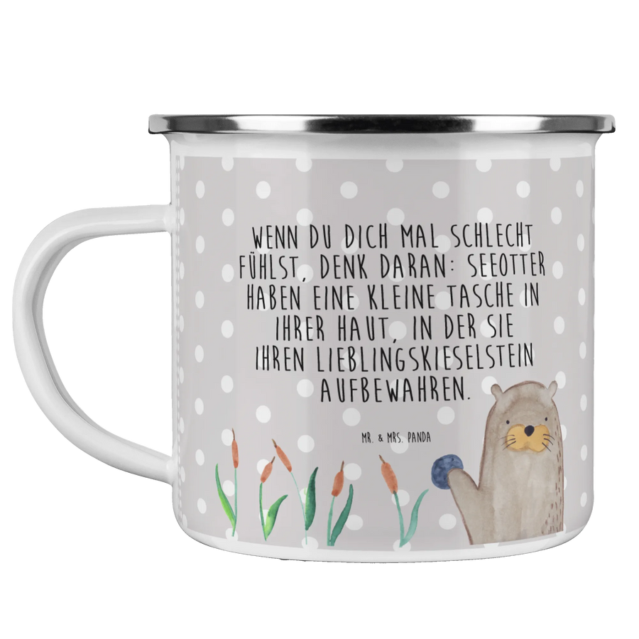 Enamel camping mug otter Stone - with saying - Pastel Gray