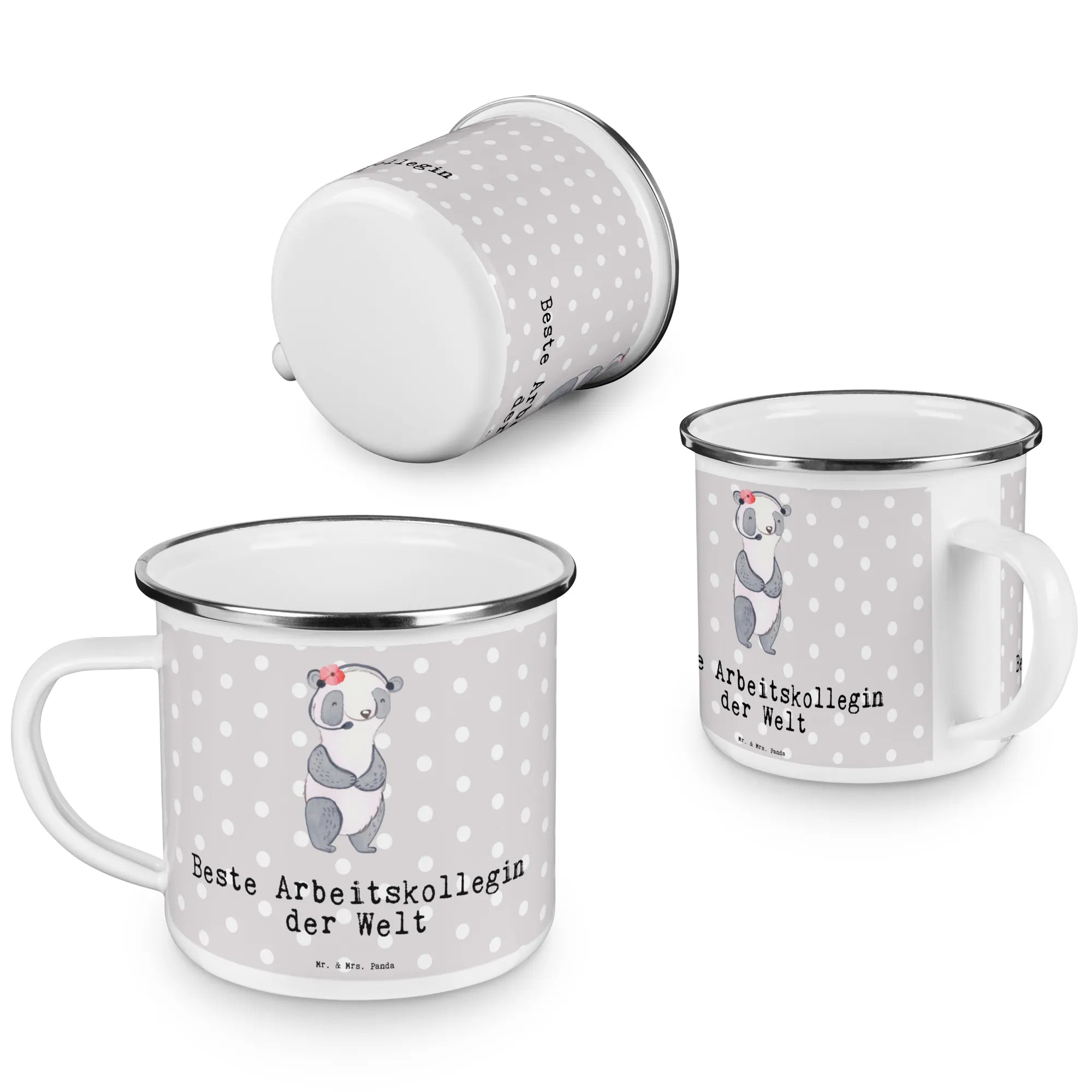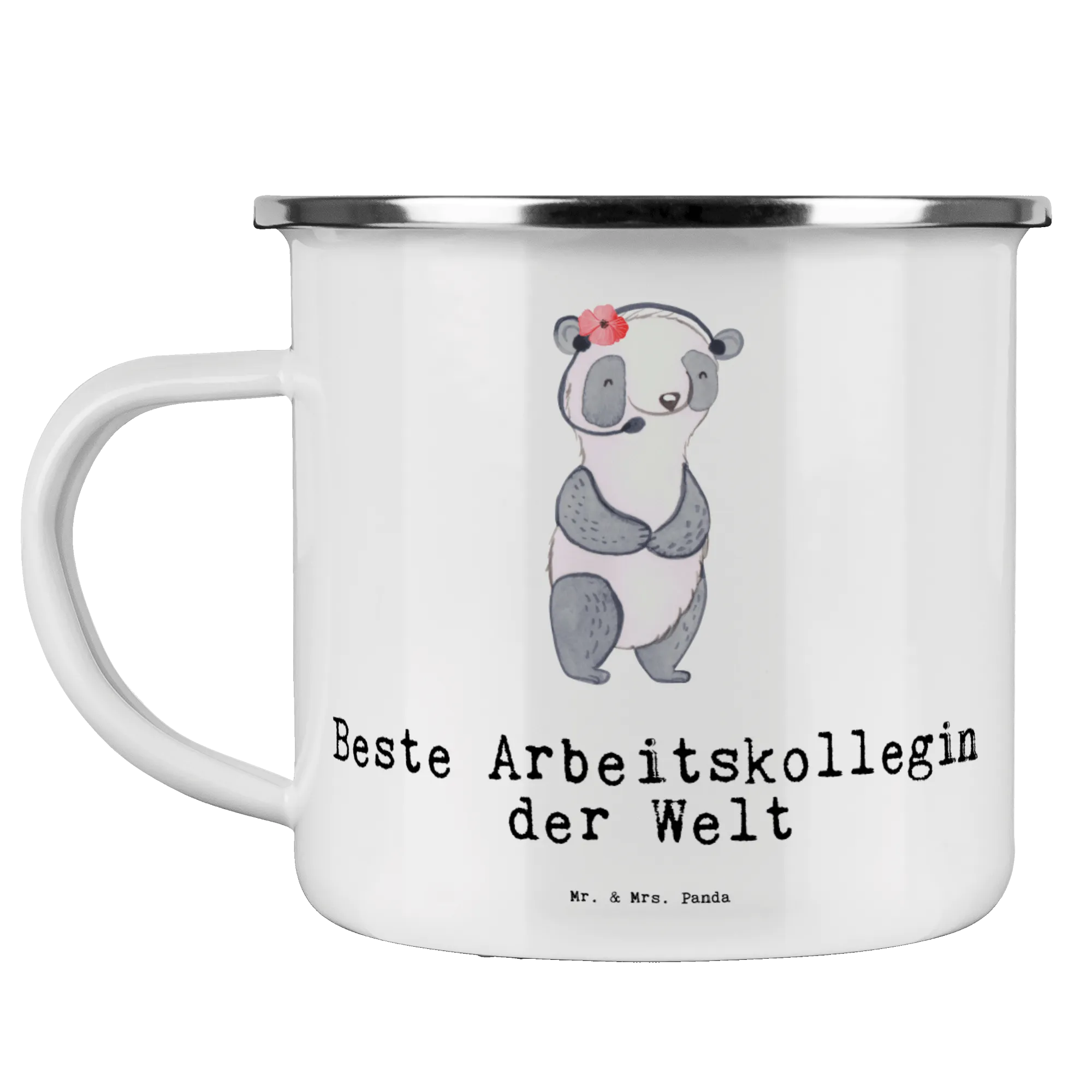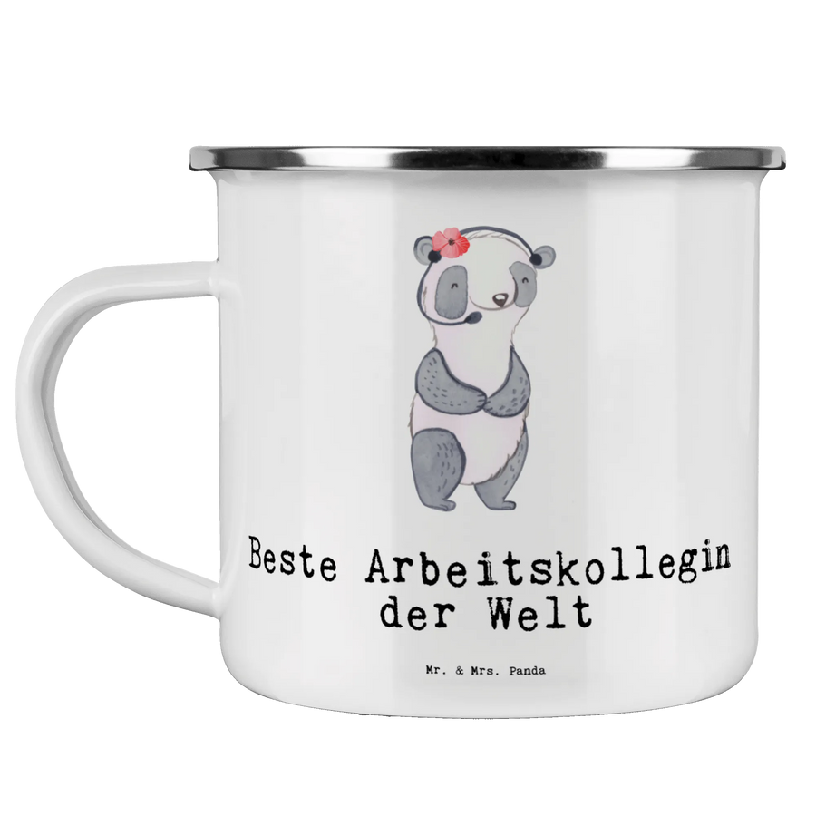 Enamel camping mug panda Best colleague in the world - White