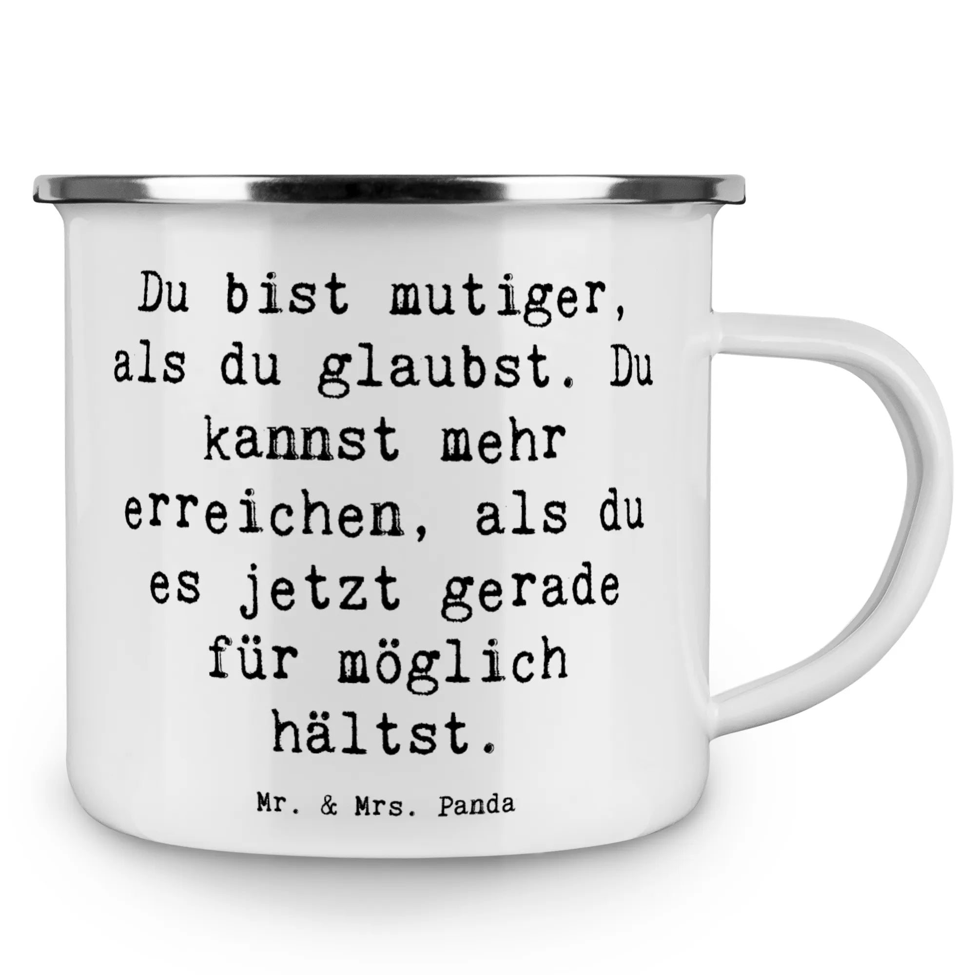 Enamel camping mug Saying Du bist mutiger, als du glaubst. Du kannst mehr erreichen, als du es jetzt gerade für möglich hältst.