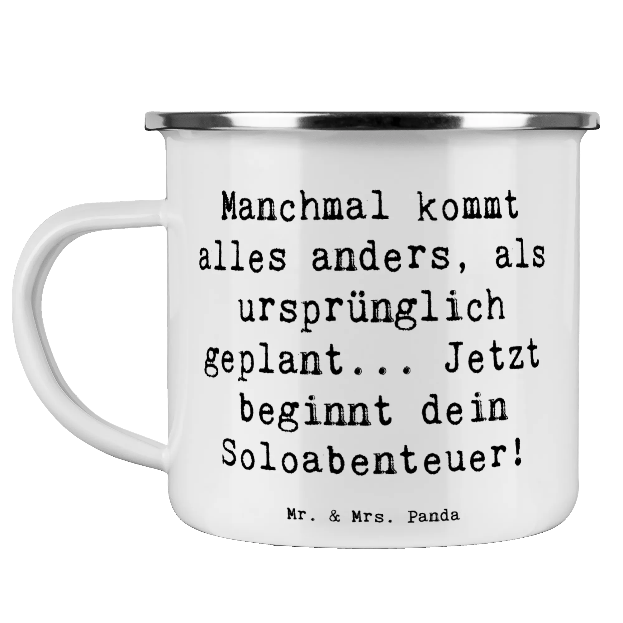 Enamel camping mug Saying Manchmal kommt alles anders, als ursprünglich geplant... Jetzt beginnt dein Soloabenteuer!