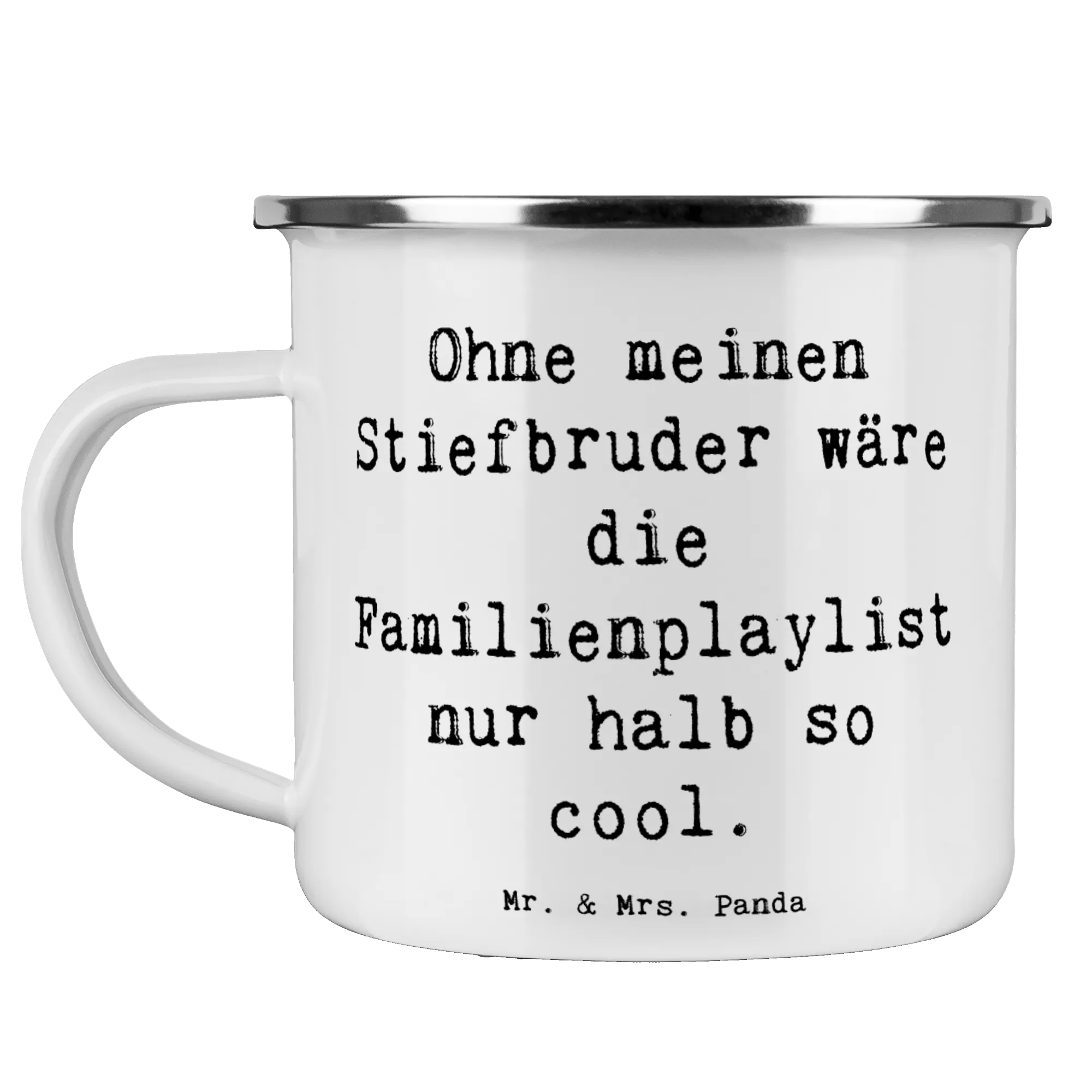 Enamel camping mug Saying Ohne meinen Stiefbruder wäre die Familienplaylist nur halb so cool.