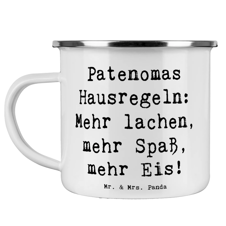Enamel camping mug Saying Patenomas Hausregeln: Mehr lachen, mehr Spaß, mehr Eis!