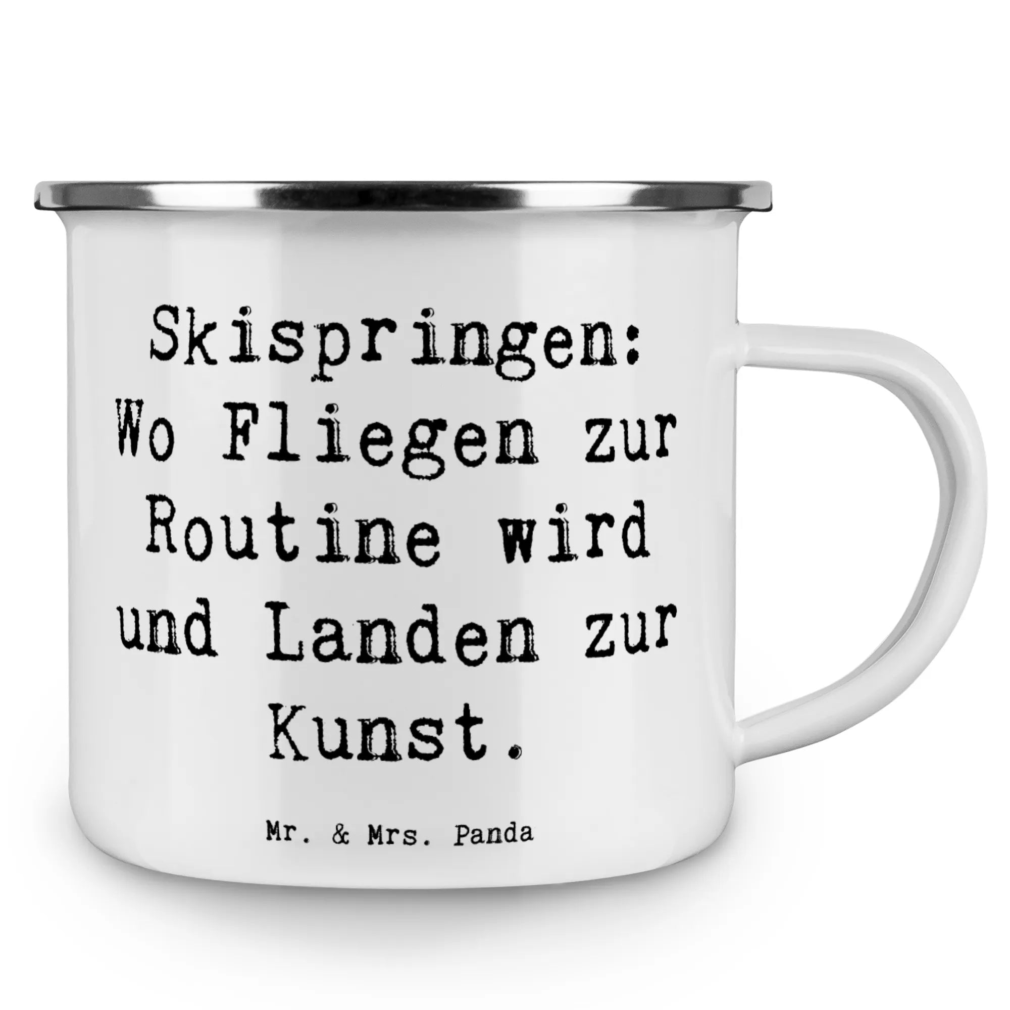 Enamel camping mug Saying Skispringen: Wo Fliegen zur Routine wird und Landen zur Kunst.