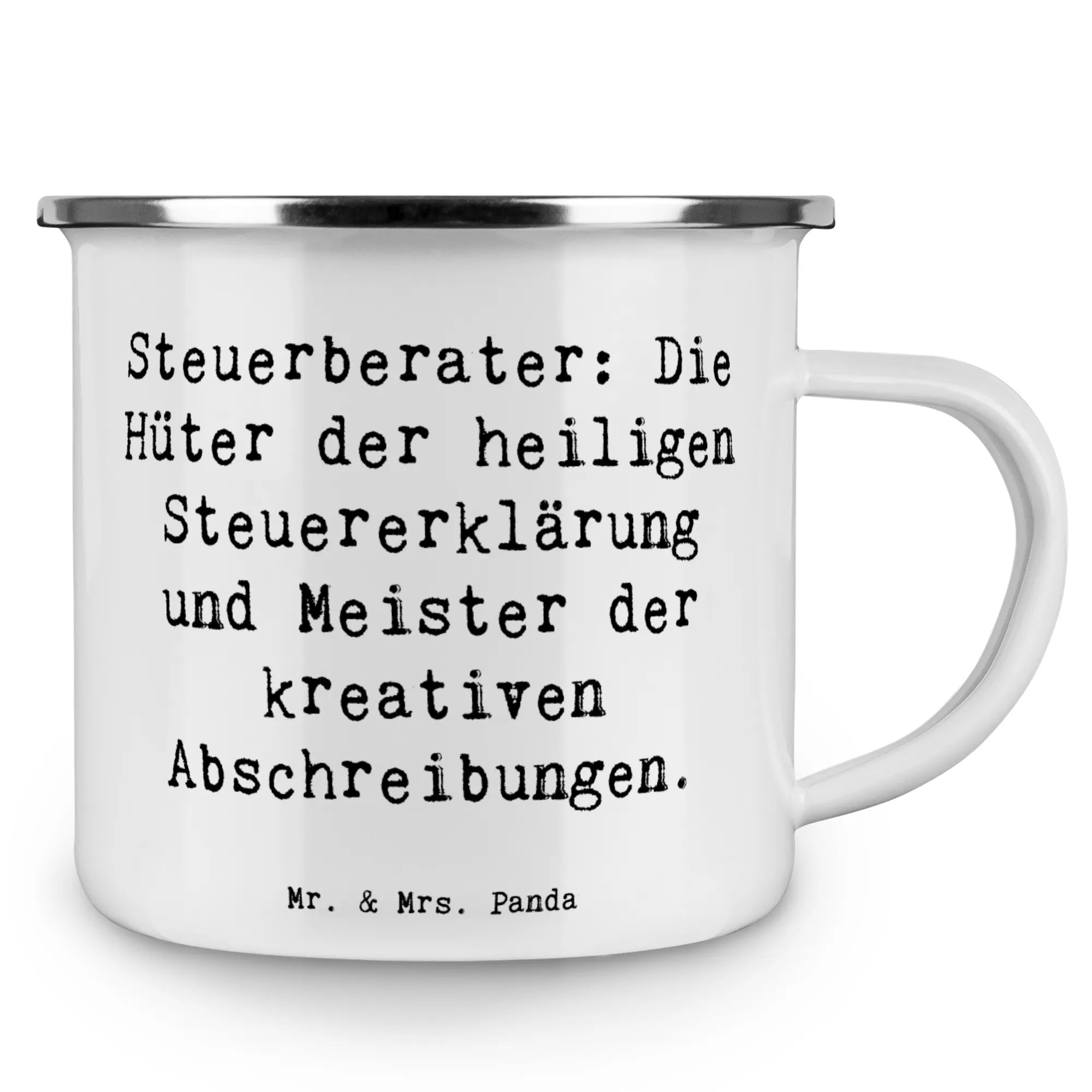 Enamel camping mug Saying Steuerberater: Die Hüter der heiligen Steuererklärung und Meister der kreativen Abschreibungen.