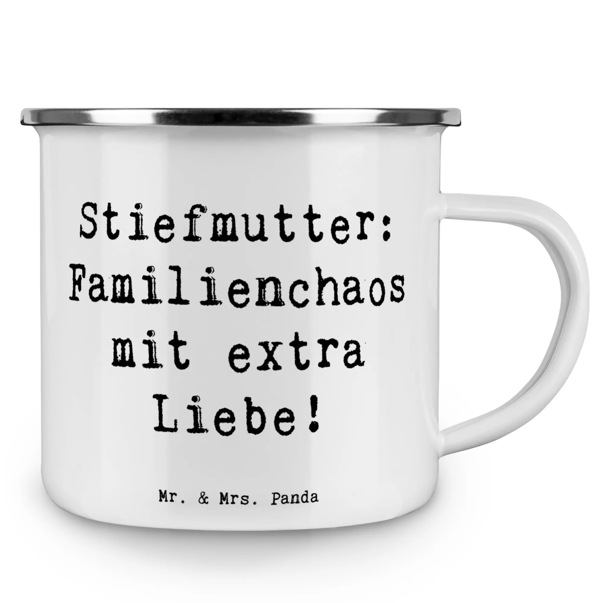 Enamel camping mug Saying Stiefmutter: Familienchaos mit extra Liebe!
