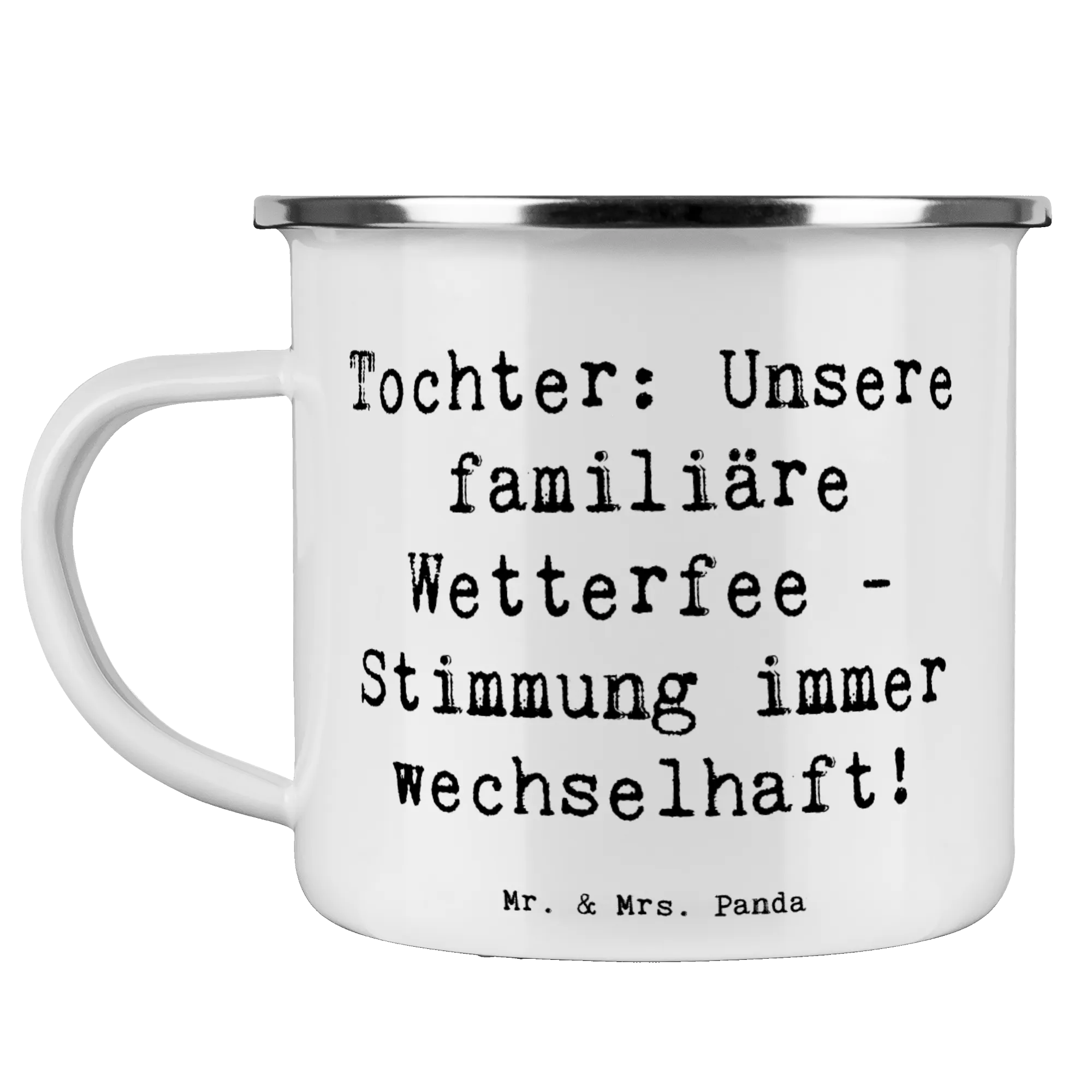 Enamel camping mug Saying Tochter: Unsere familiäre Wetterfee. Die Stimmung immer wechselhaft!