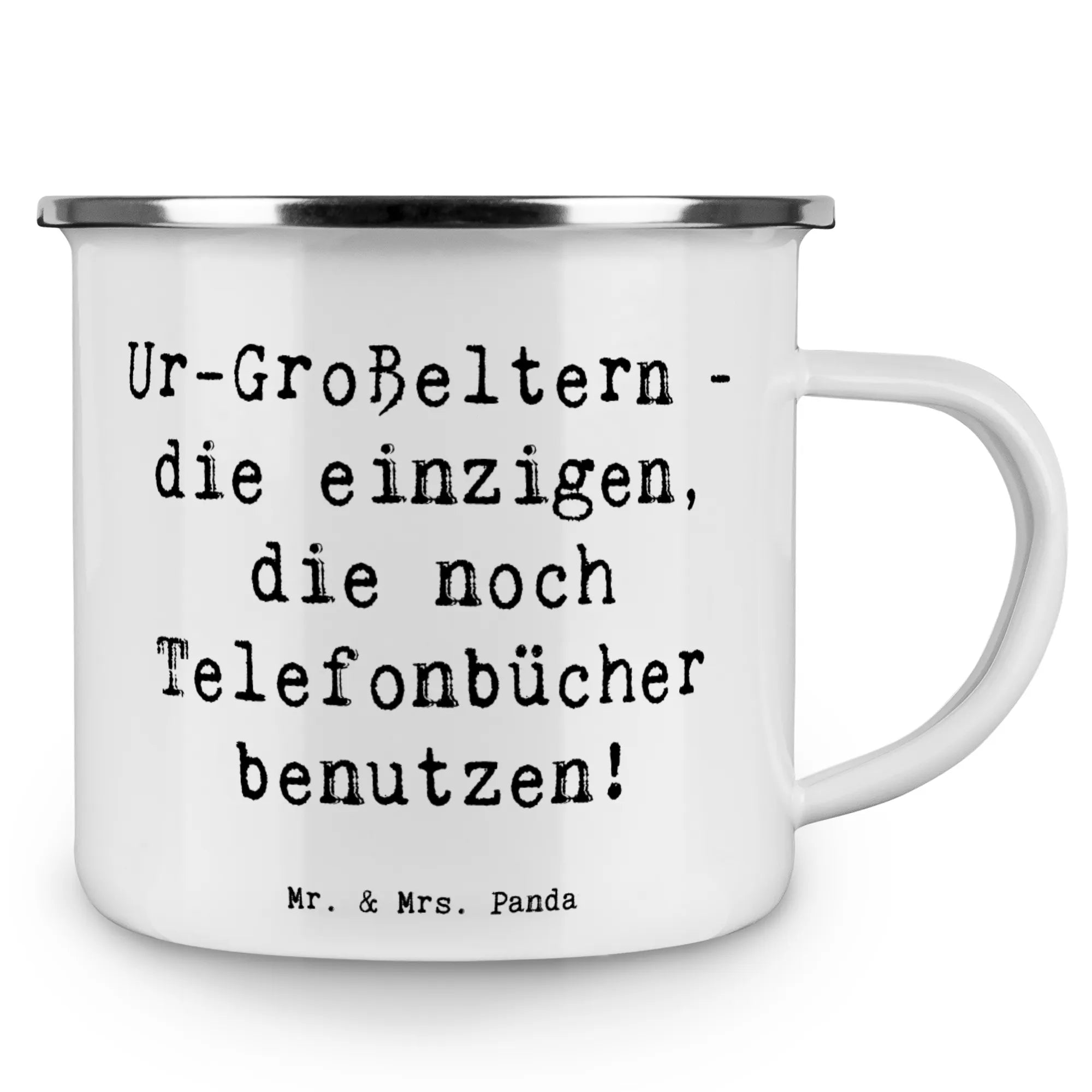 Enamel camping mug Saying Ur-Großeltern: die einzigen, die noch Telefonbücher benutzen!