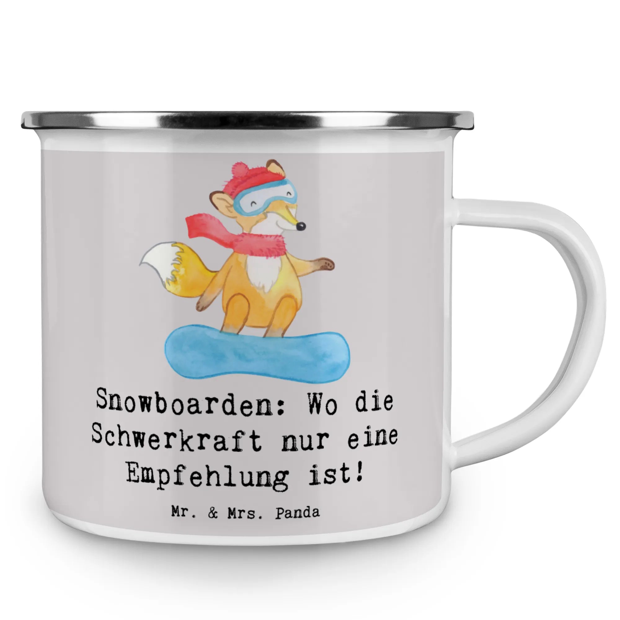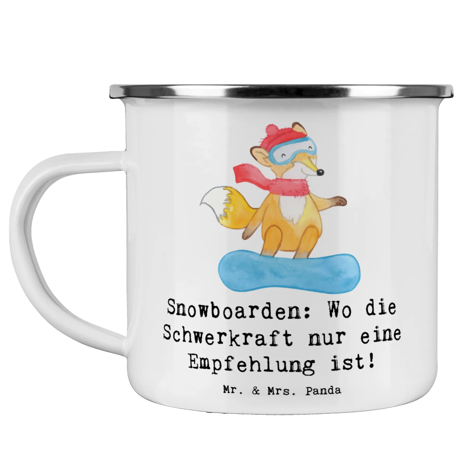 Enamel camping mug Snowboarden: Wo die Schwerkraft nur eine Empfehlung ist! - White