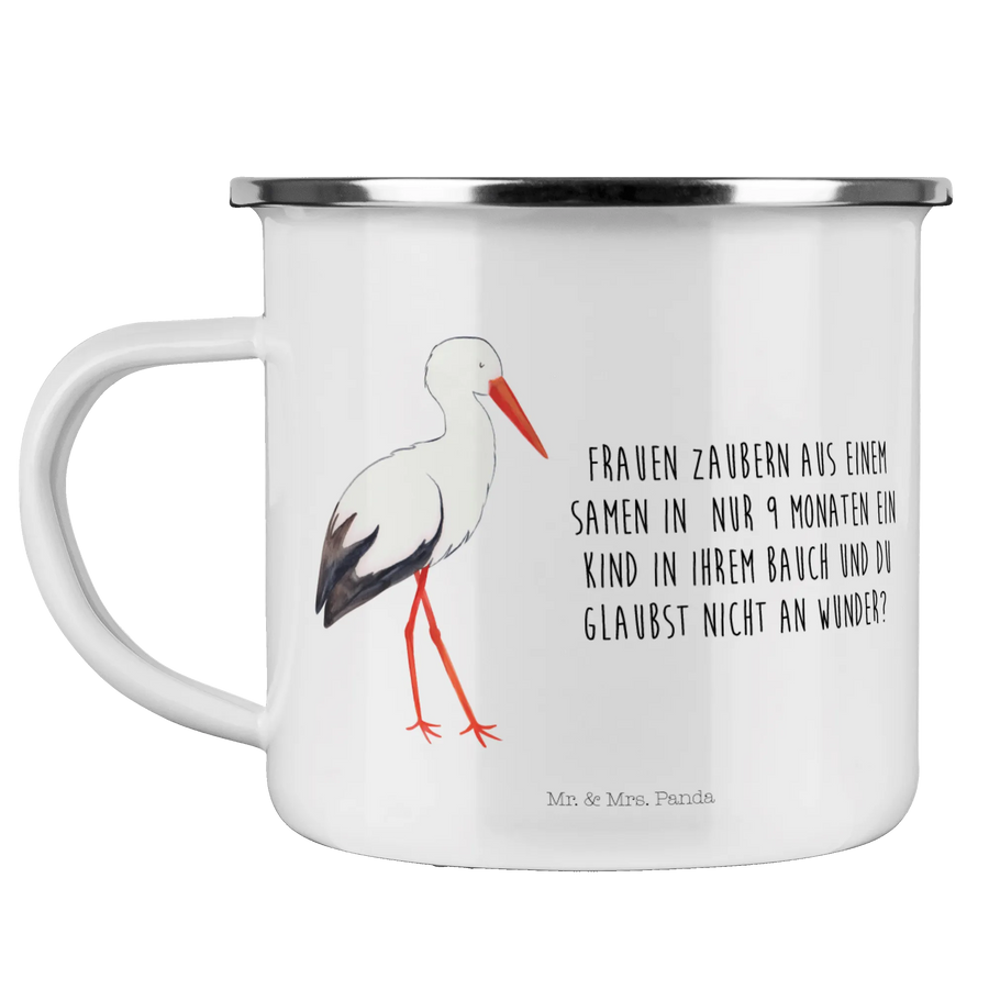 Crafted with love, this enamel mug is not just a practical accessory for camping or hiking; it’s a wonderful piece that sparks smiles. Imagine a rosy-cheeked expectant mother sipping her morning coffee or tea while relaxing at a campsite, recalling the joy and excitement of the new life she is nurturing. The stork motif, symbolizing birth and new beginnings, makes this camping mug a thoughtful gesture for baby showers, gender reveal parties, or as a delightful gift to congratulate a friend on their pregnancy. It serves as a memorable keepsake, reminding them of the magical moments ahead.