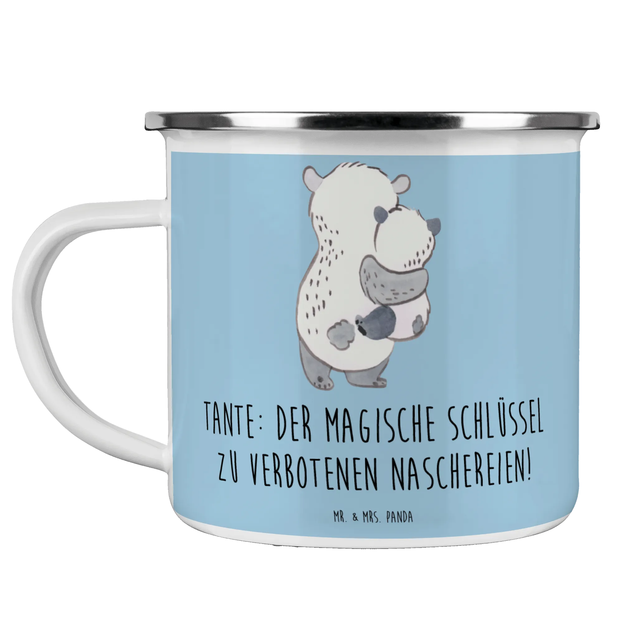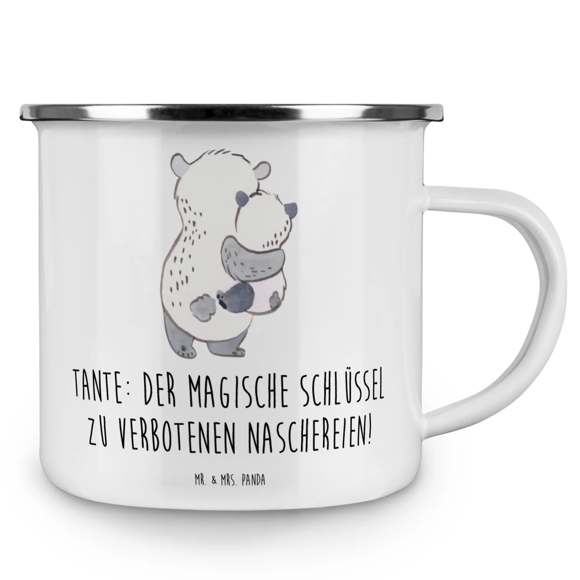 Enamel camping mug Tante: Der magische Schlüssel zu verbotenen Naschereien! - White