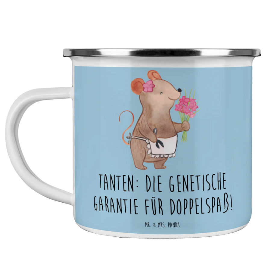 Enamel camping mug Tanten: Die genetische Garantie für Doppelspaß! - Blue Pastel