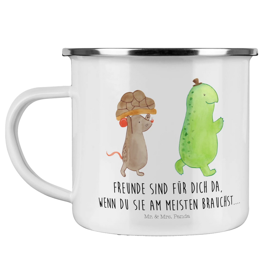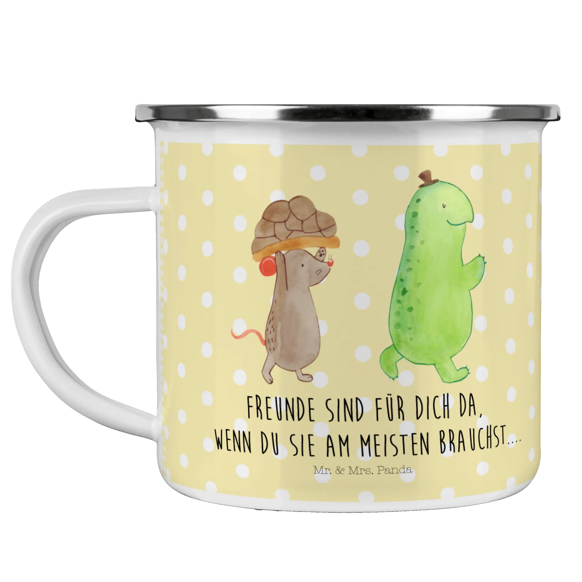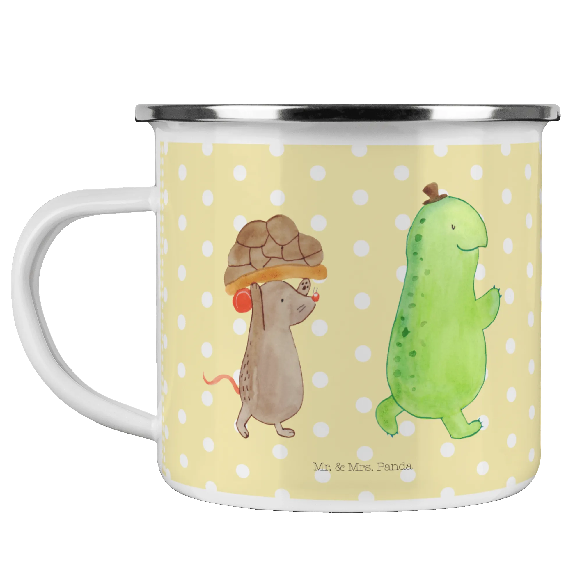 Introducing the enchanting Mr. & Mrs. Panda Enamel Camping Mug featuring the adorable Turtle & Mouse design! This delightful enamel mug is not just a stylish companion for your adventures, but also a heartwarming reminder of friendship and togetherness. The whimsical imagery of a cute turtle paired with a tiny mouse, embarking on a joyful adventure, will fill your camping trips, hikes, and outdoor excursions with warmth and happiness.