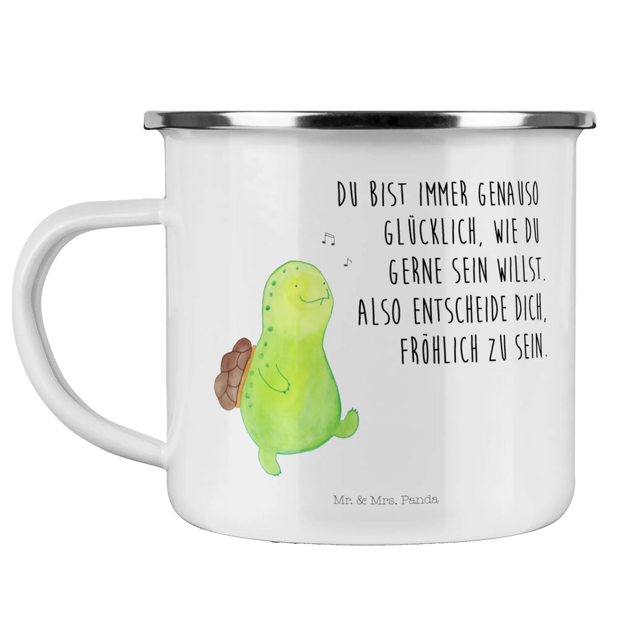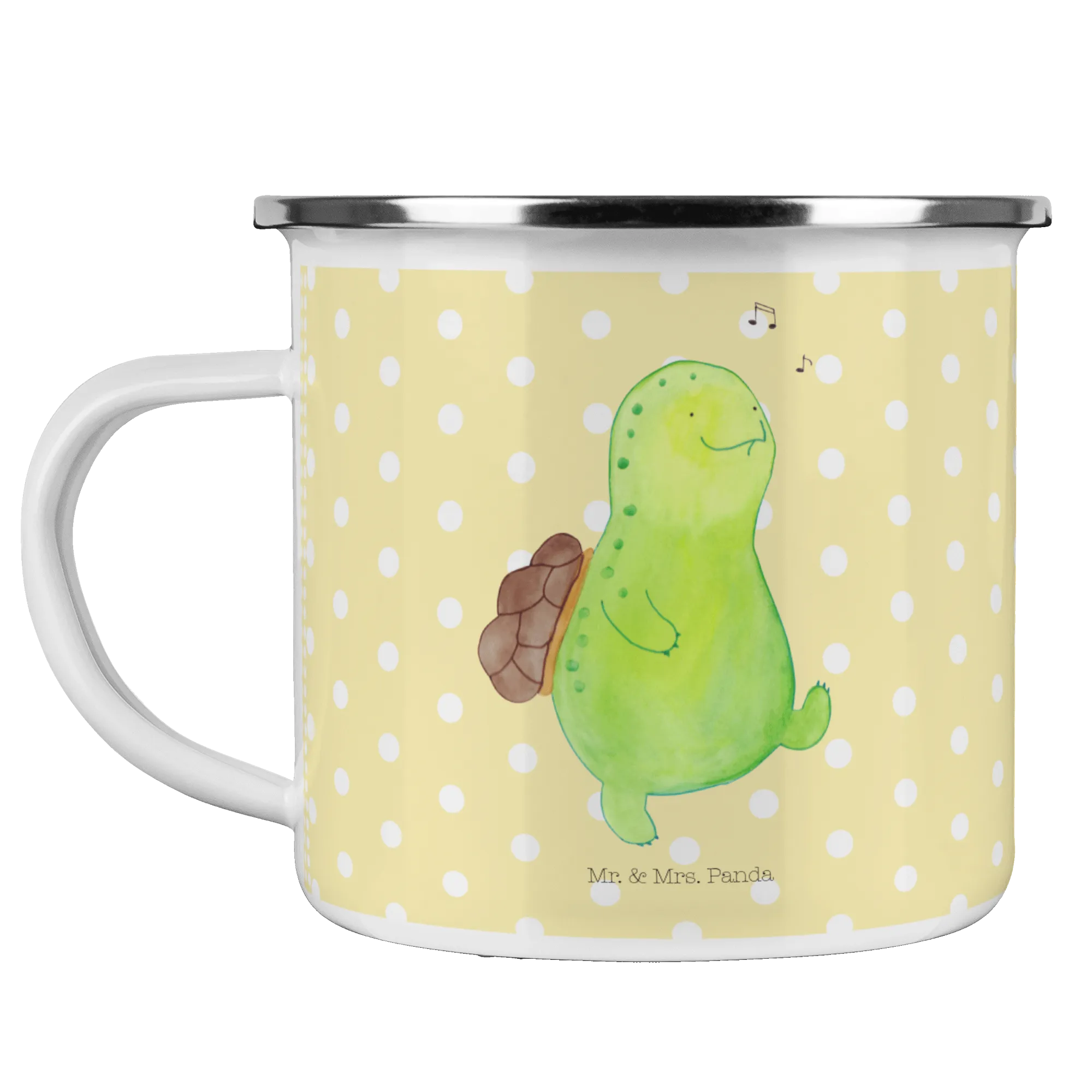 Introducing the perfect companion for your outdoor adventures—the Mr. & Mrs. Panda Whistling Turtle Enamel Camping Mug! This delightful metal cup is designed with the cute and charming motif of a happy whistling turtle, brilliantly capturing the joy of life.