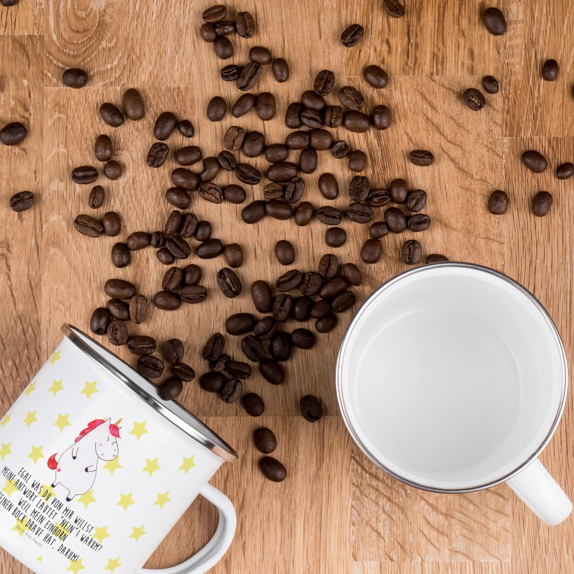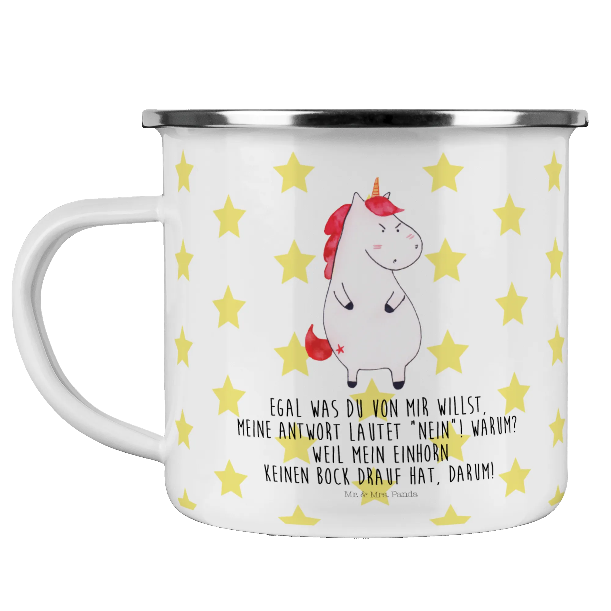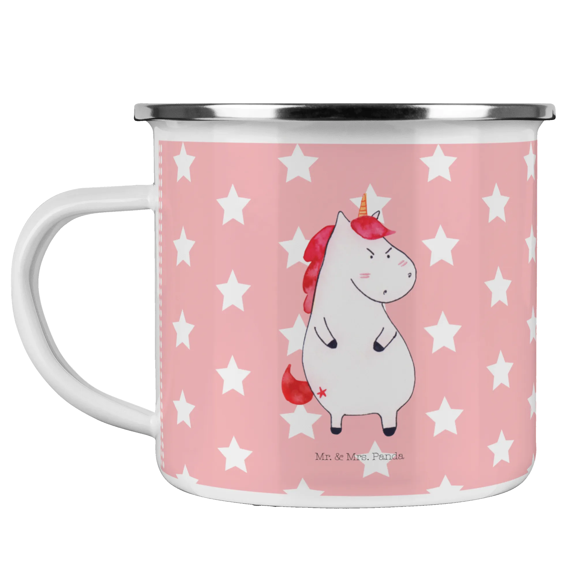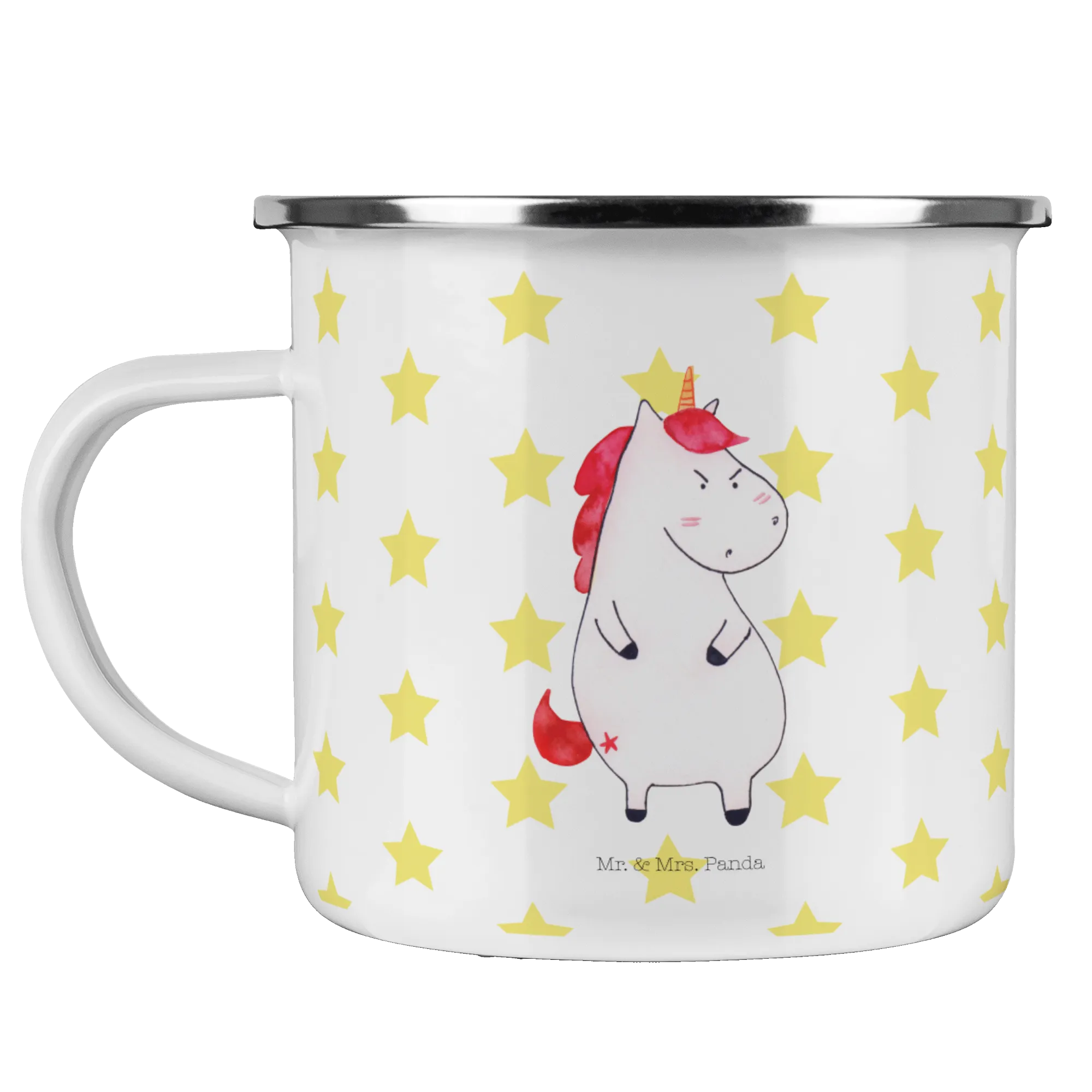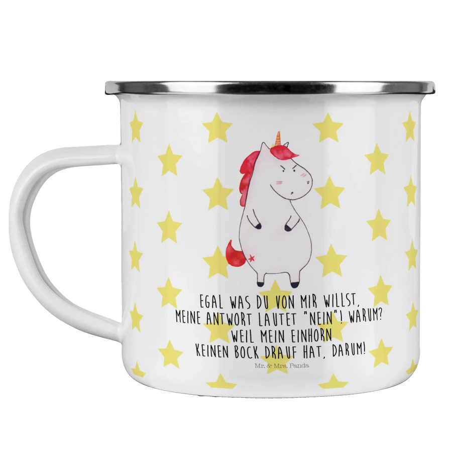 Introducing our delightful Enamel Camping Mug featuring the amusing Unicorn Angry motif from the beloved Unicorn Collection by Mr. & Mrs. Panda!