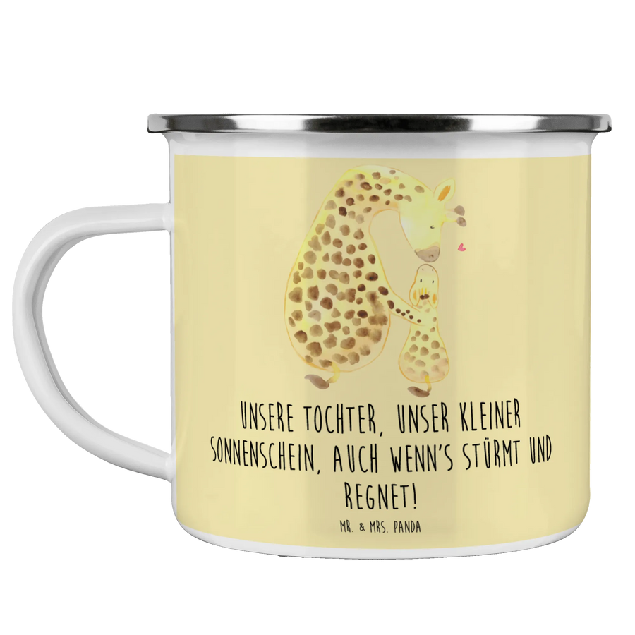 Enamel camping mug Unsere Tochter, unser kleiner Sonnenschein, auch wenn's stürmt und regnet! - Yellow Pastel