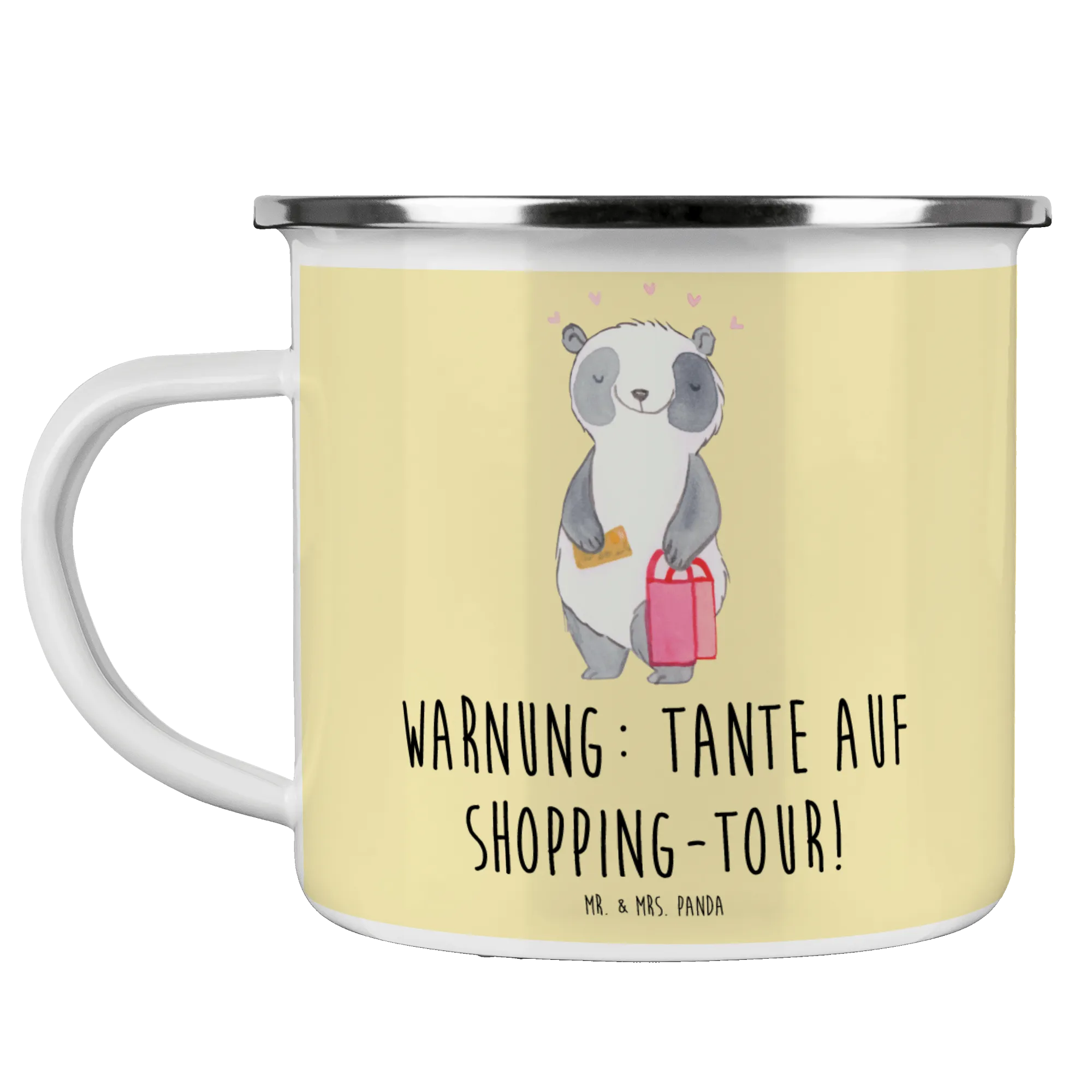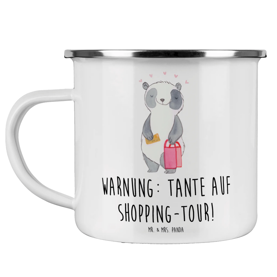 Enamel camping mug Warnung: Tante auf Shopping-Tour! - White