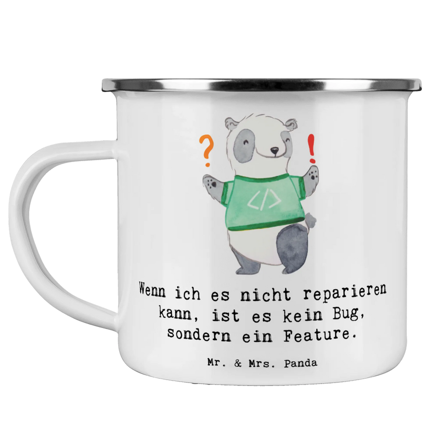 Enamel camping mug Wenn ich es nicht reparieren kann, ist es kein Bug, sondern ein Feature. - White