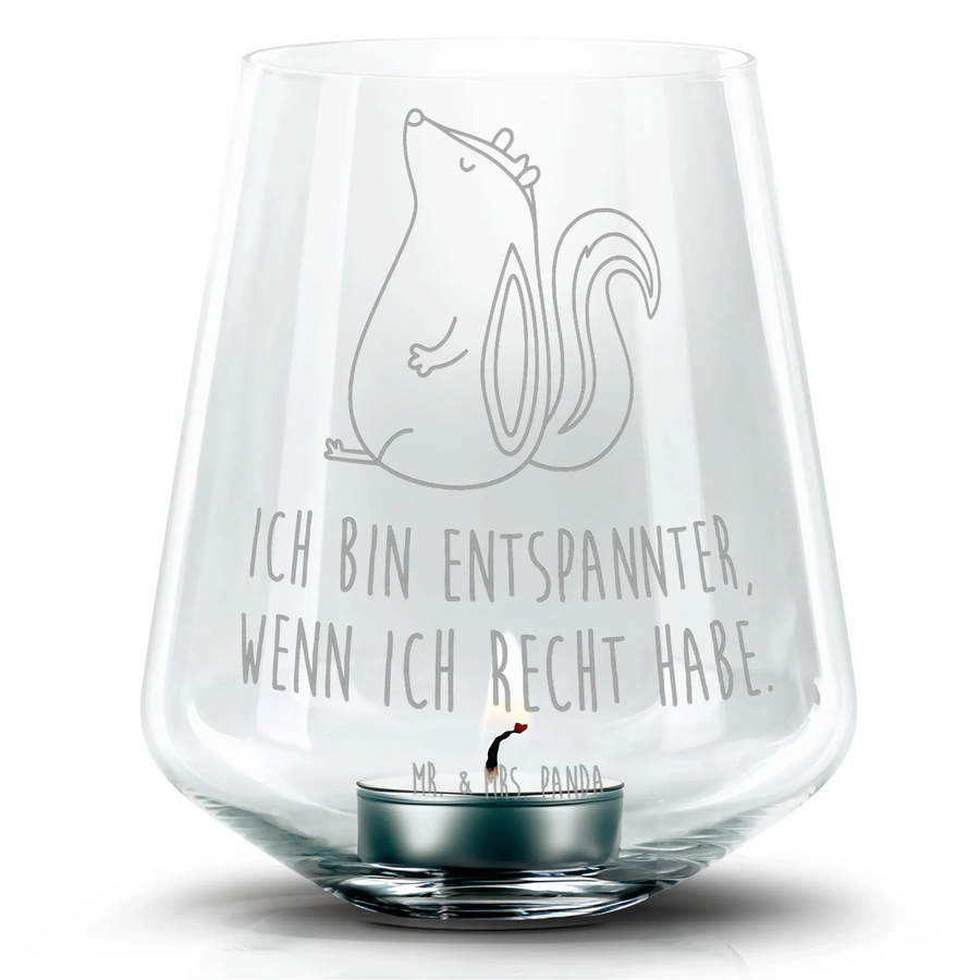 Gravur Windlicht Stinktier Sitzen Gravur Windlicht, Teelicht, Romatisches Windlicht, Teelichthalter, Windlicht aus Glas, Stinktier, Skunk, Spruch, Stinker, Raubtier, Recht, Besserwisser, Stinki, Büro, Wildtier