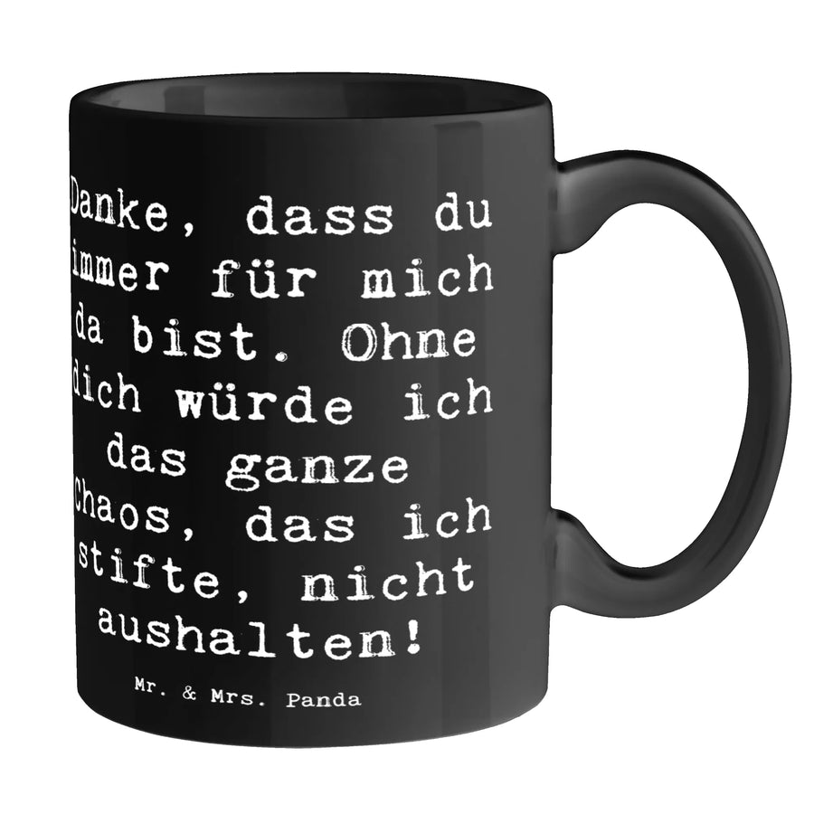 Mug Saying Danke, dass du immer für mich da bist. Ohne dich würde ich das ganze Chaos, das ich stifte, nicht aushalten! - Black