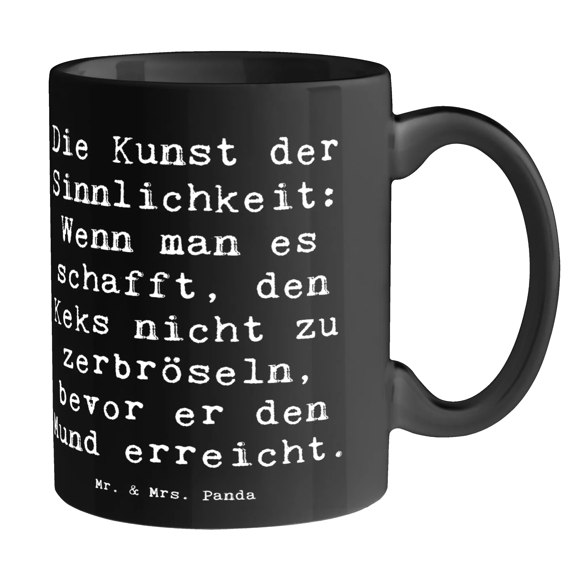 Mug Saying Die Kunst der Sinnlichkeit: Wenn man es schafft, den Keks nicht zu zerbröseln, bevor er den Mund erreicht. - Black