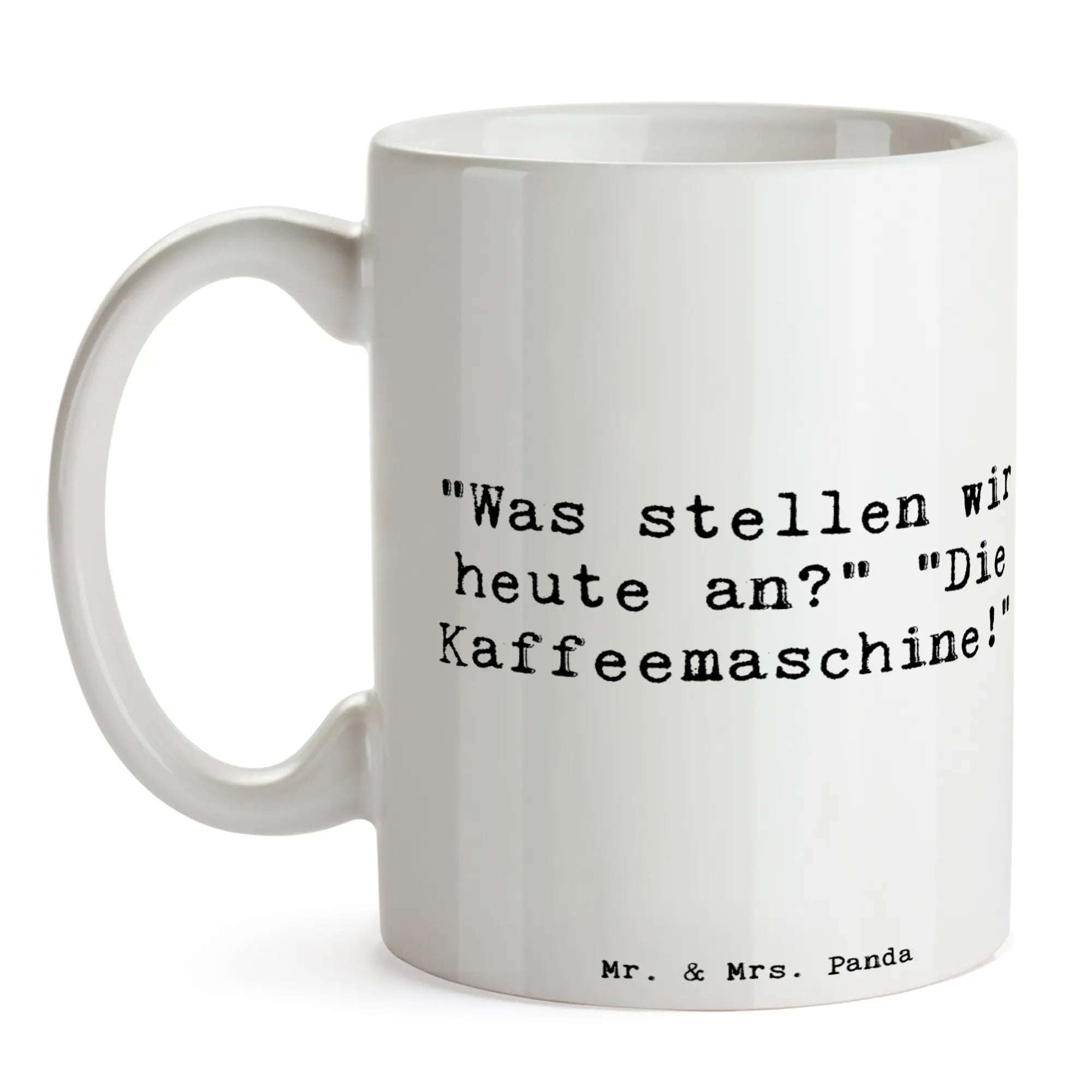 Mug Saying "Was stellen wir heute an?" "Die Kaffeemaschine!" – Mr. & Mrs. Panda