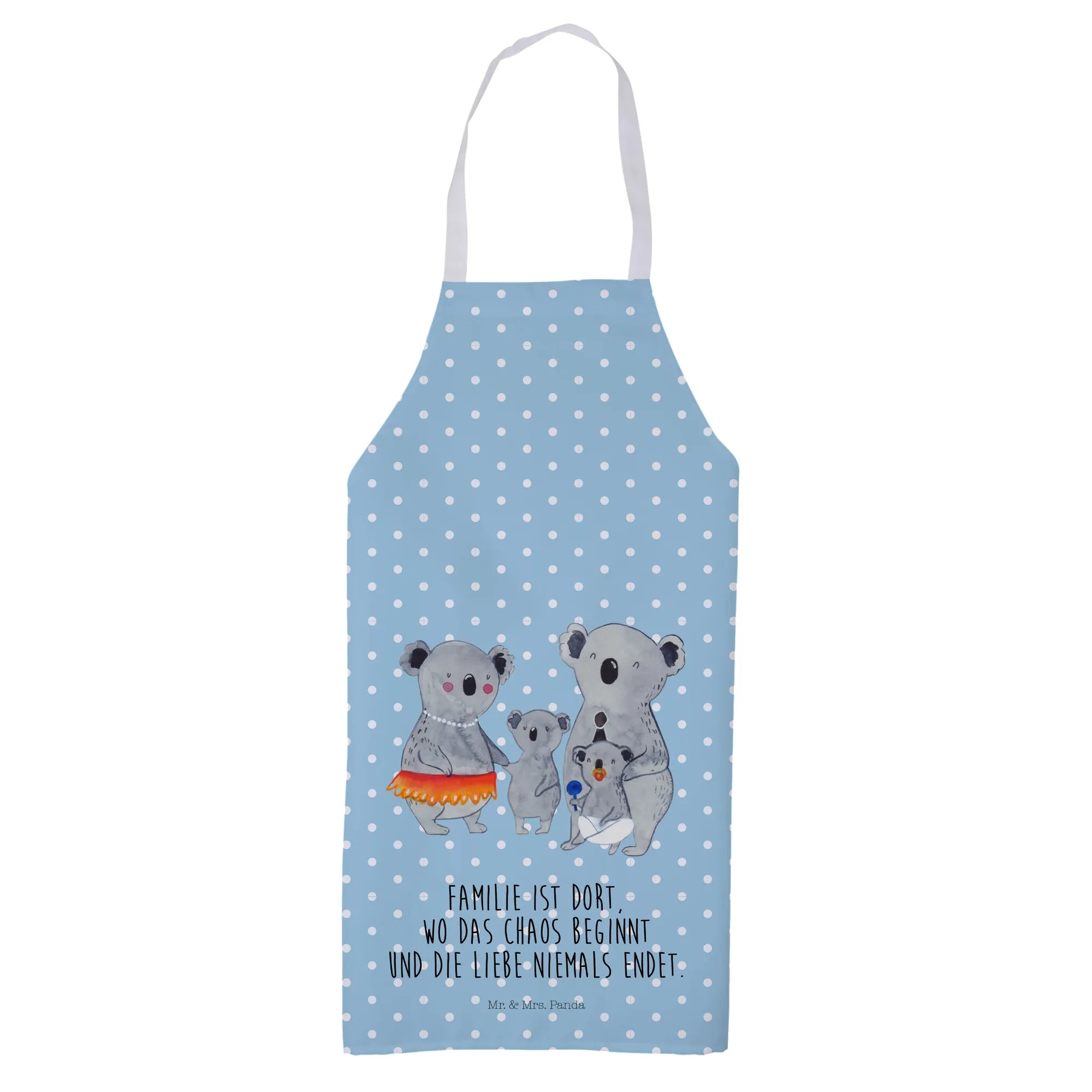 The charming design features a lovely Koala Family motif, capturing the essence of family life beautifully. Picture this: two larger koalas dressed up with a pearl necklace and a party hat, standing proudly alongside two smaller, playful koalas. One of the little ones is sporting a bib, while the other holds a toy, all depicted with bright smiles and twinkling eyes. This heartwarming illustration makes the Koala Family apron a wonderful addition to any kitchen and will surely become a beloved favorite for moms, dads, and kids alike.