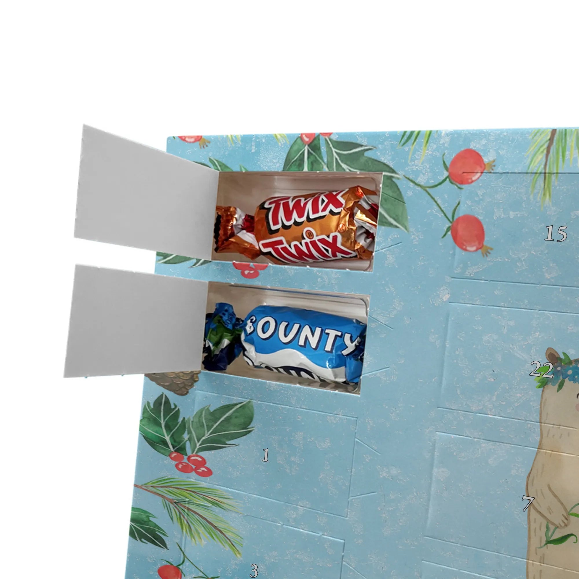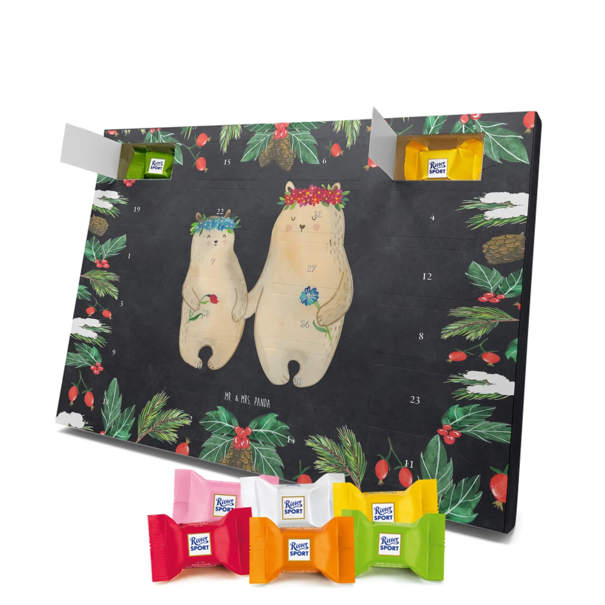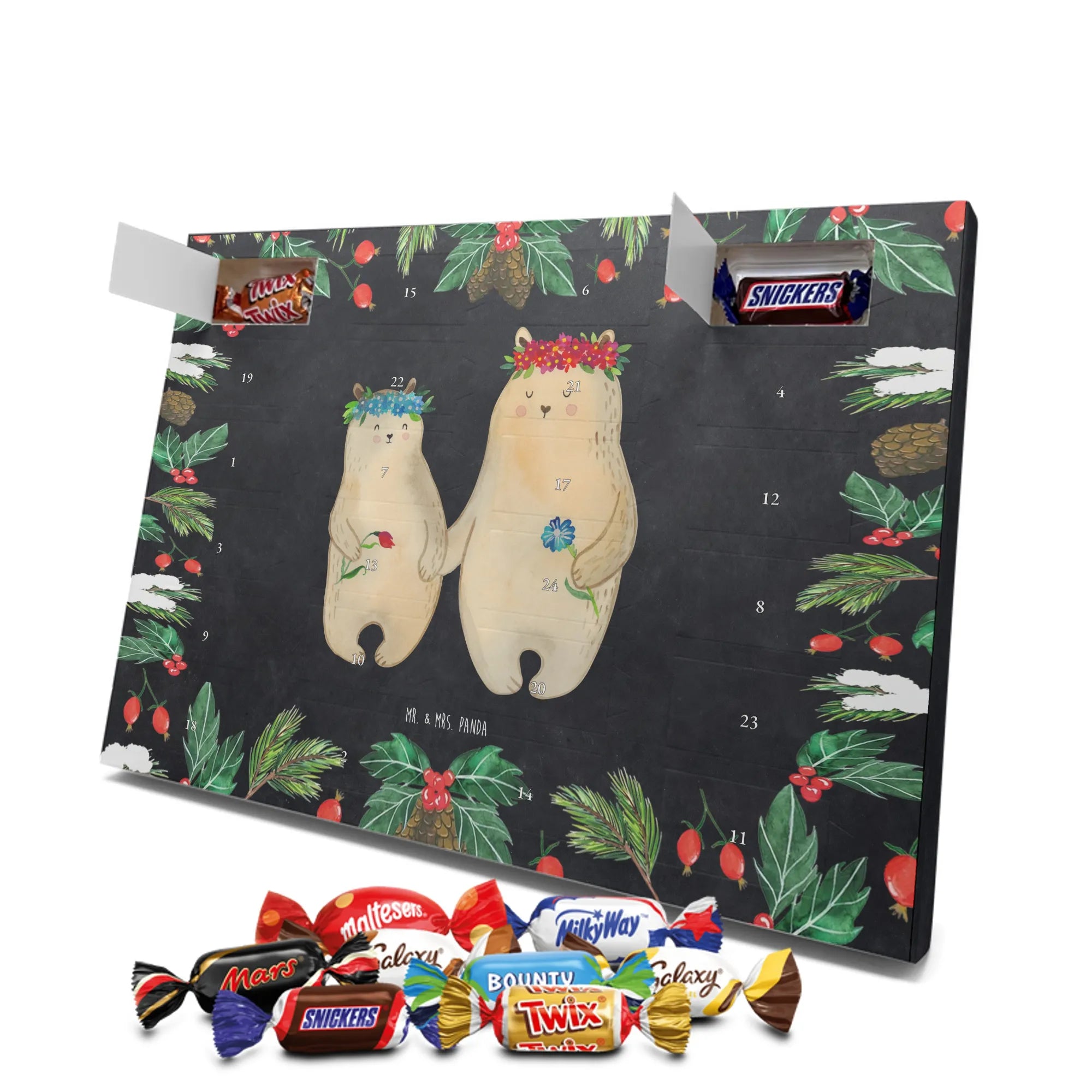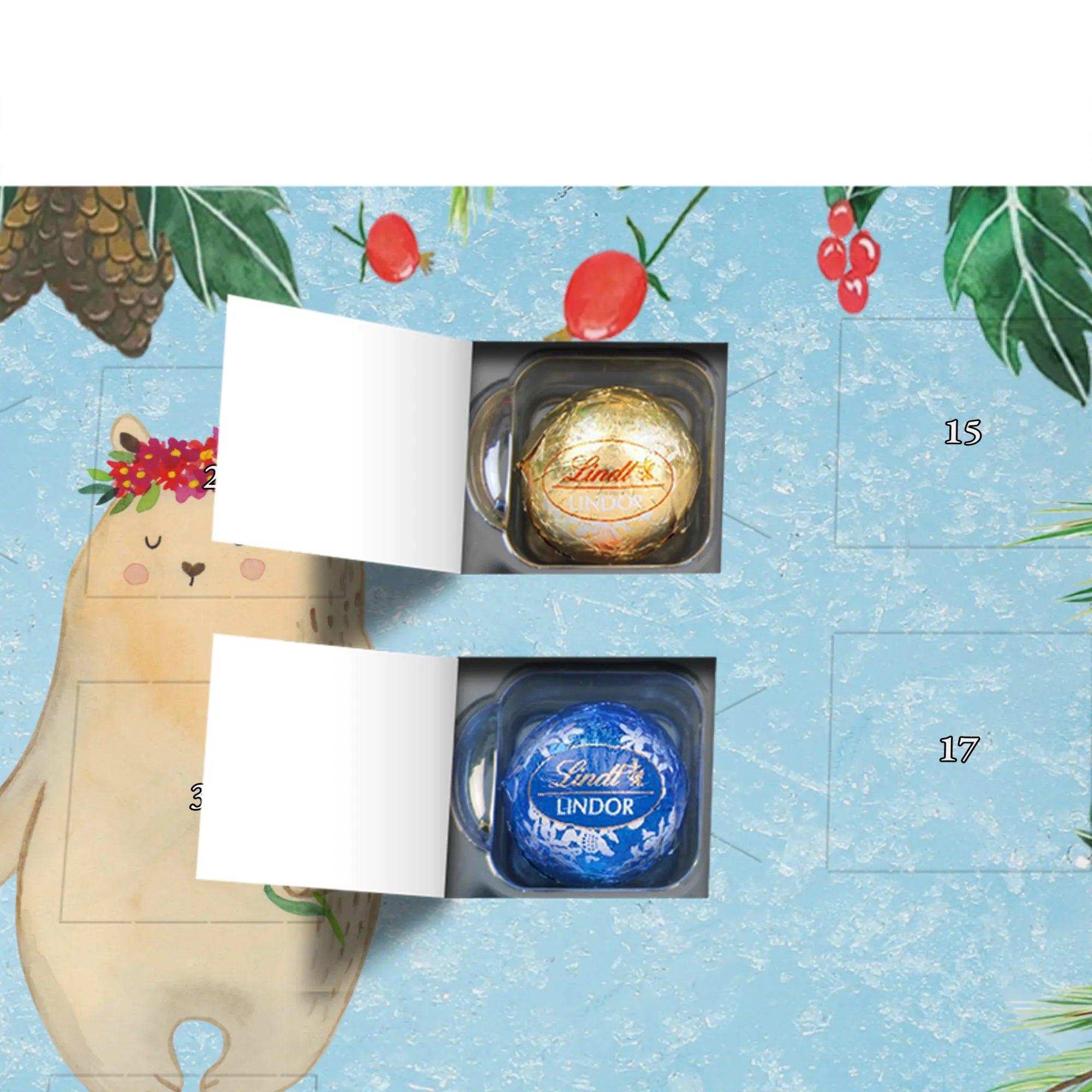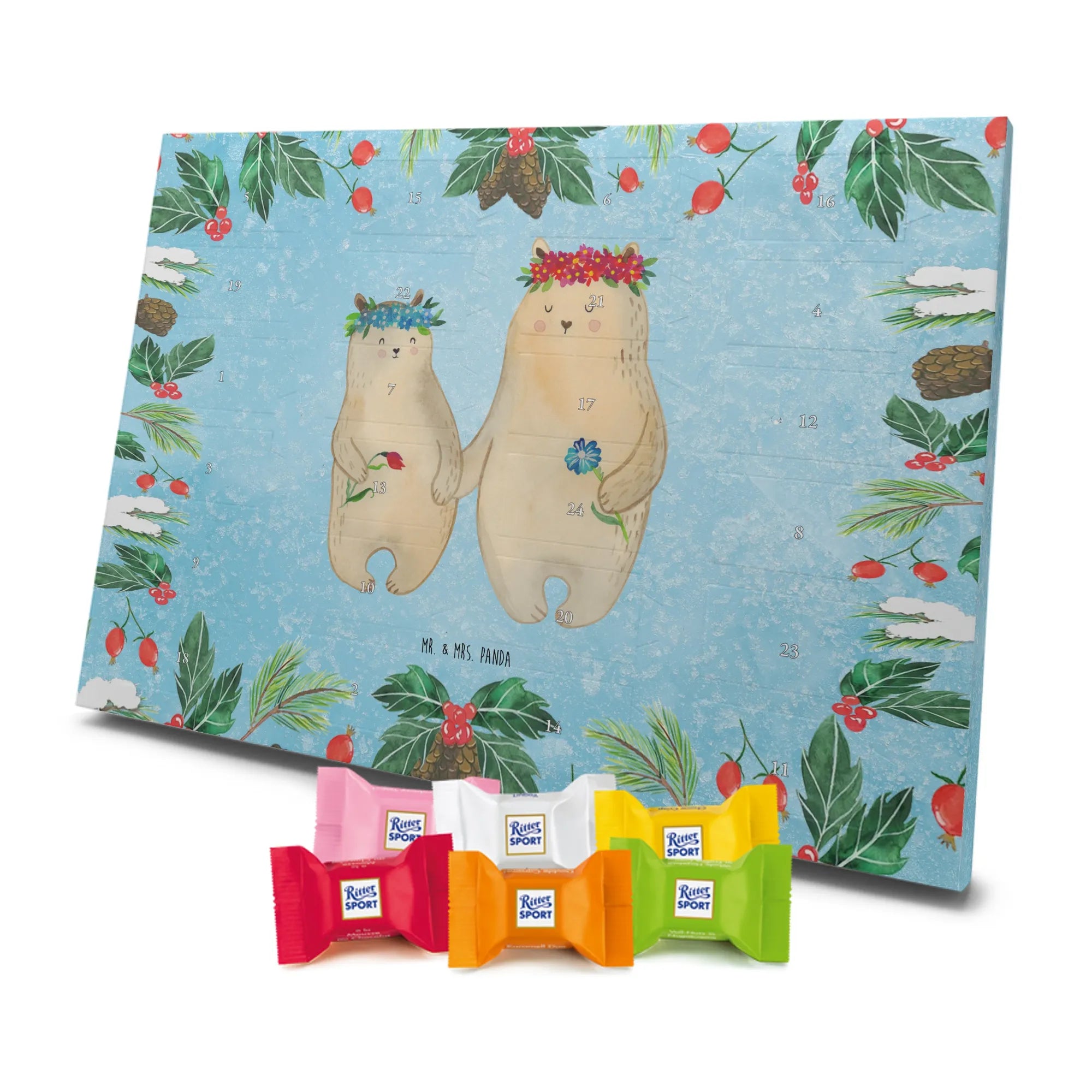 Chocolate advent calendar Bears with flower crown - Classic - with saying - Ice Blue