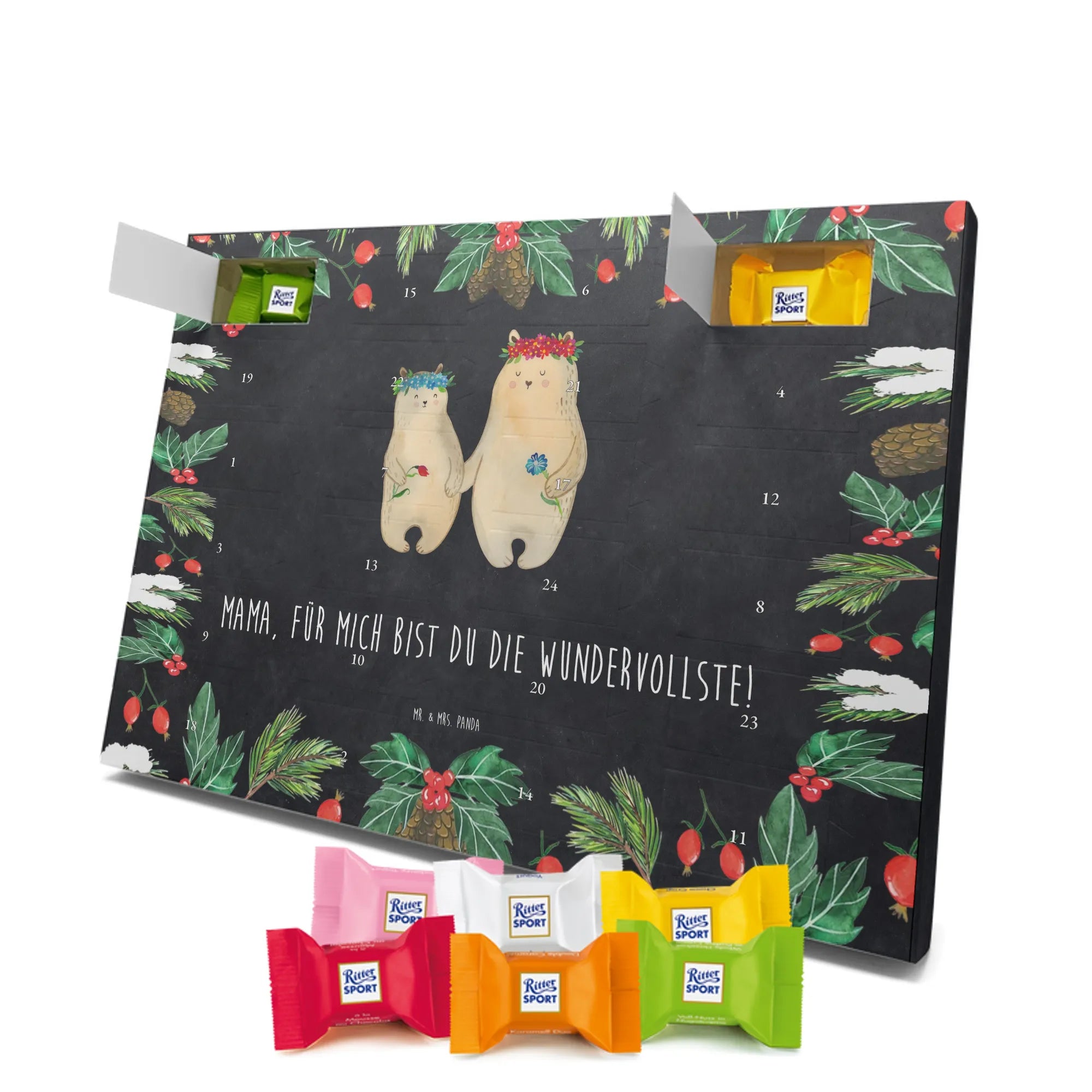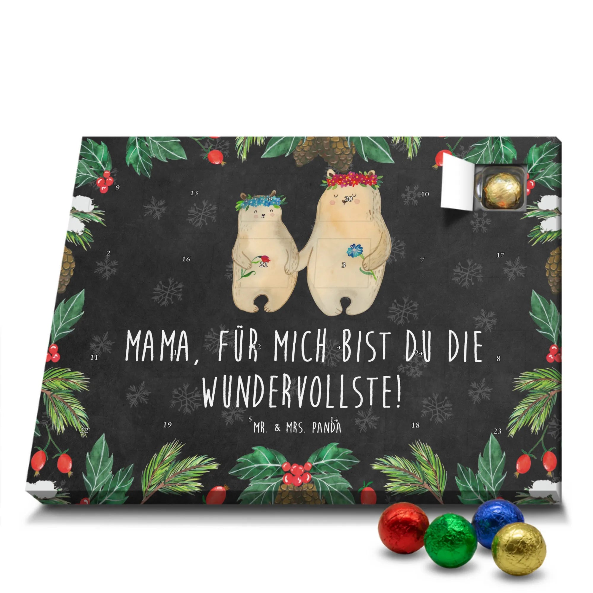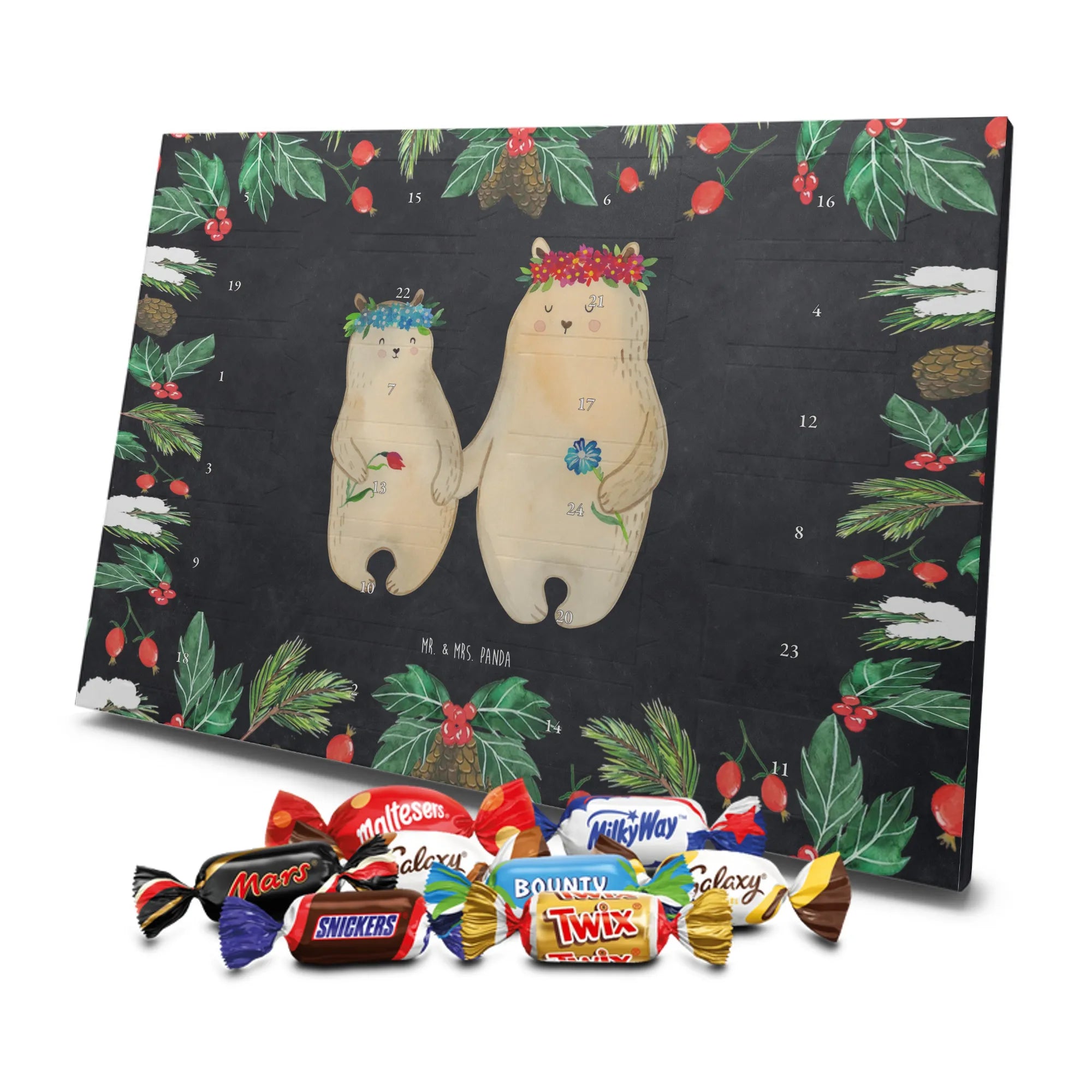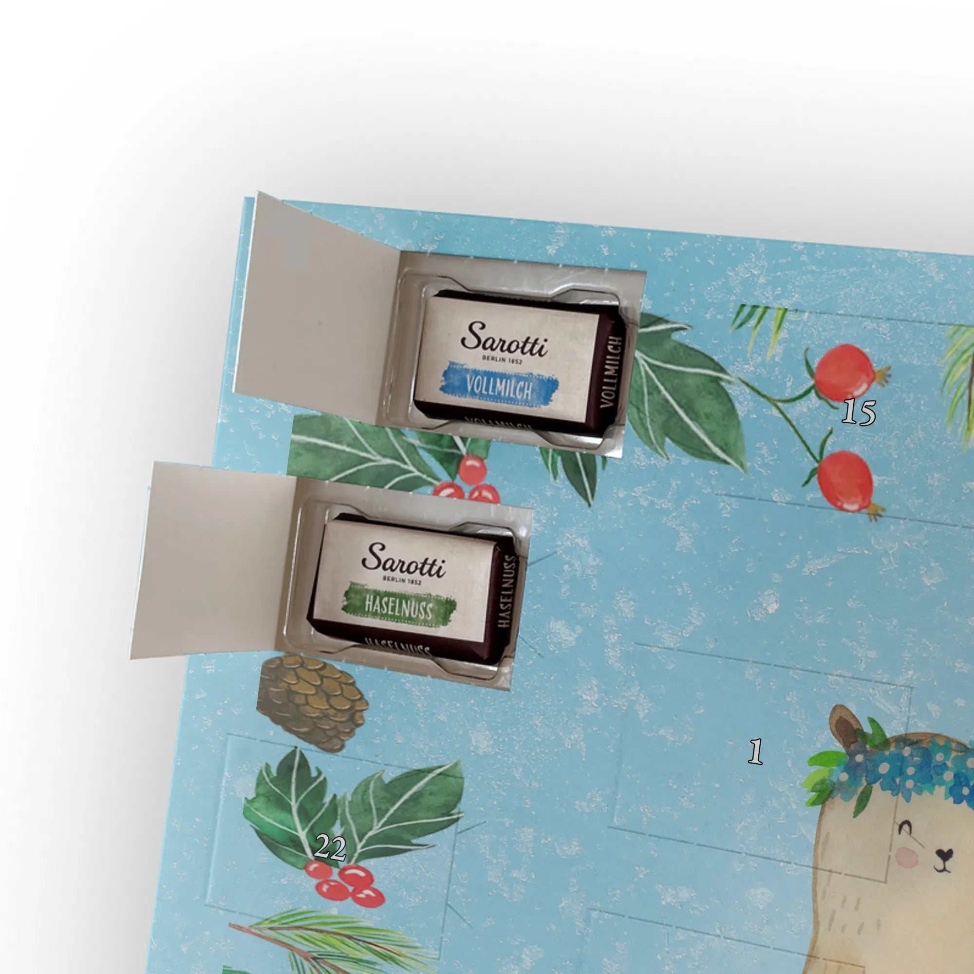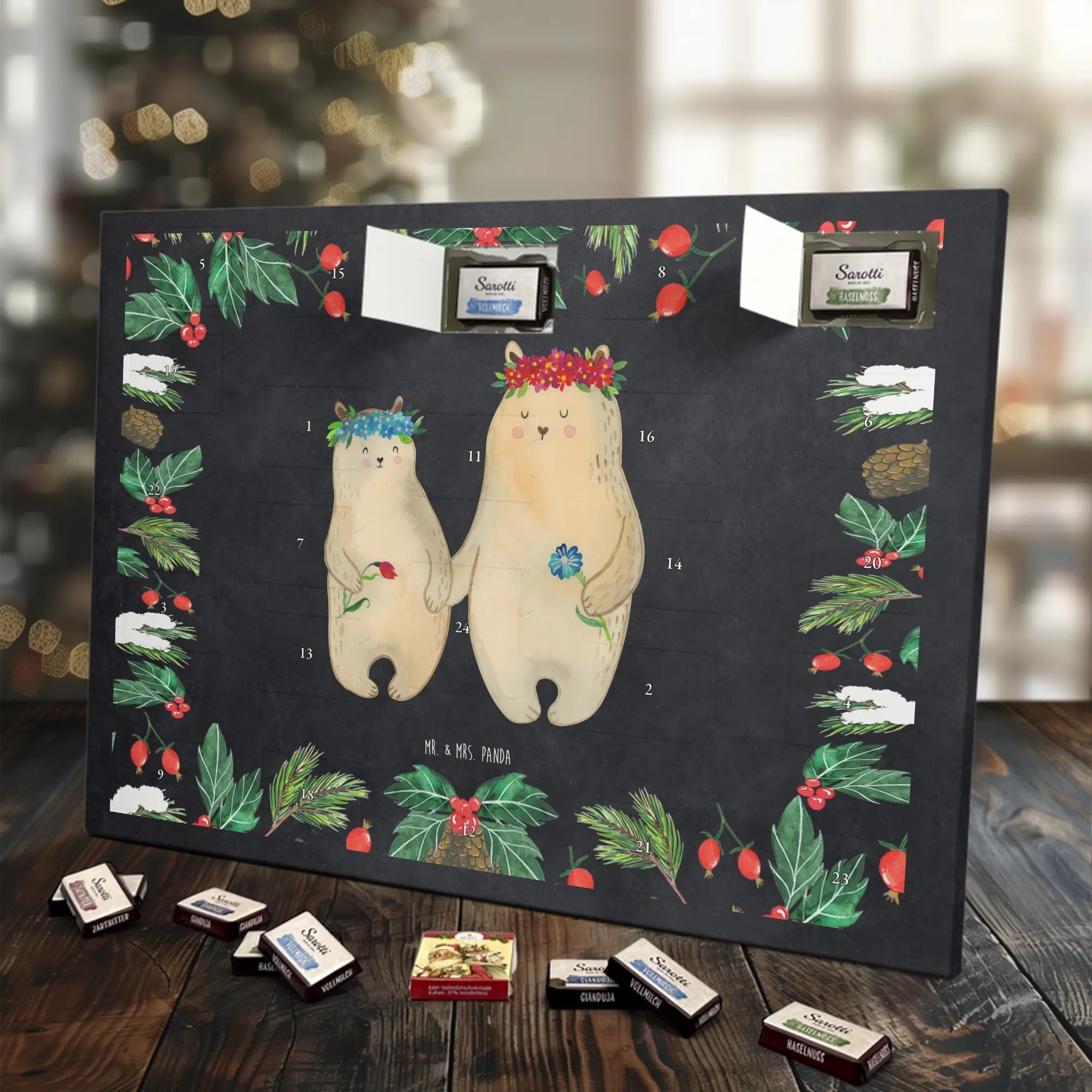 Chocolate advent calendar Bears with flower crown - Classic - with saying - Ice Blue