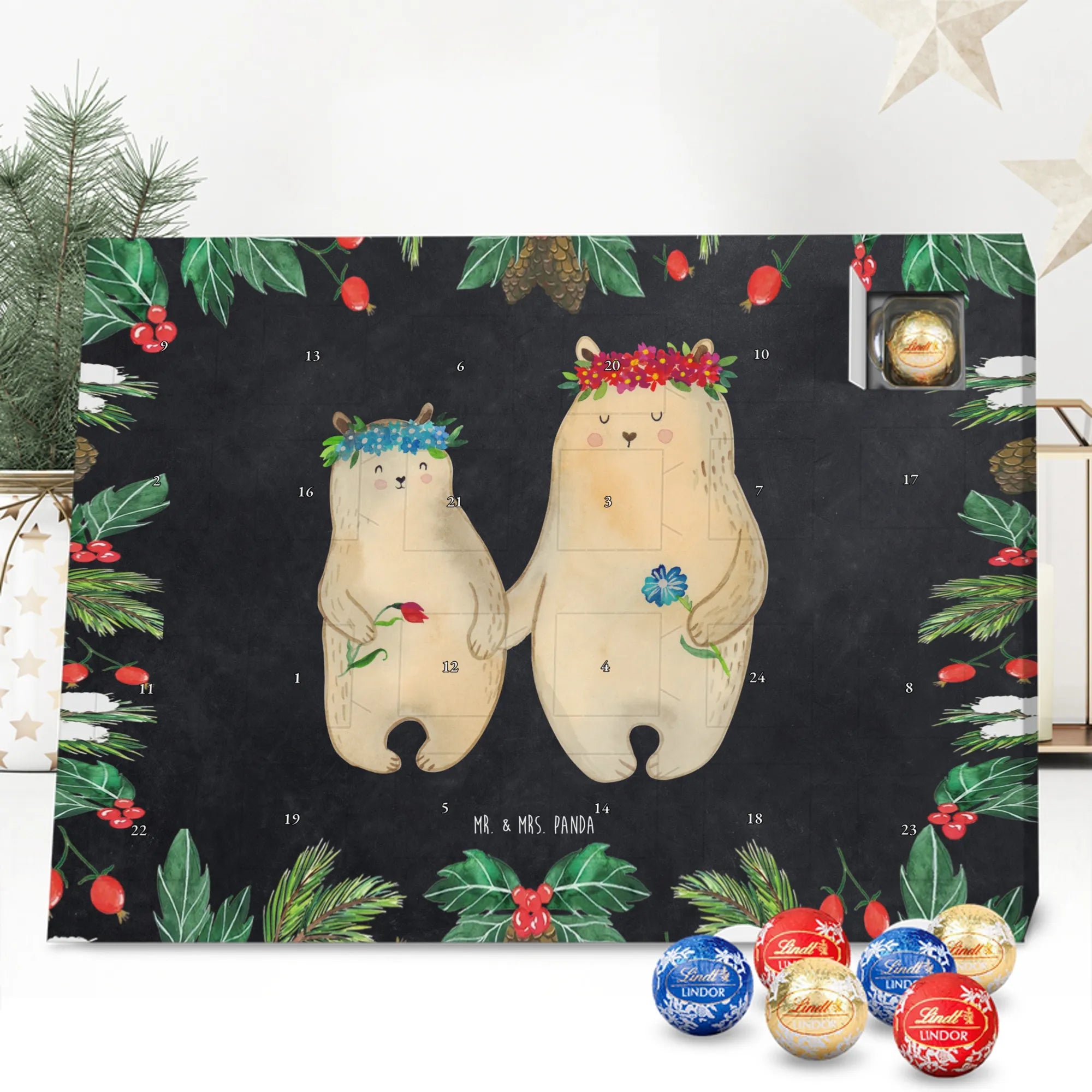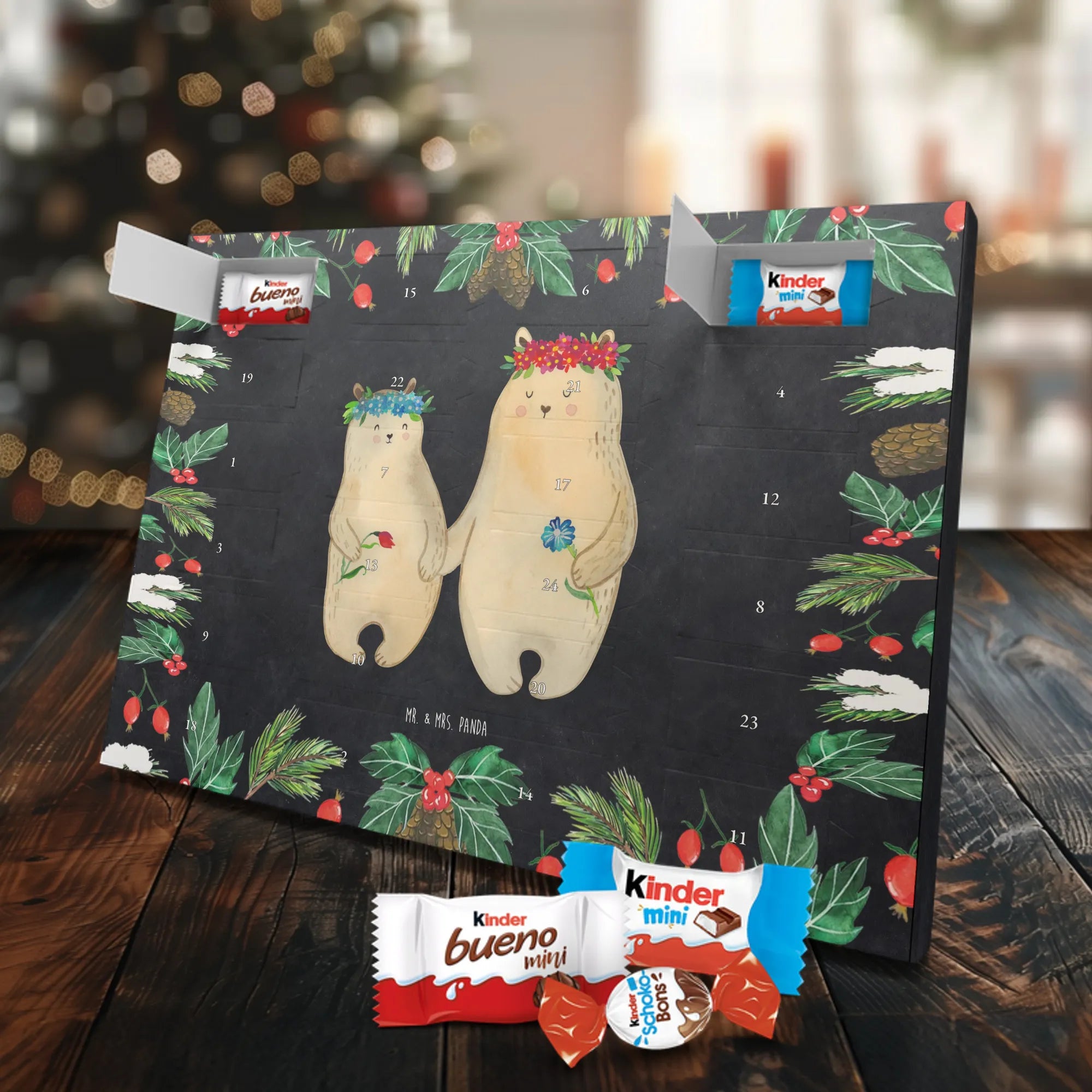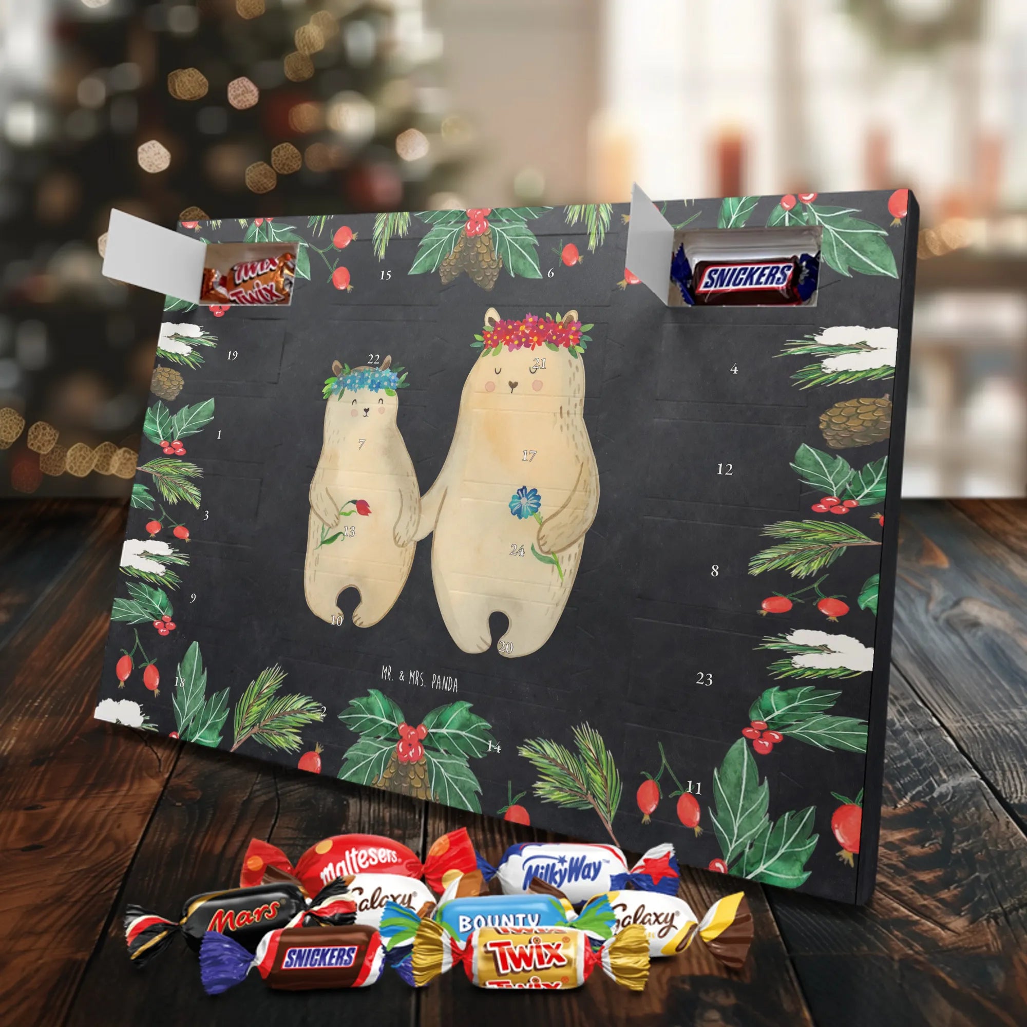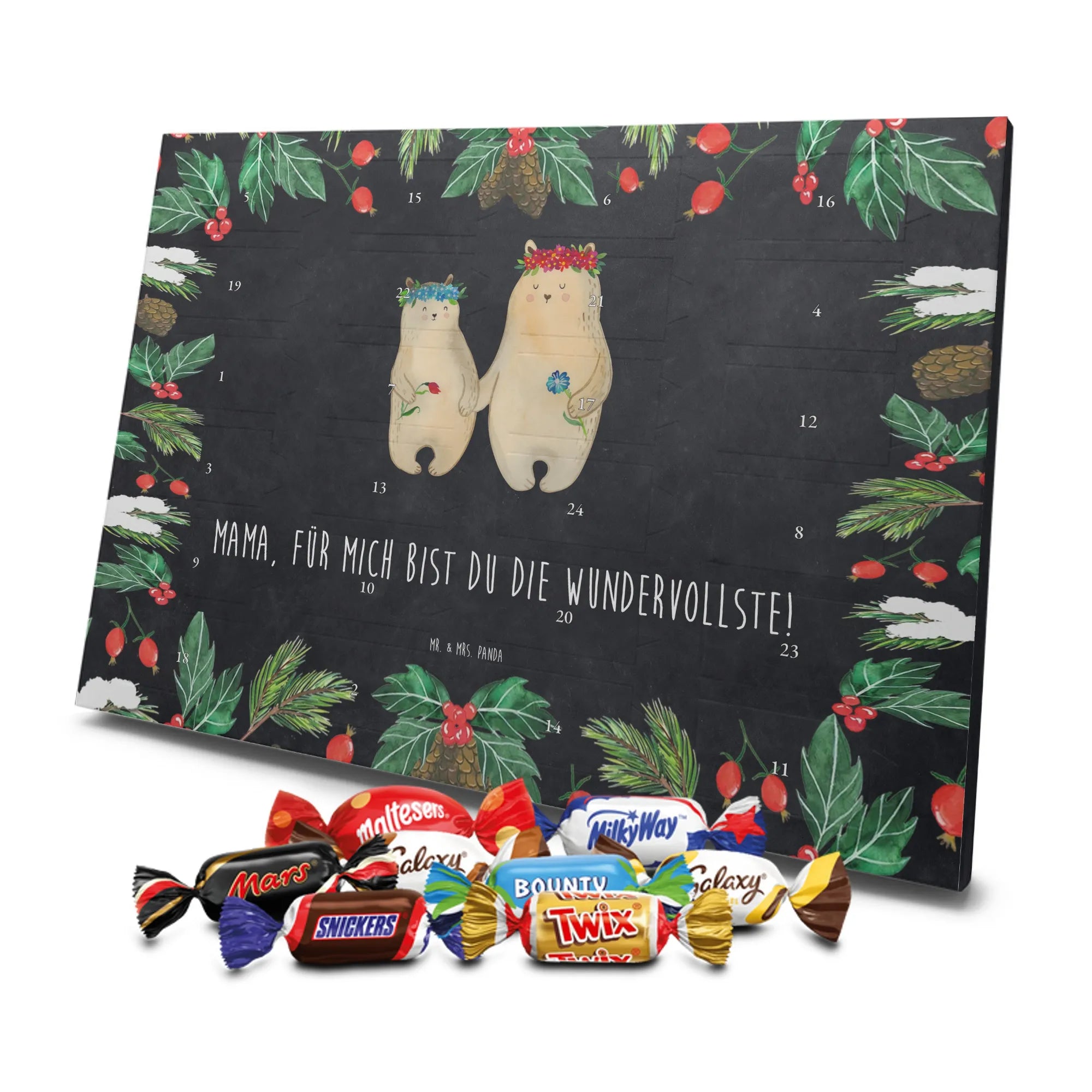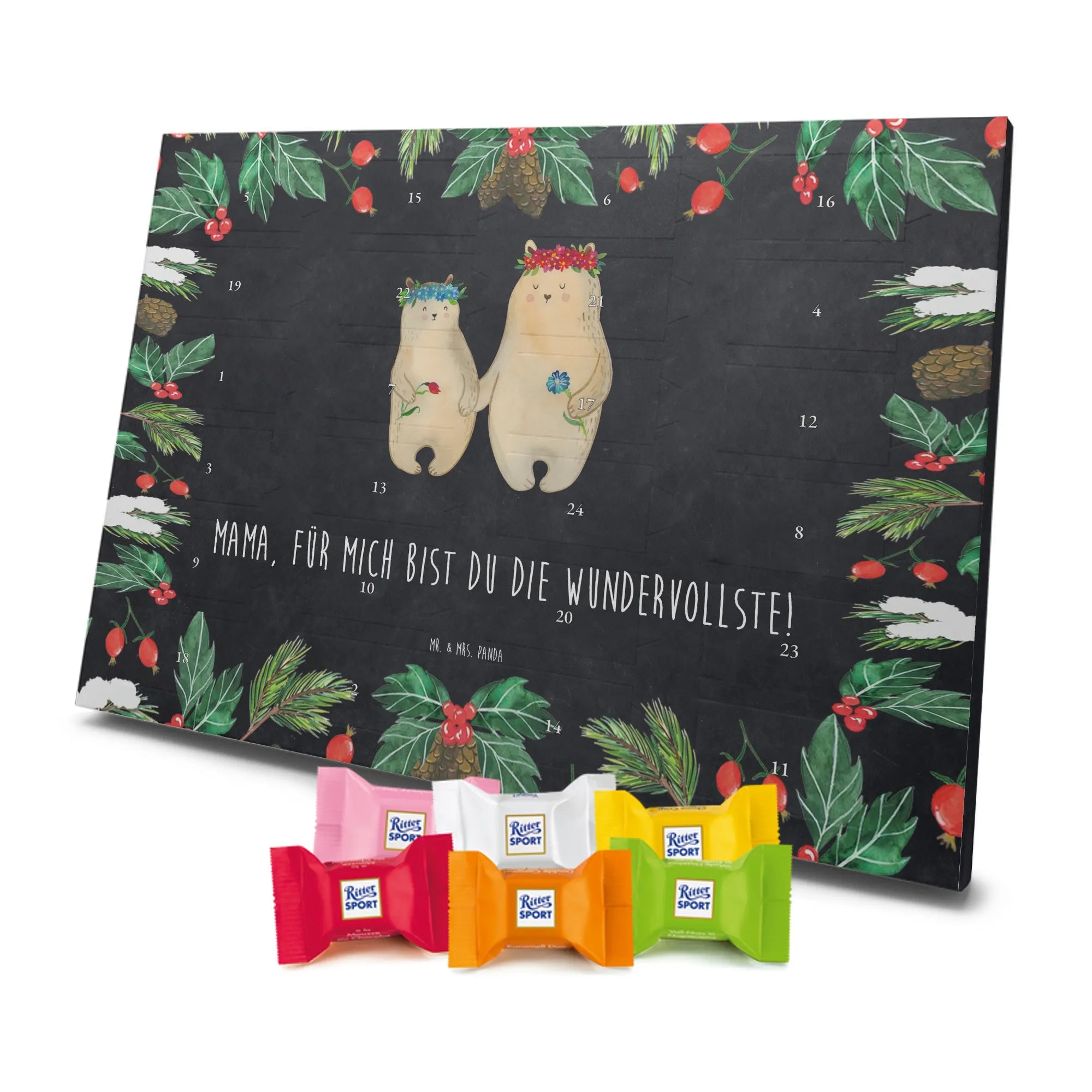 Chocolate advent calendar Bears with flower crown - Classic - with saying - Ice Blue