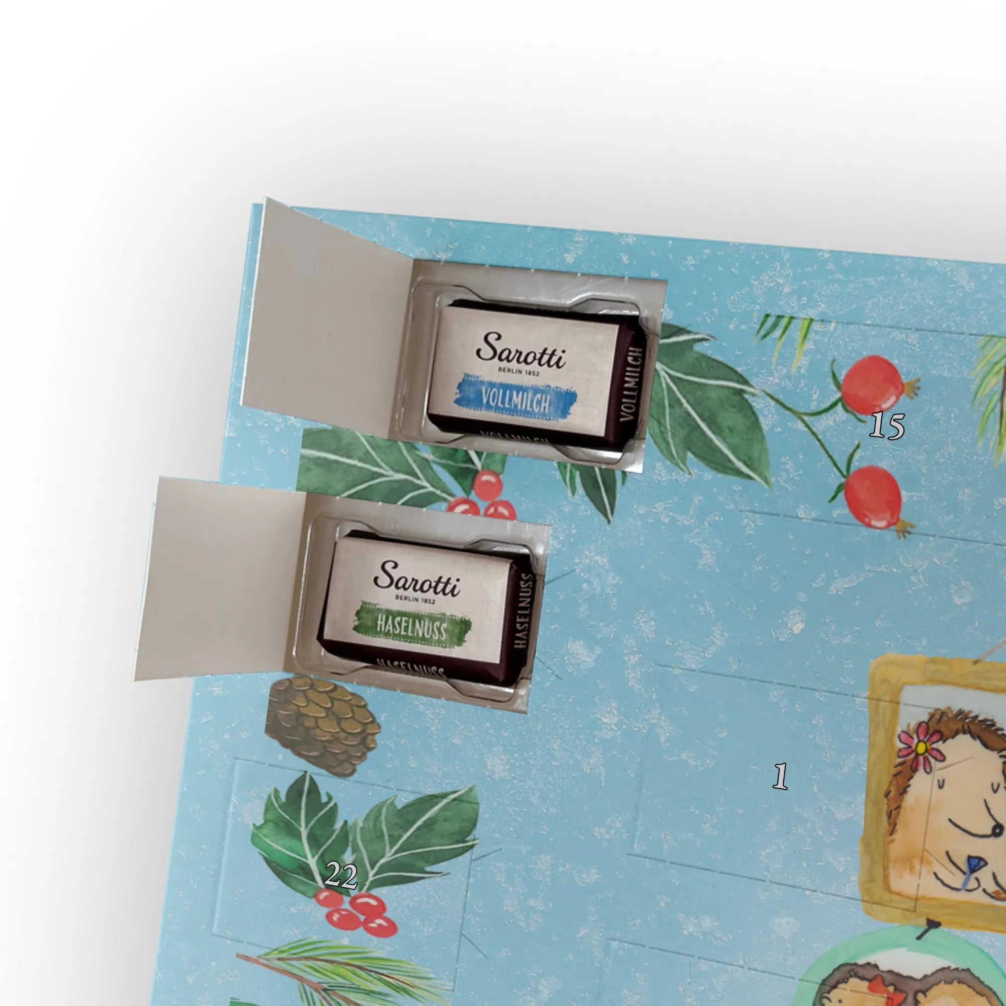 Chocolate advent calendar Hedgehog family - Lindt LINDOR - with saying - Ice Blue