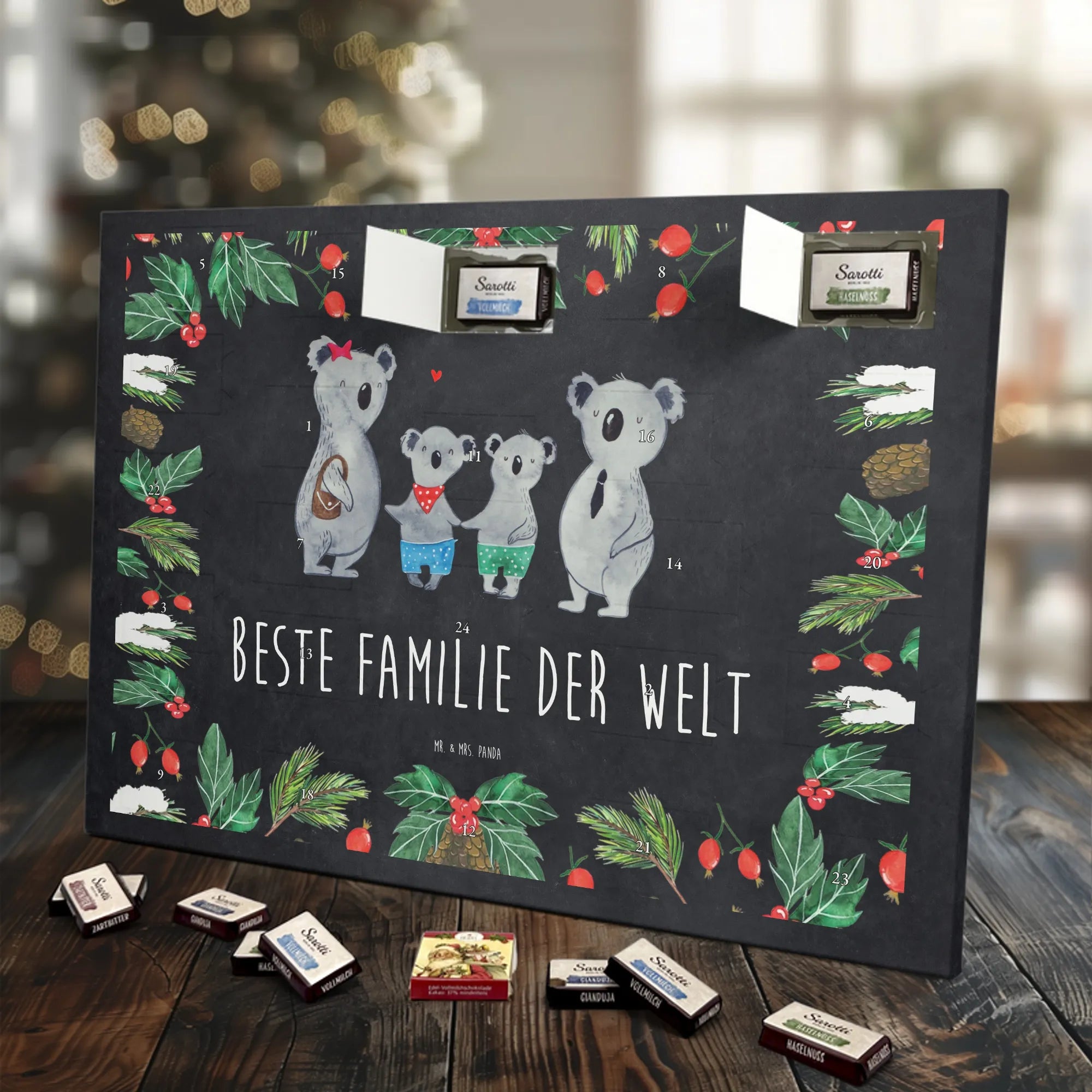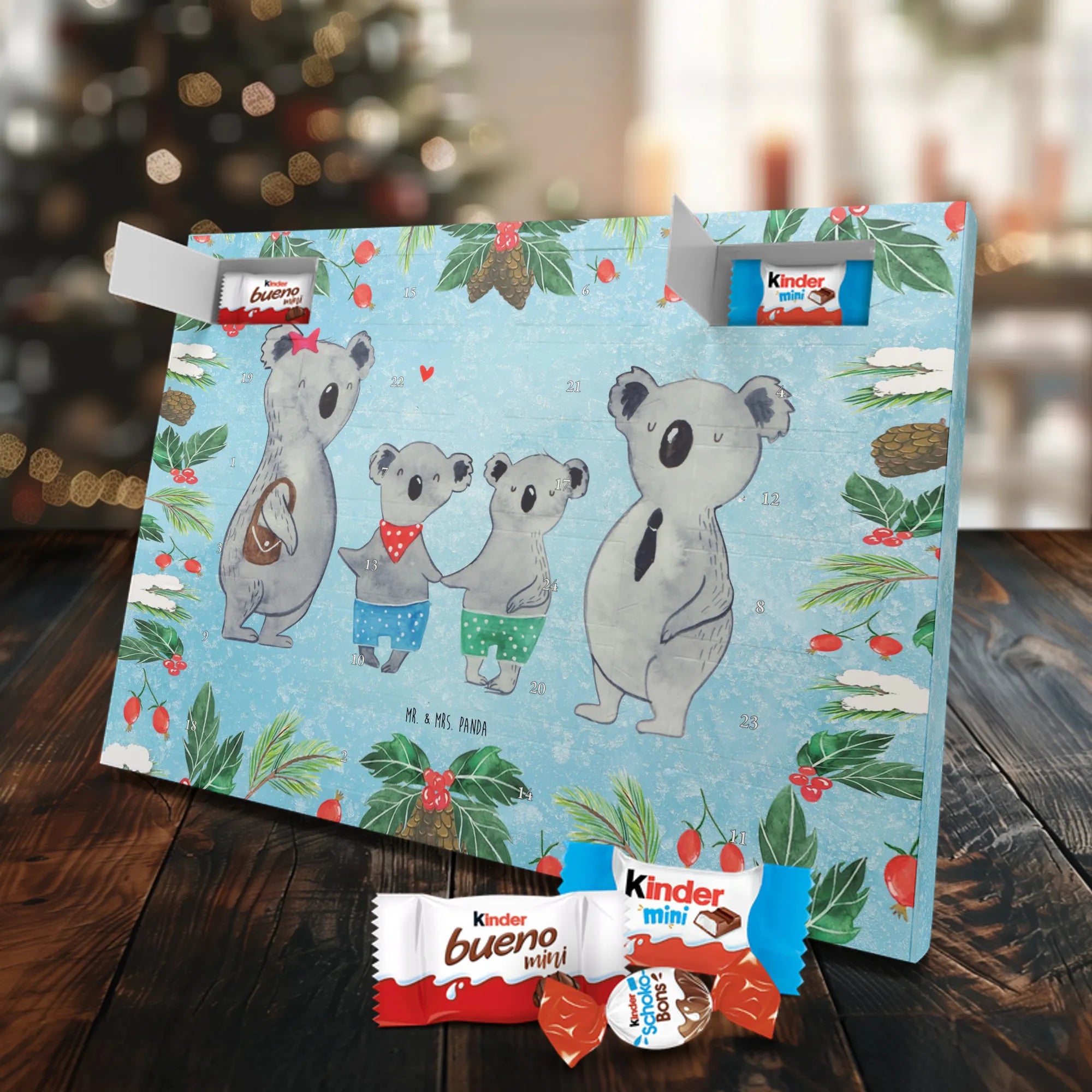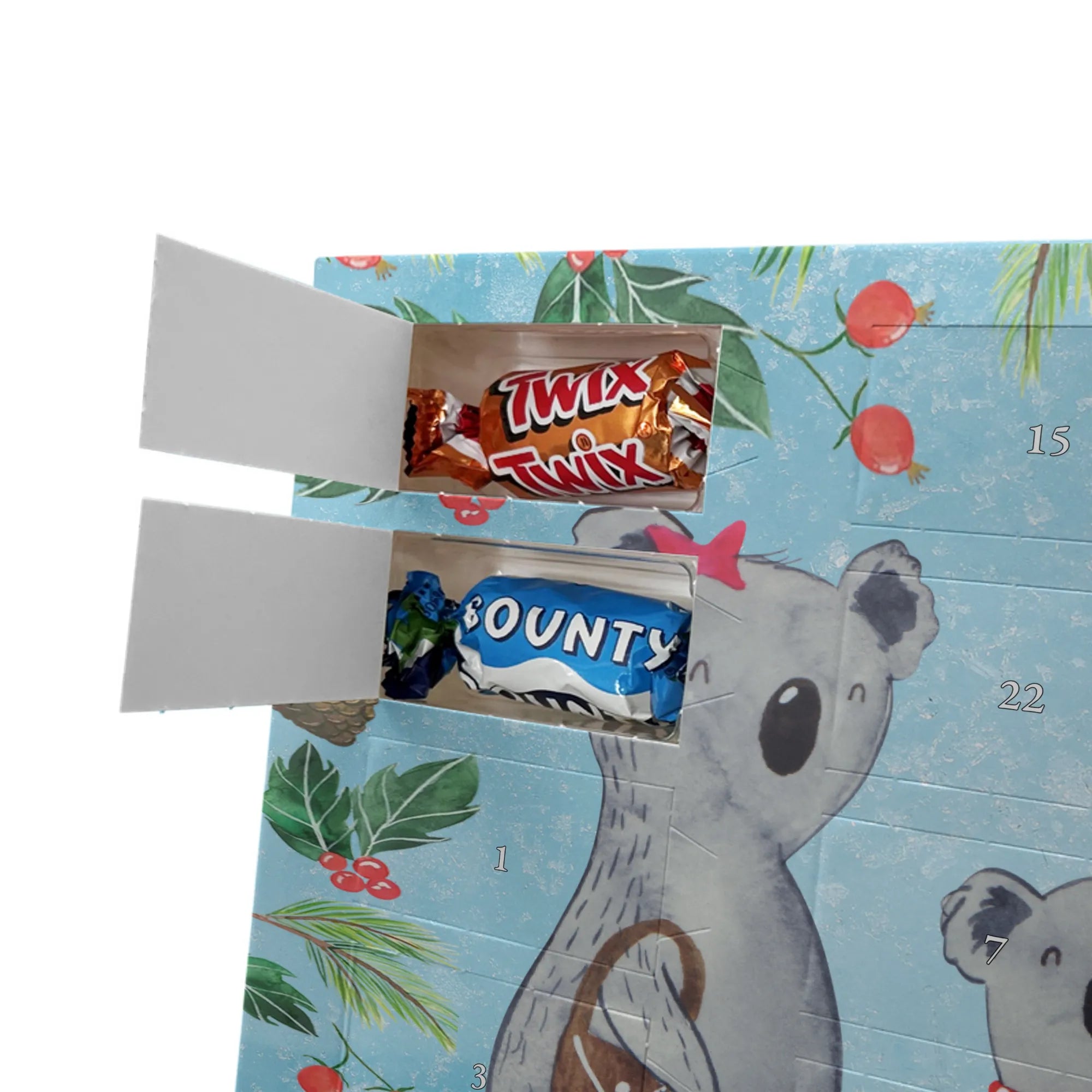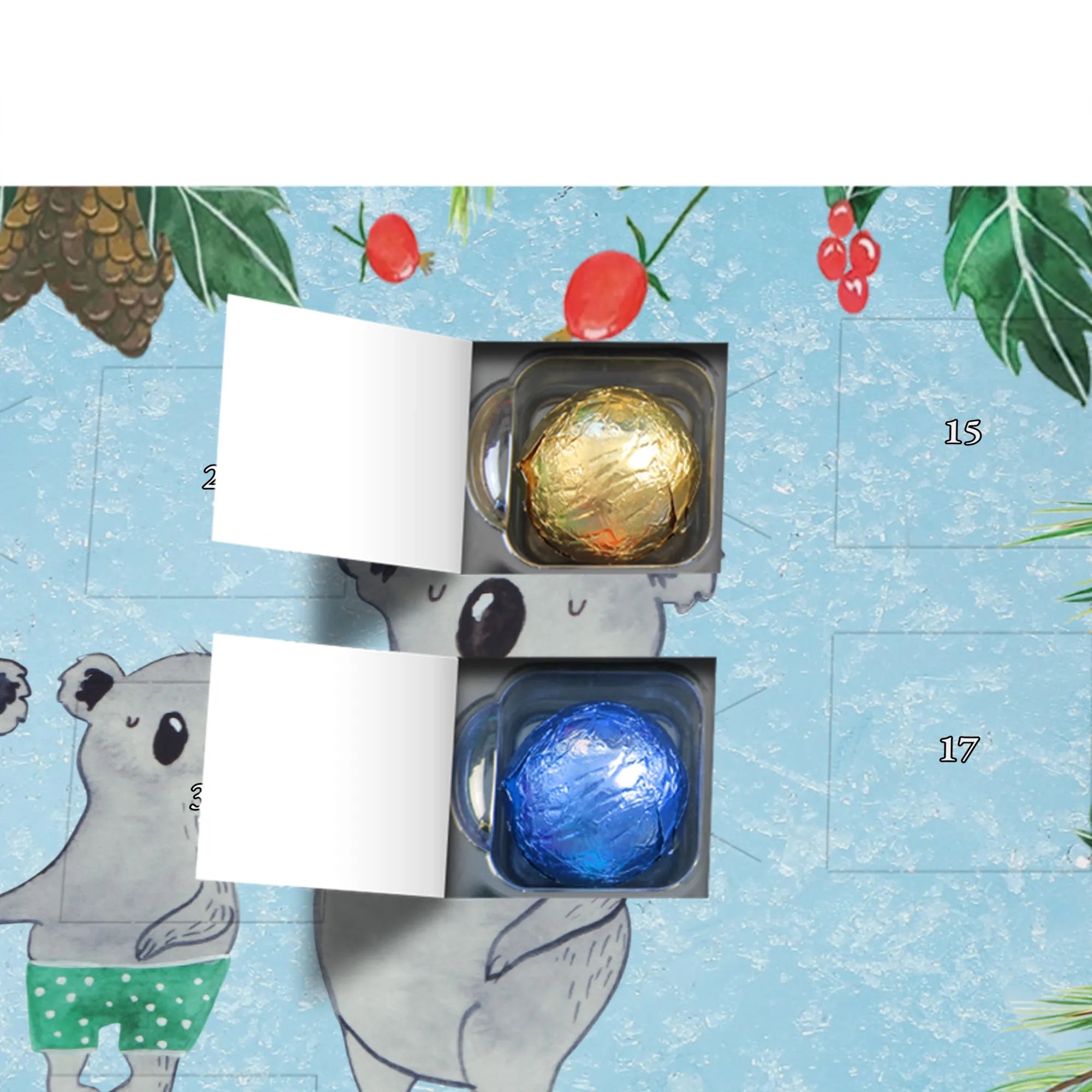 Chocolate advent calendar Koala family with two kids - Classic - with saying - Ice Blue